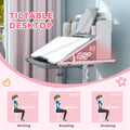 Qaba Kids Desk And Chair Set, Height Adjustable Kids School Study Desk And Chair Set With Tilt Desktop, Storage Drawer And Reading Rack For Writing, Reading And Drawing, Gray Gray Mdf