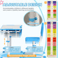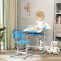 Qaba Kids Desk And Chairs Set, Height Adjustable Children School Study Desk With Tilt Desktop, Storage Drawer, Pen Slot, Hook, Ergonomic Table And Chair Set For Kids, Blue Blue Mdf