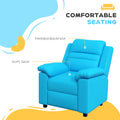 Qaba Kids Recliner Chair, Toddler Leather Sofa Lounge Chair With Armrest, Footrest, Headrest For Boys And Girls 3 9 Years Old, Blue Blue Foam