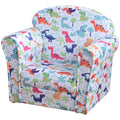 Qaba Kid'S Sofa Chair With Dinosaur Design And Thick Padding, Flannel Covered Toddler Armchair For Bedroom, Playroom Multicolor Wood