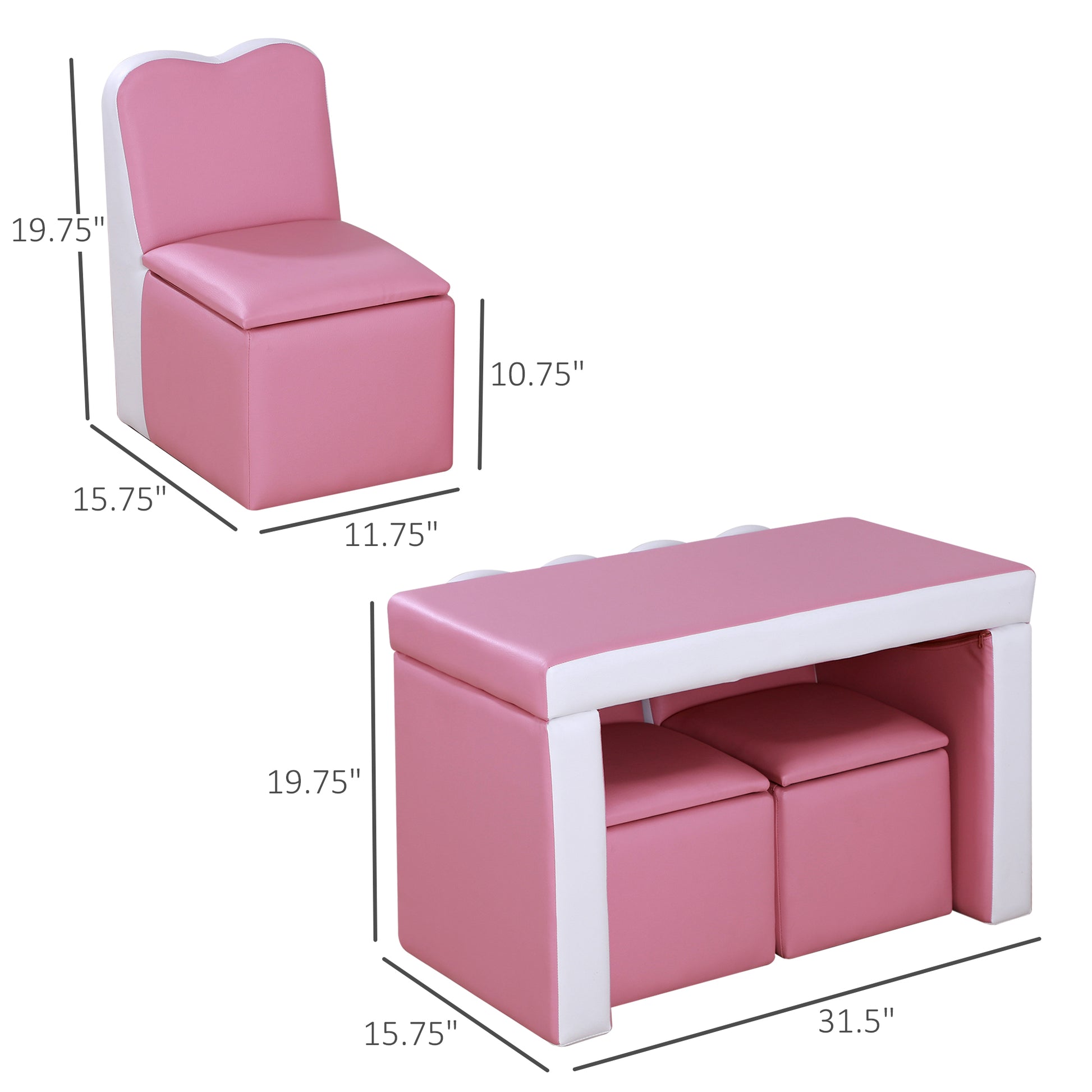 Qaba Kids Sofa Set 2 In 1 Multi Functional Toddler Table Chair Set 2 Seat Couch Storage Box Soft Sturdy Pink Pink Plastic