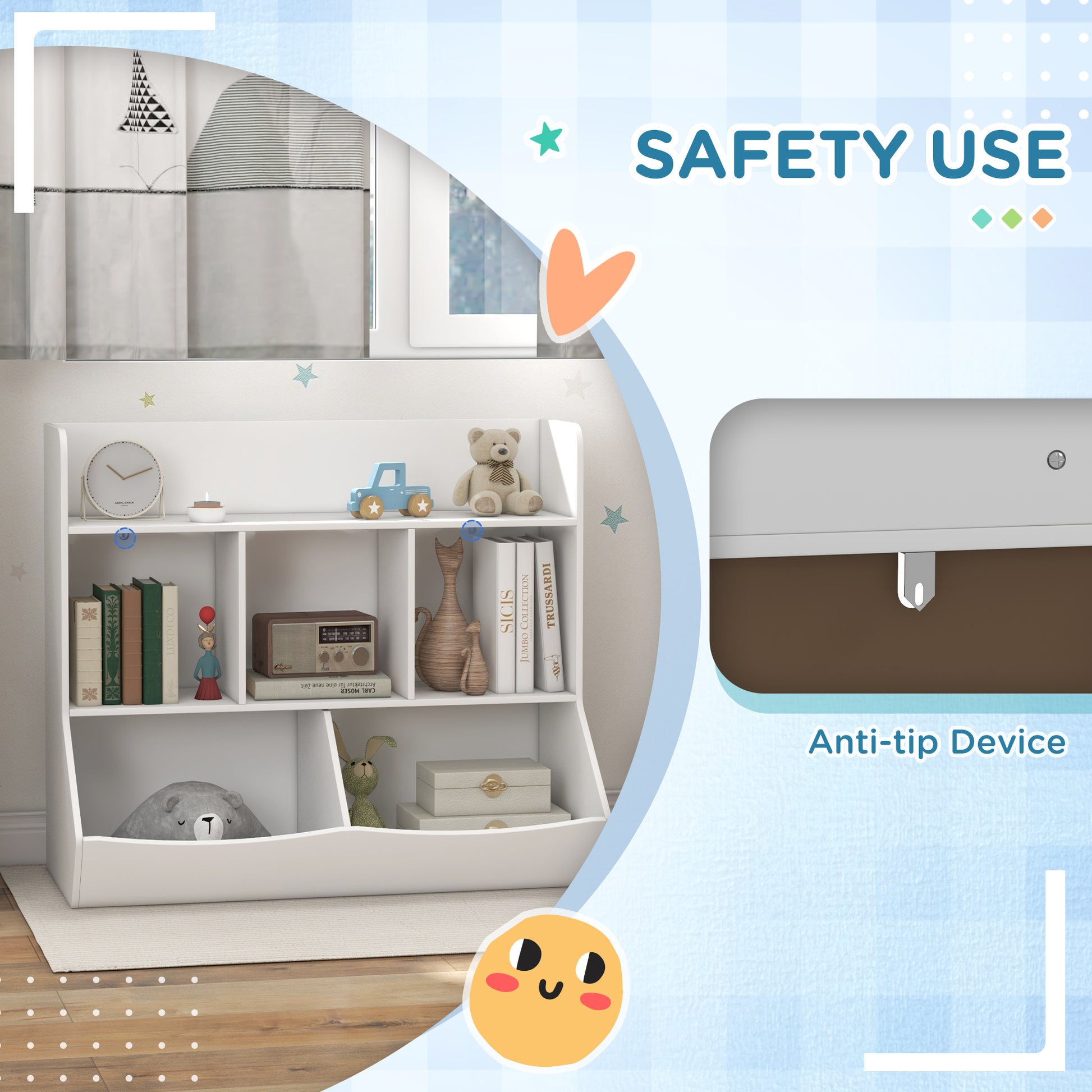 Qaba Kids Toy Shelf, 3 Tier Kids Bookcase With 5 Compartment, Anti Tip Device, Toy Organizer For Nursery, Living Room, Playroom, Classroom, White White Mdf