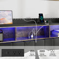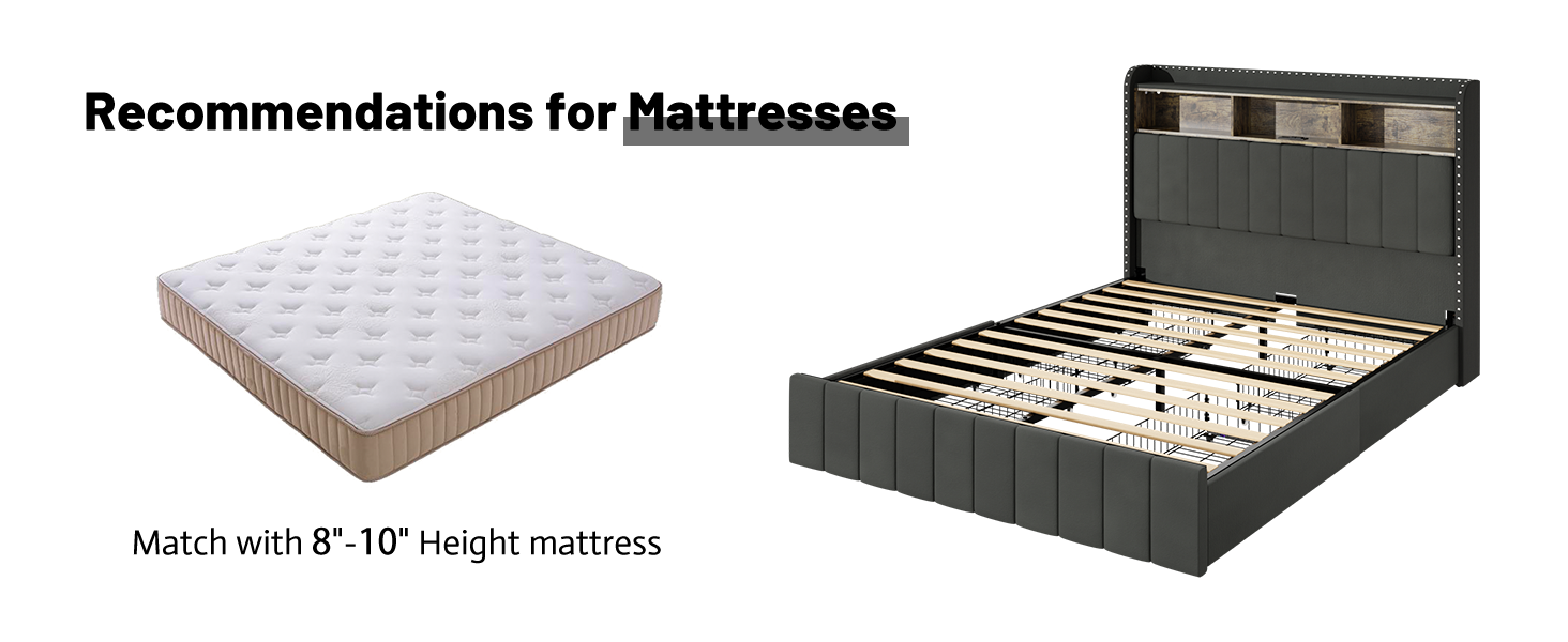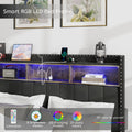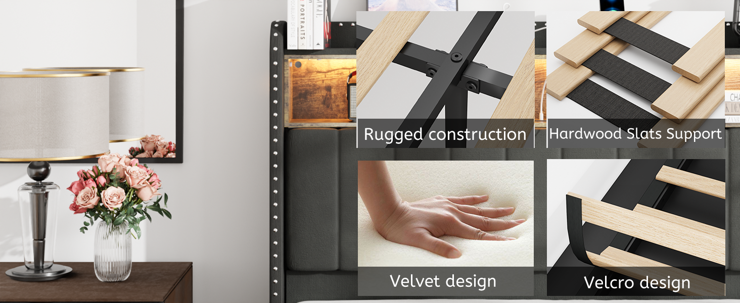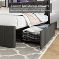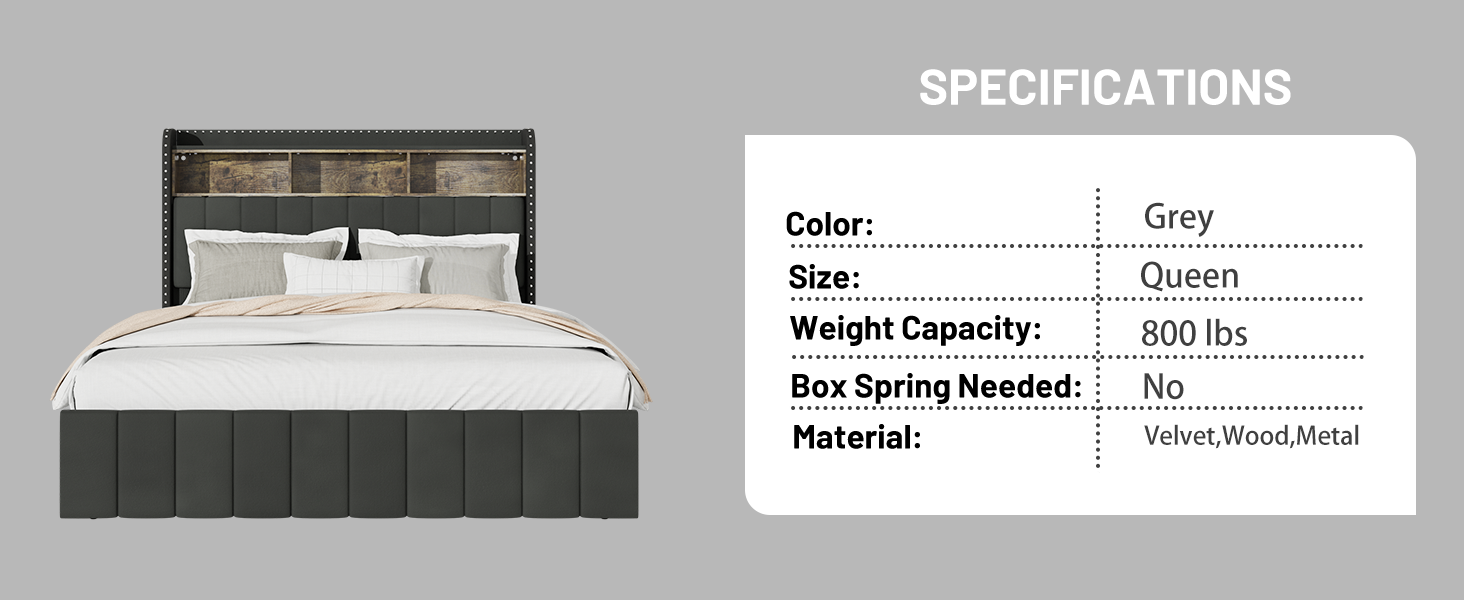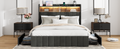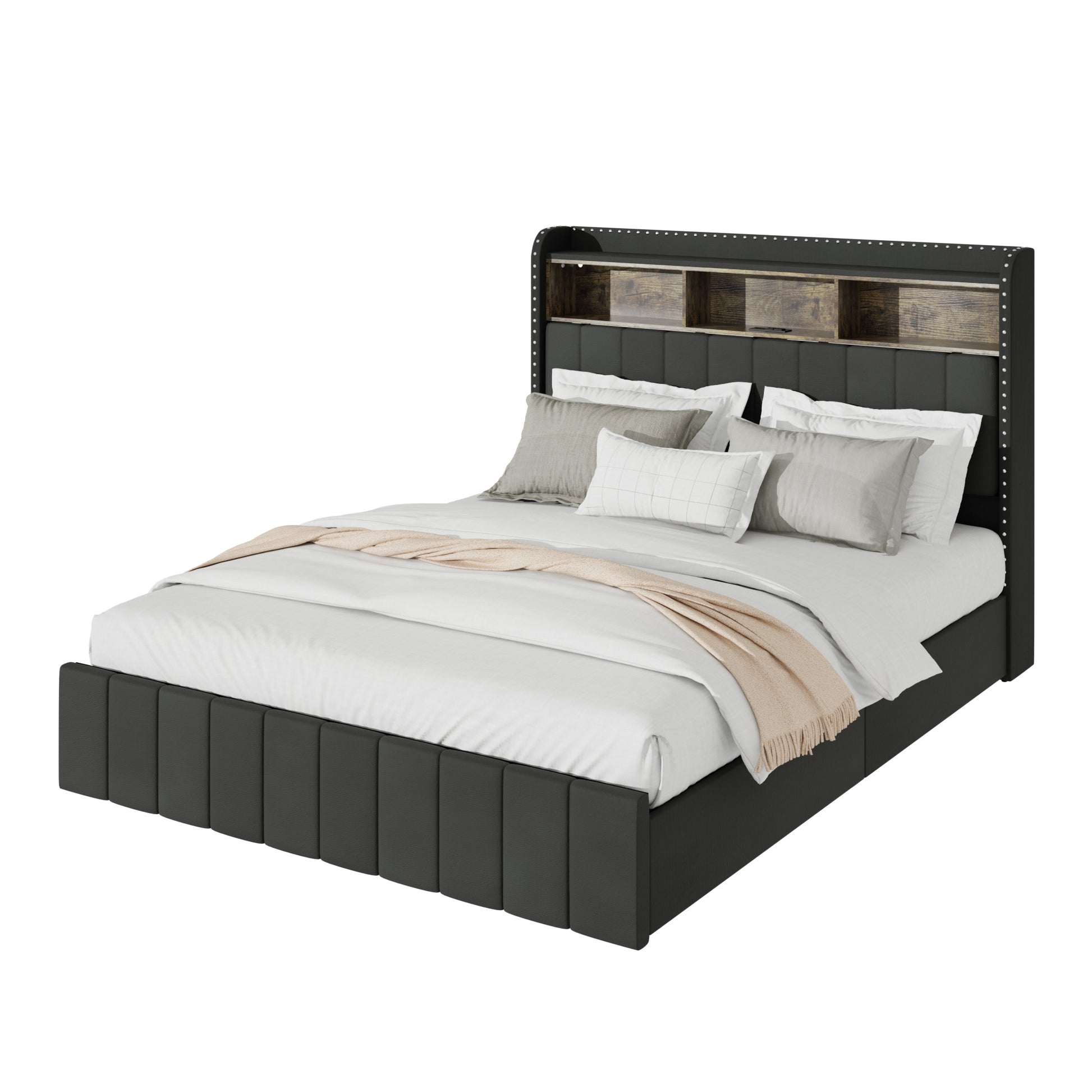 Queen Bed Frame With Storage Headboard, Wooden Bed Frame With 47.2" Bookcase Headboard, 4 Storage Drawers & Charging Station, No Box Spring Needed Noise Free All Metal Support, Vintage Gray Box