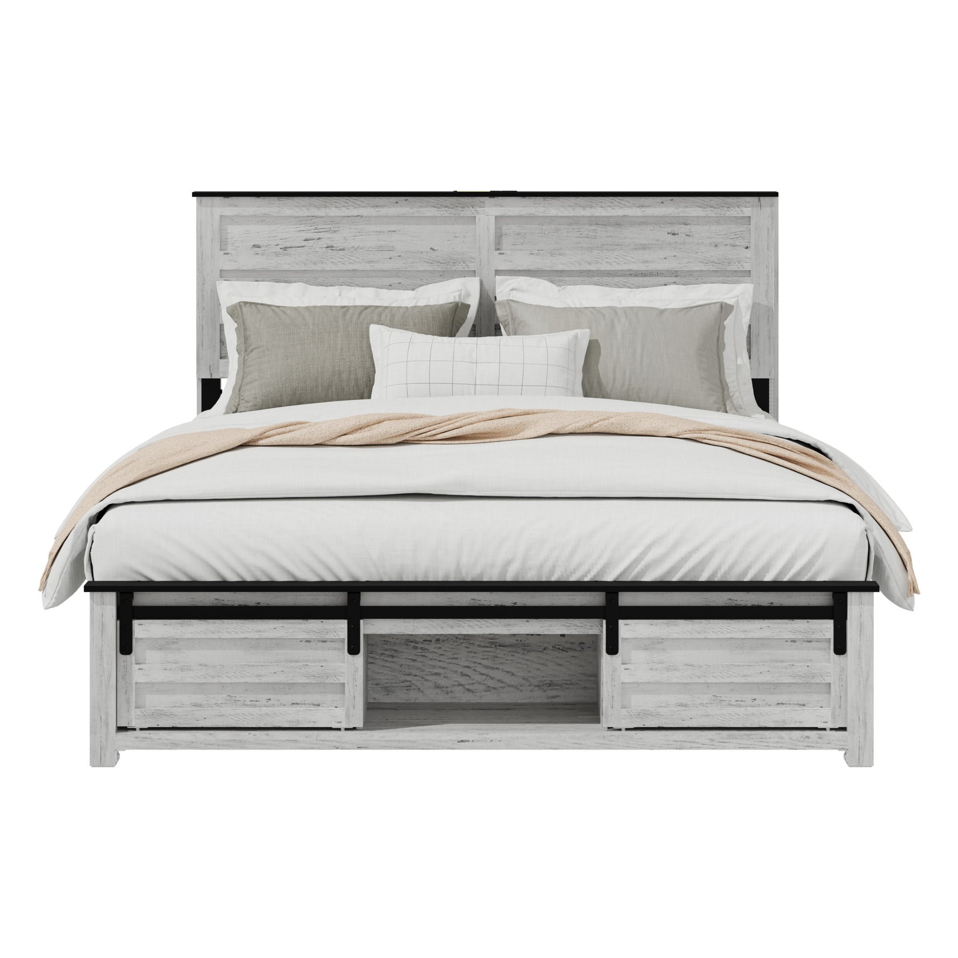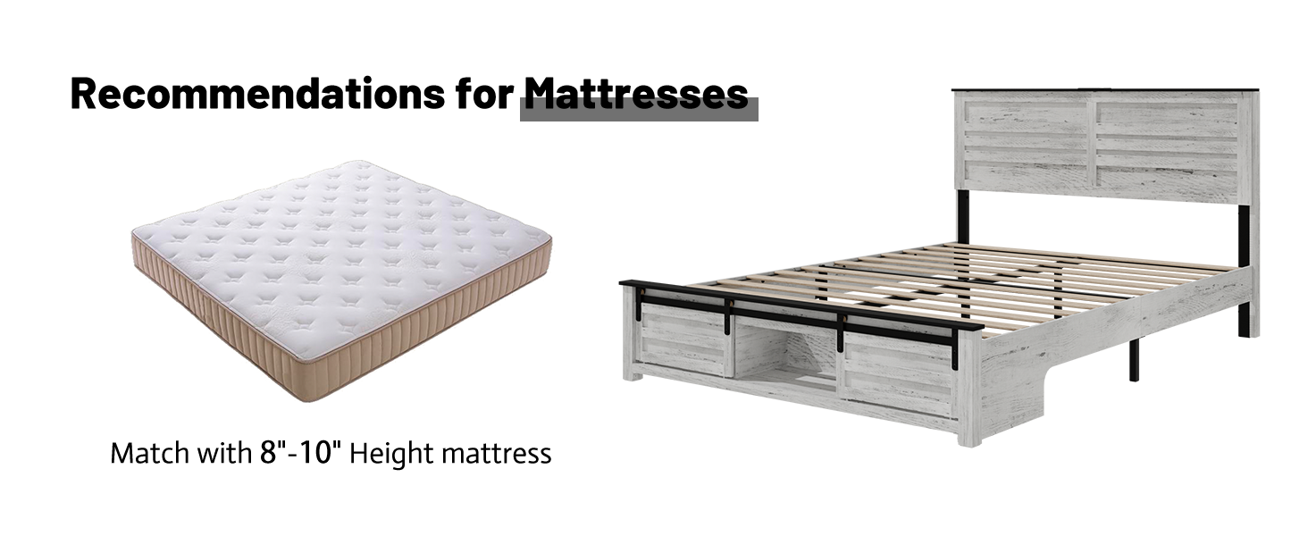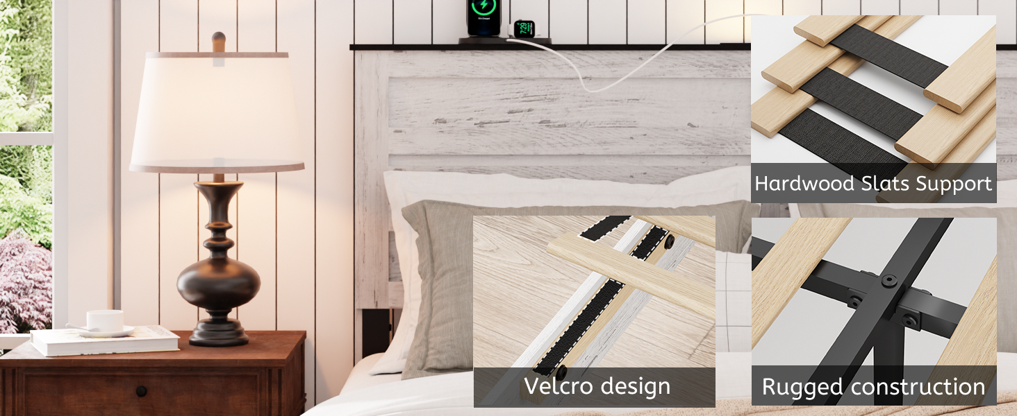 Queen Bed Frame With Upholstered Headboard And Wood Platform,Storage Headboard With Charging Station And Led, Bed Frame With Pet Bed,No Noise, No Box Spring Needed,Easy Assembly,Antique White Box