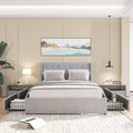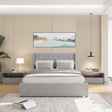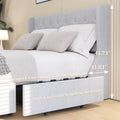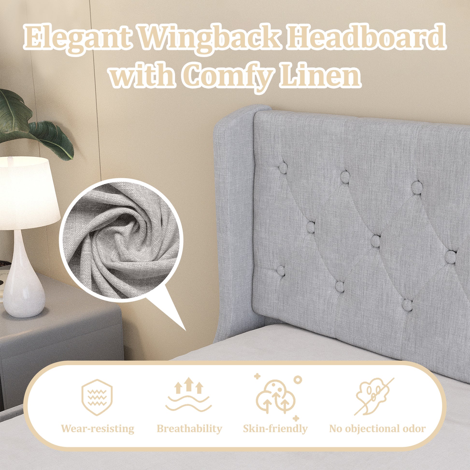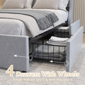 Queen Size Bed Frame With 4 Storage Drawers And Wingback Headboard, Button Tufted Design, Light Grey Queen Light Gray Linen