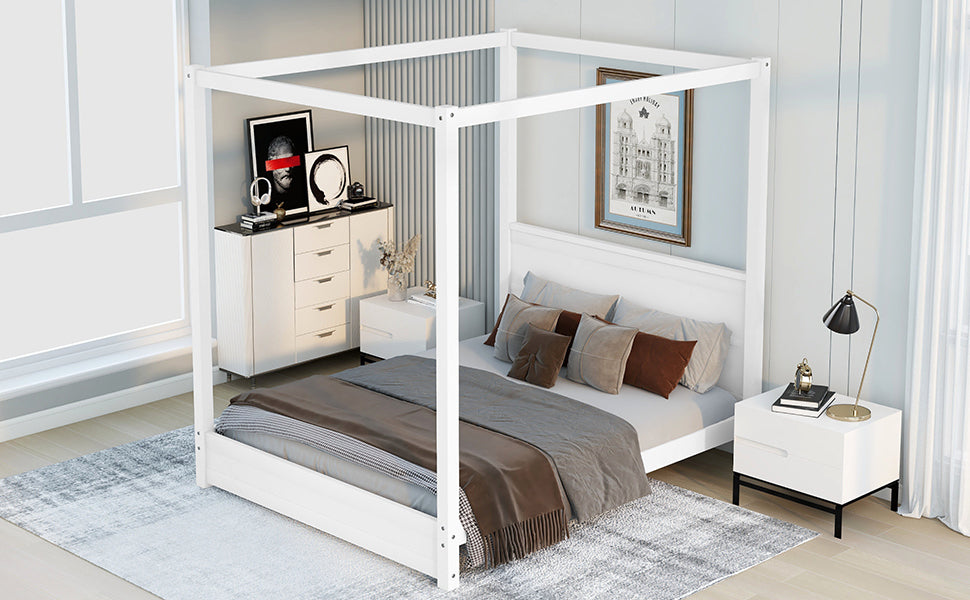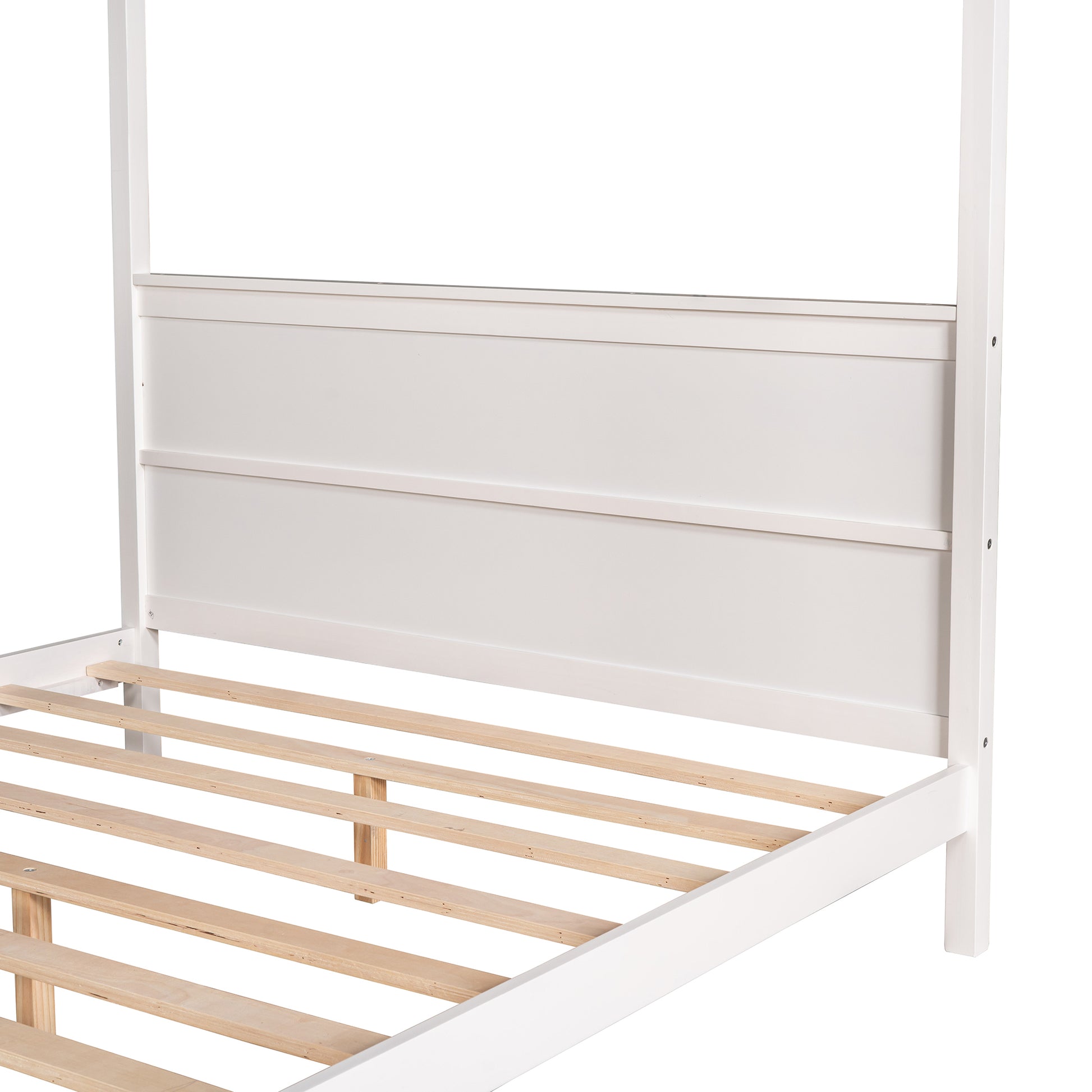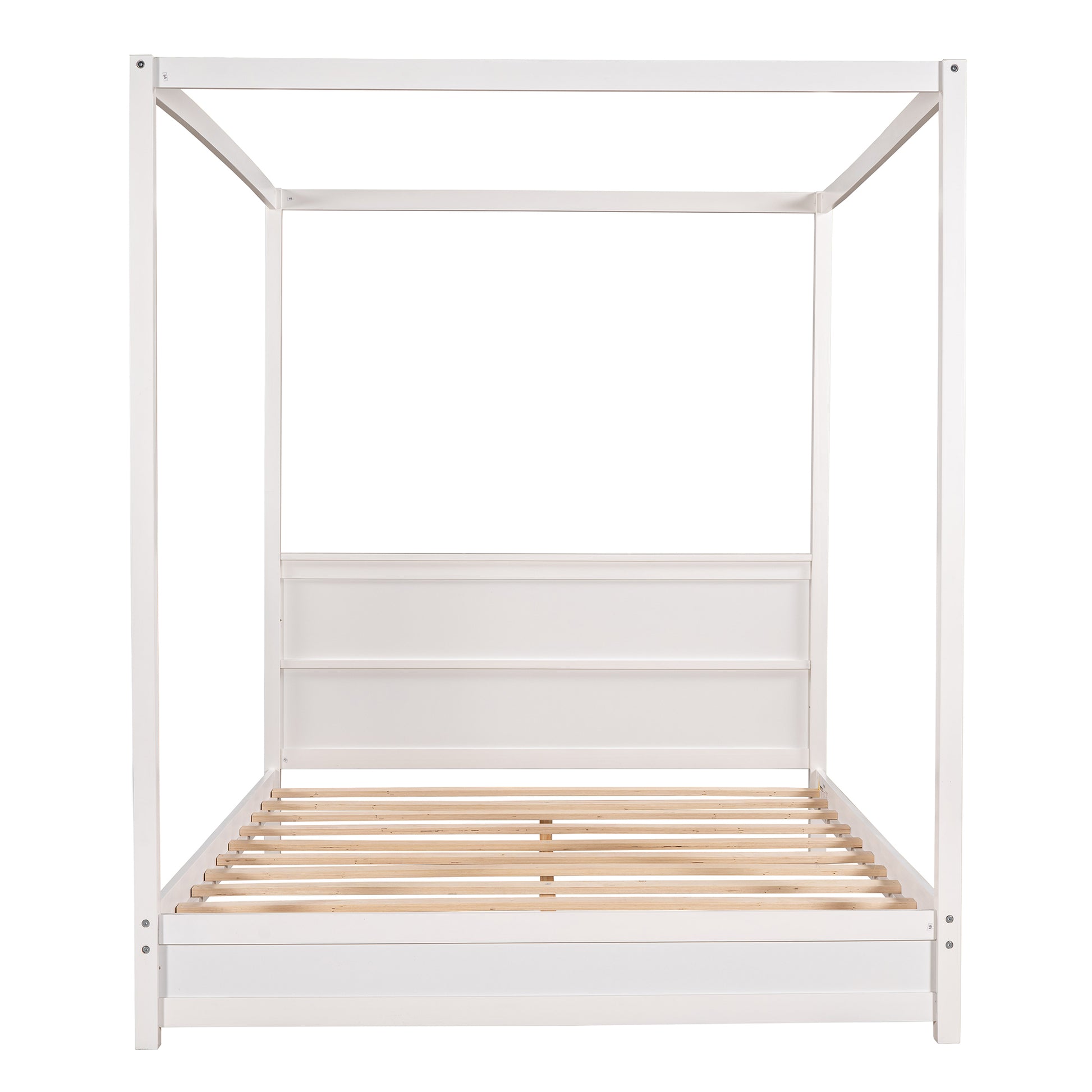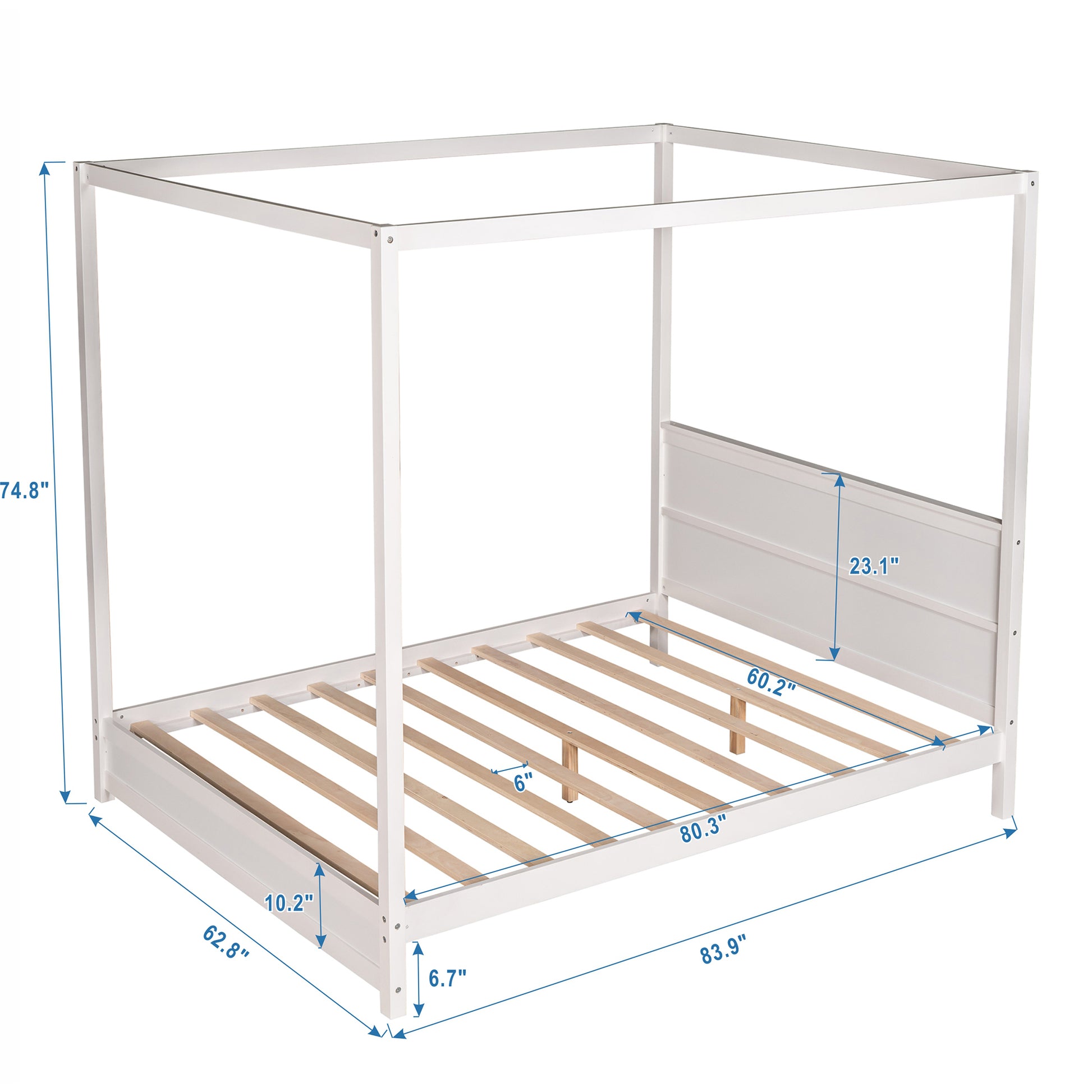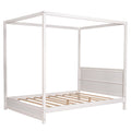 Queen Size Canopy Platform Bed With Headboard And Support Legs,White White Pine