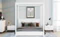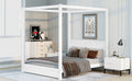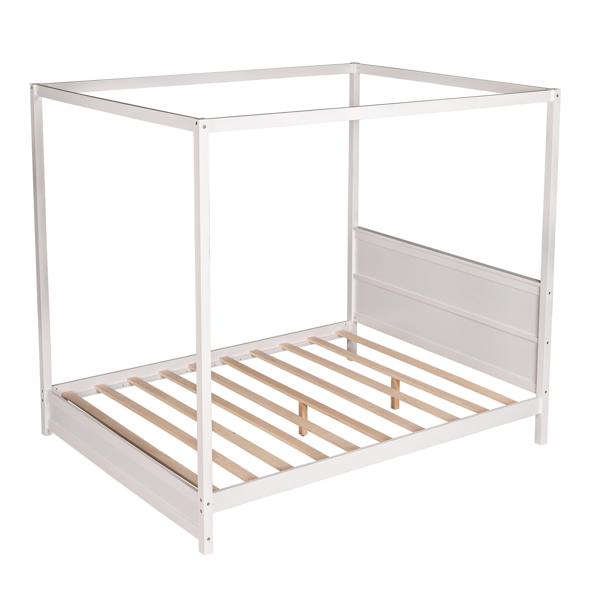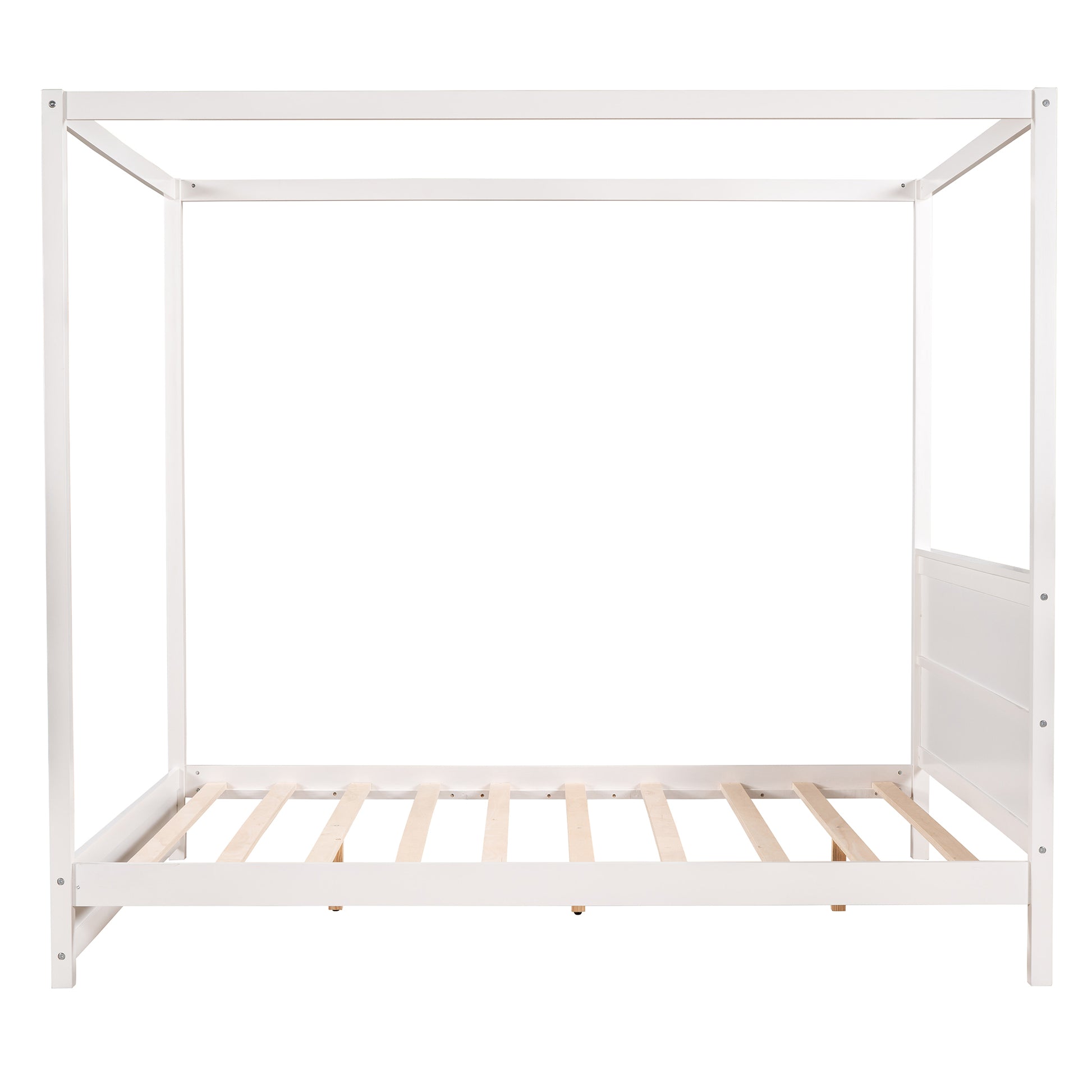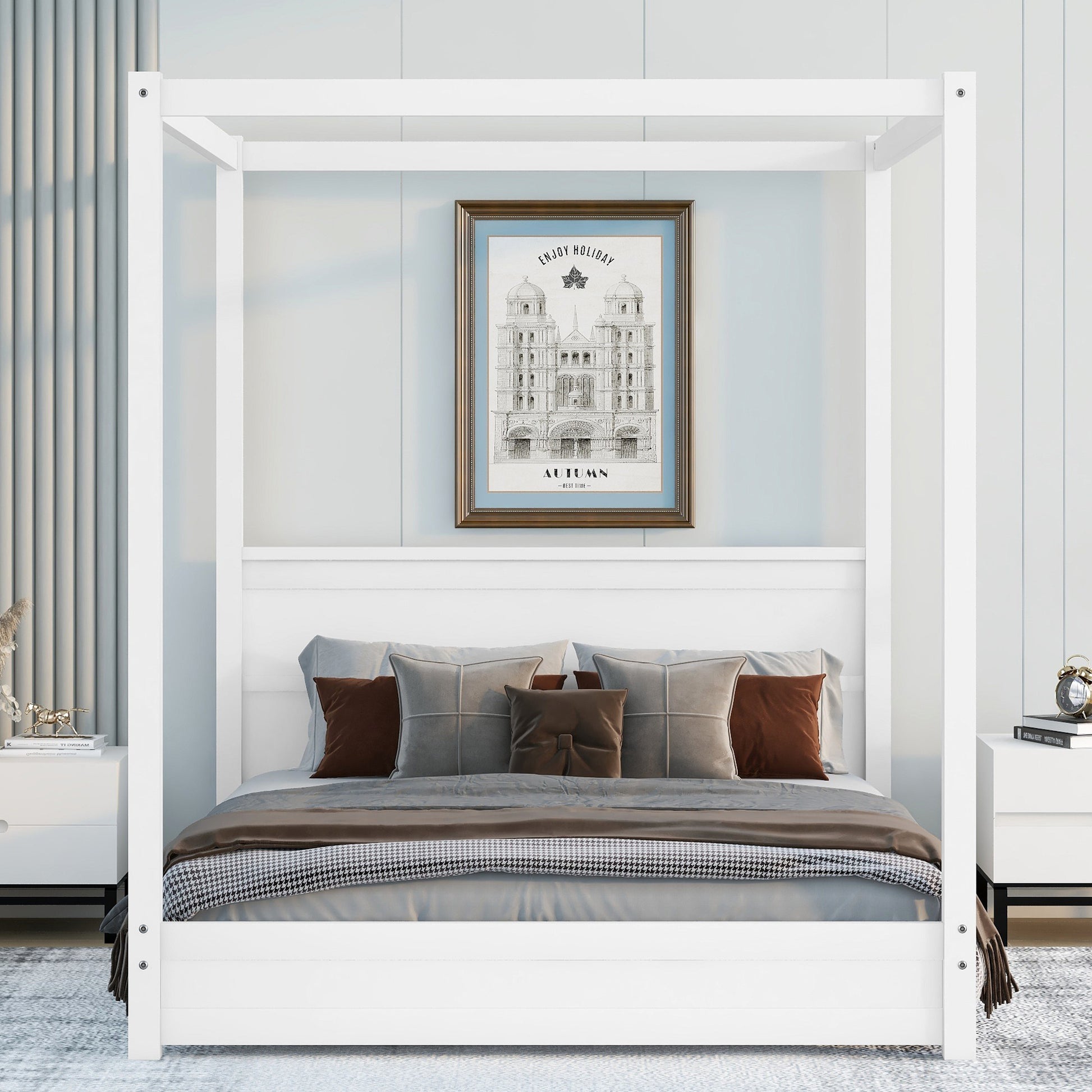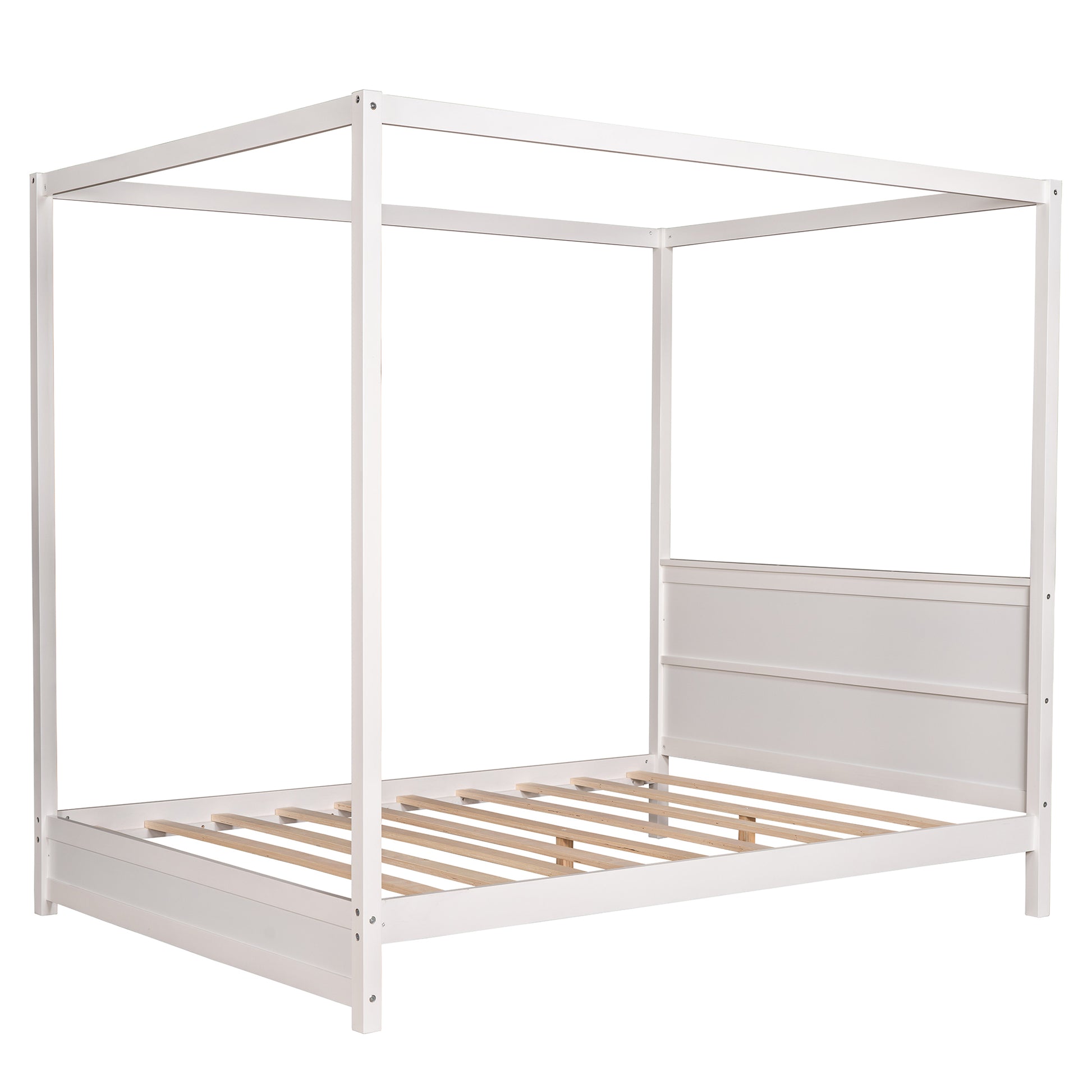 Queen Size Canopy Platform Bed With Headboard And Support Legs,White White Pine