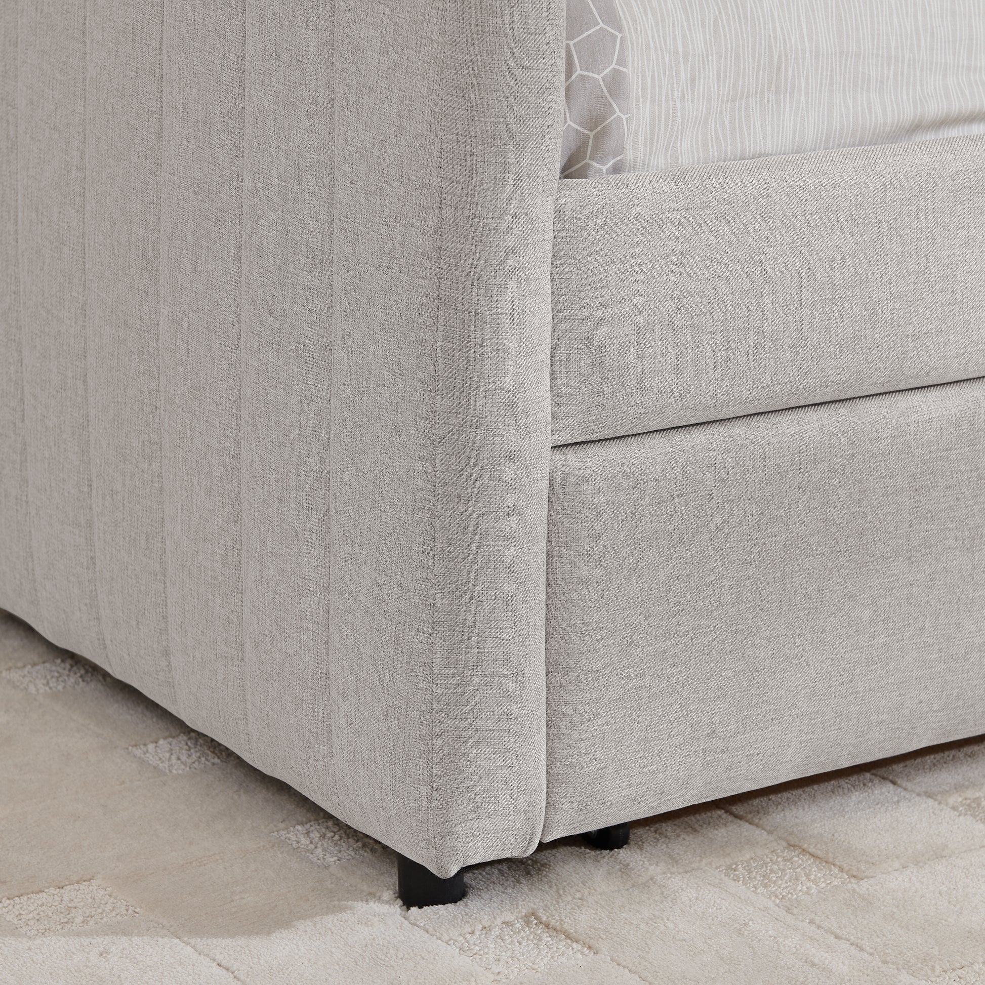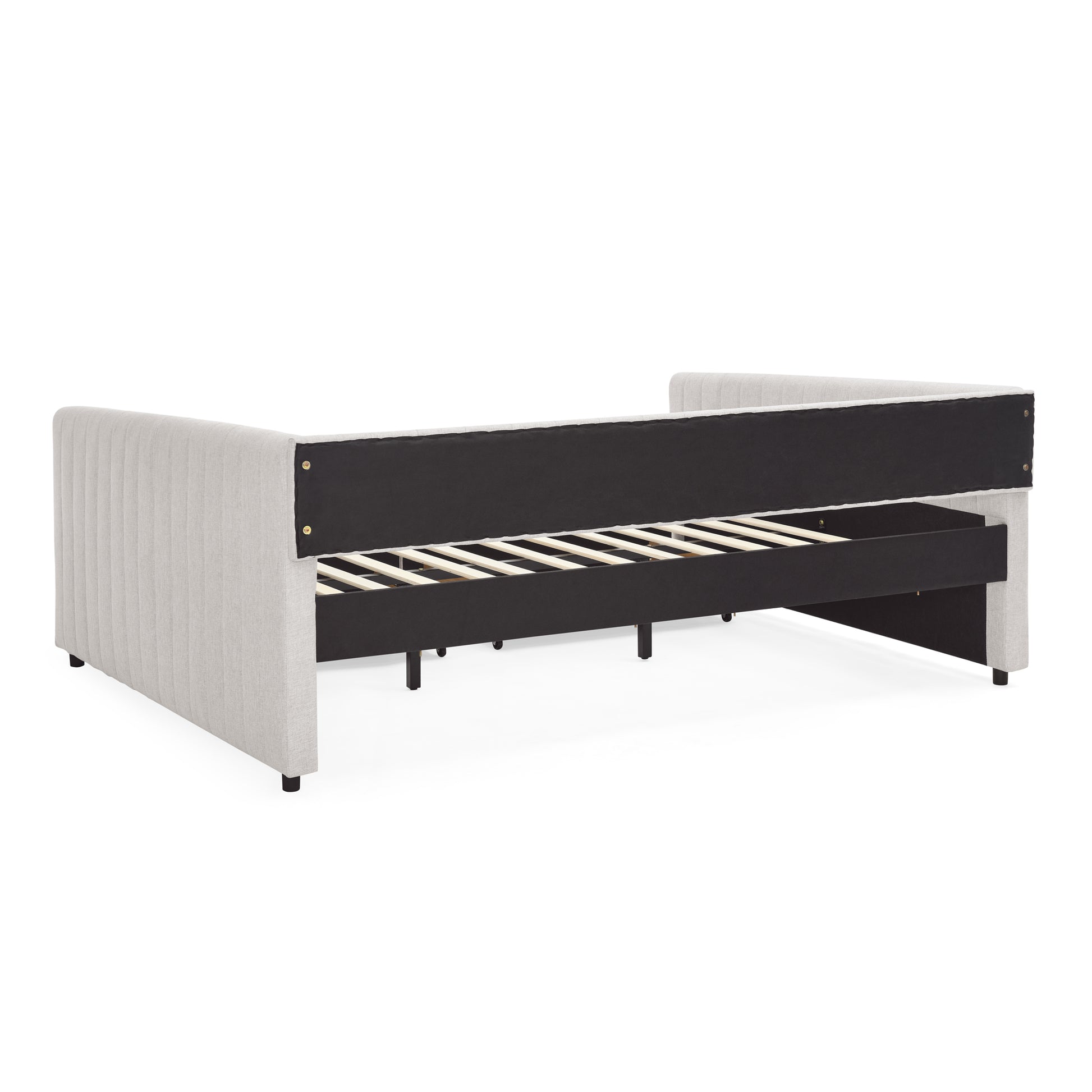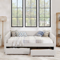 Queen Size Daybed With Two Drawers Trundle Upholstered Sofa Bed, With Vertical Stripes, Linen Fabric, Beige 86.5"X65"X30" Beige Linen