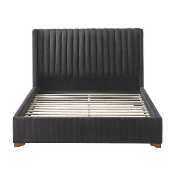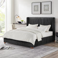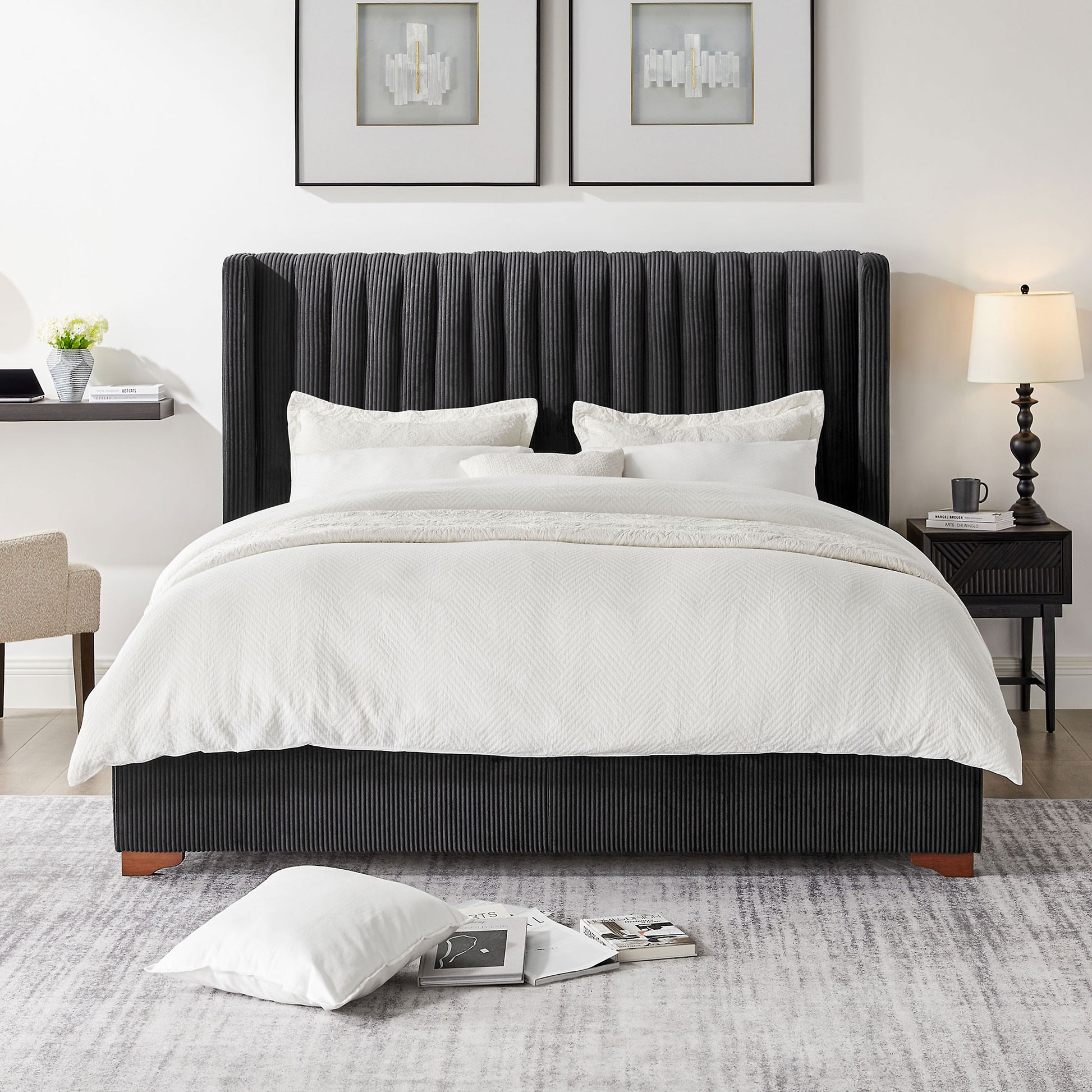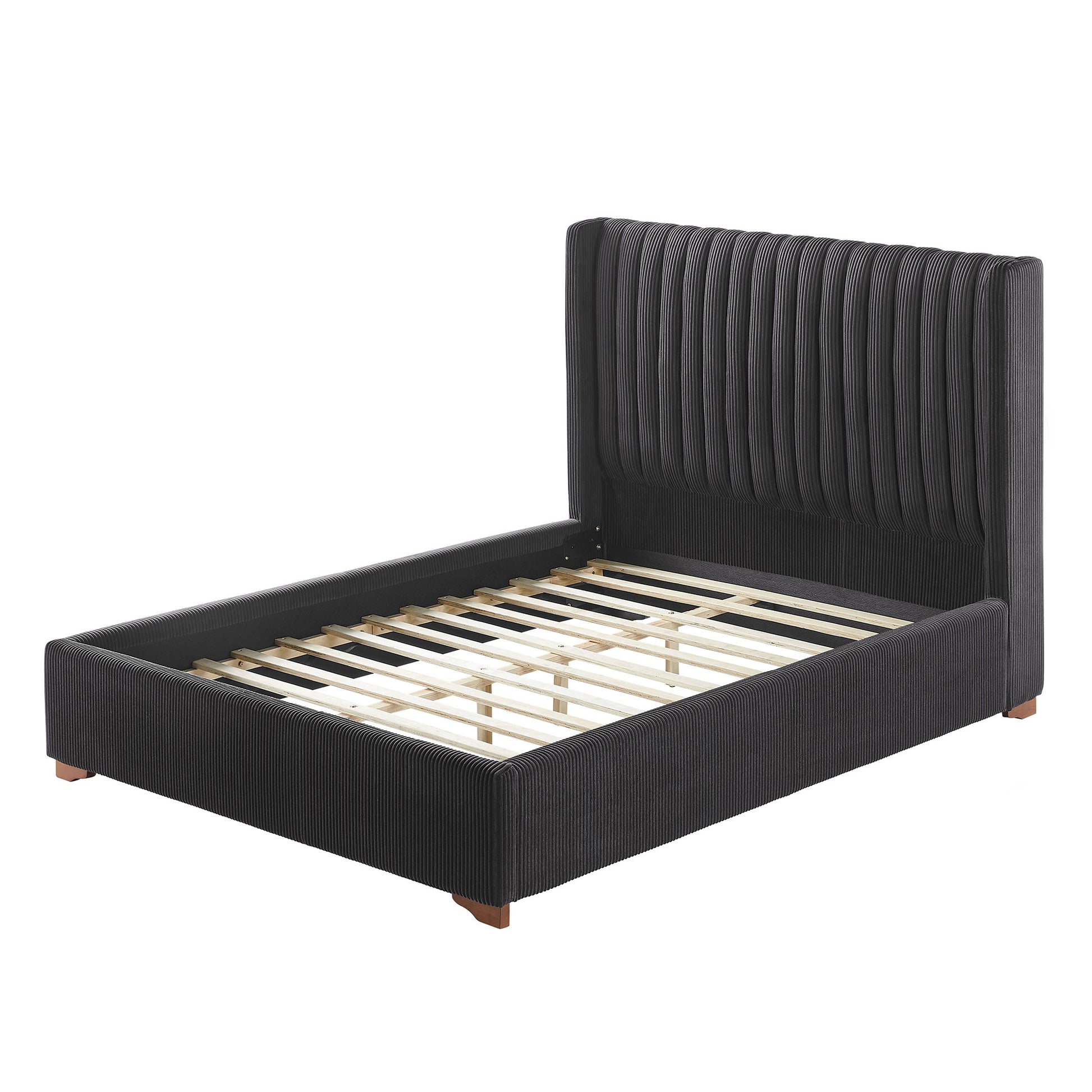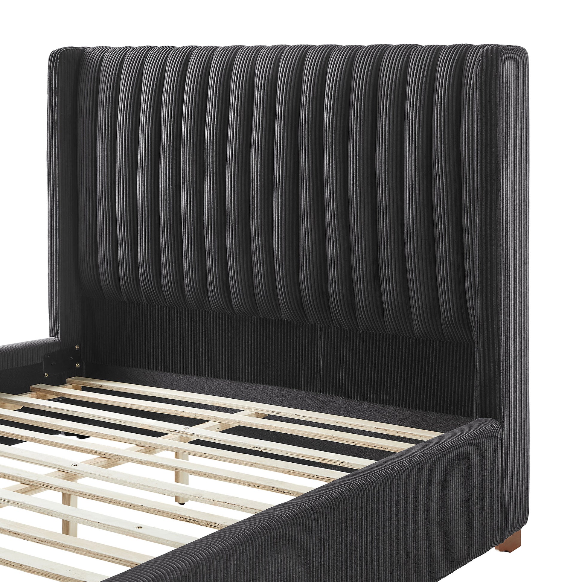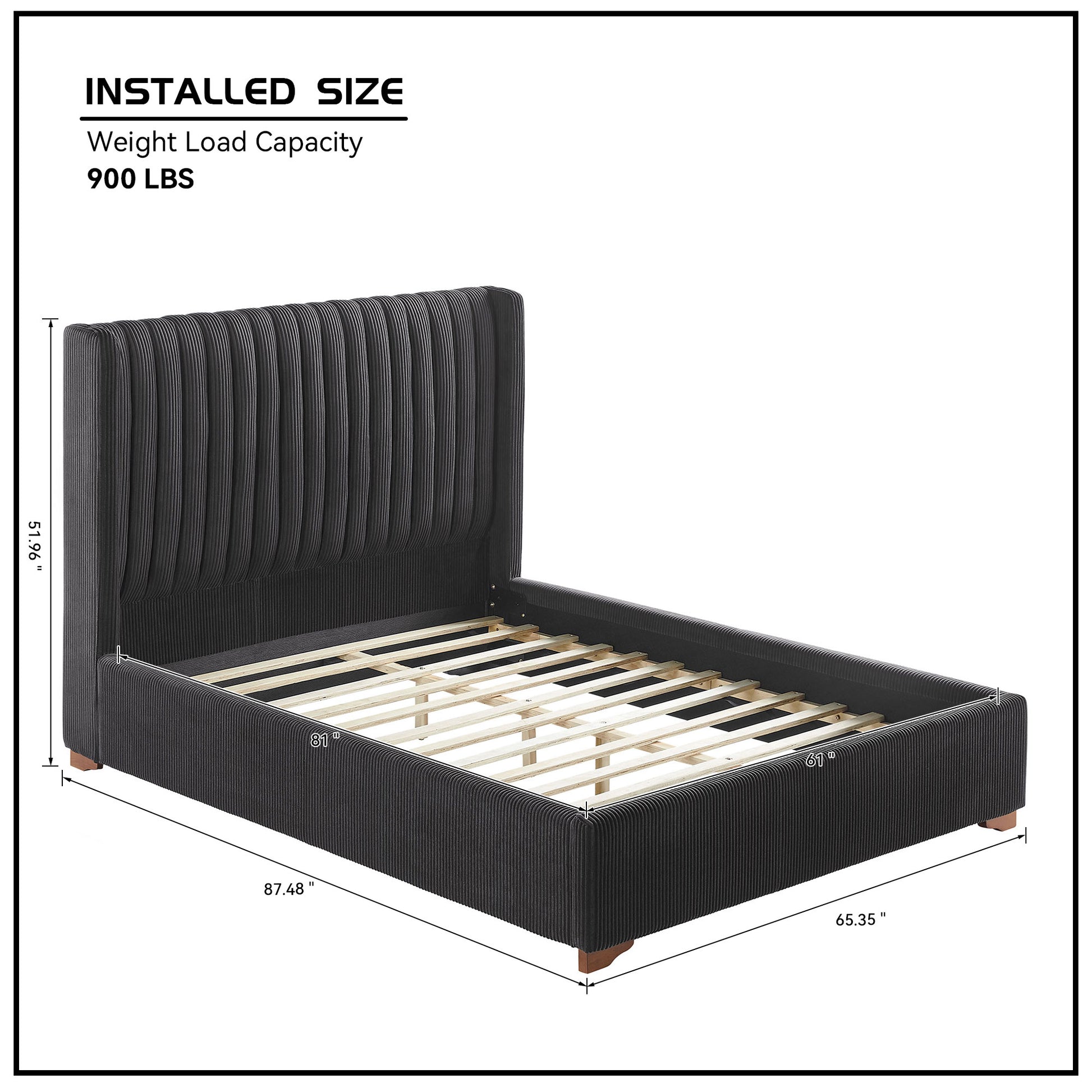 Queen Size Modern Design Bed Frame Upholstered Queen Bed Frame Platform With Headboard Corduroy Headboard Wooden Slats Support, No Box Spring Needed,Mattress Foundation,Black Queen Black Corduroy