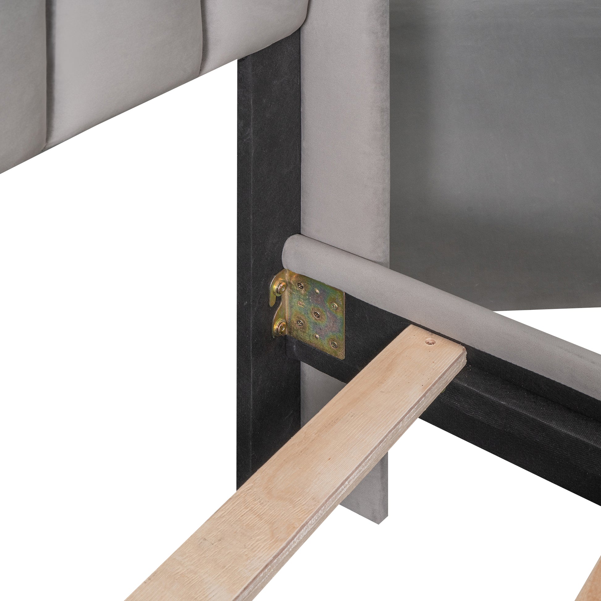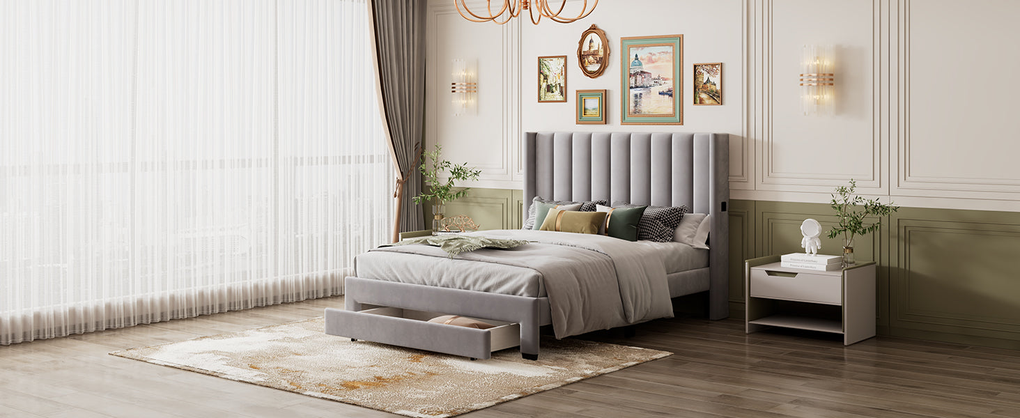 Queen Size Storage Bed Velvet Upholstered Platform Bed With A Big Drawer Gray Gray Velvet