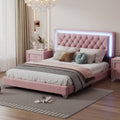 Queen Size Upholstered Bed Frame With Led Lights,Modern Velvet Platform Bed With Tufted Headboard,Pink Queen Pink Velvet