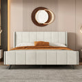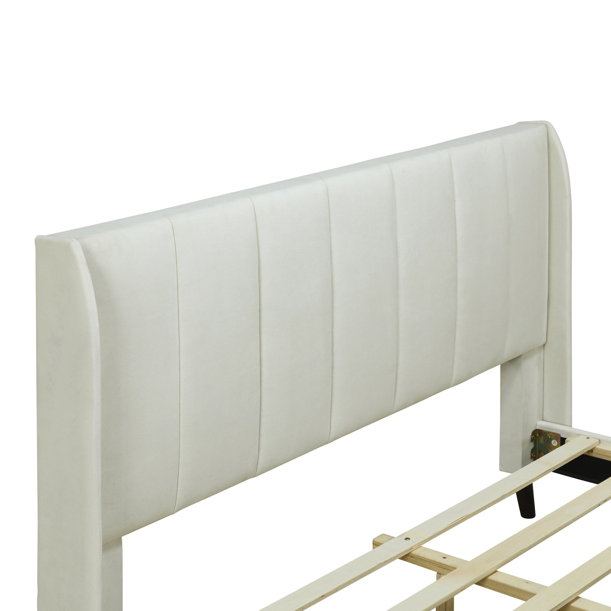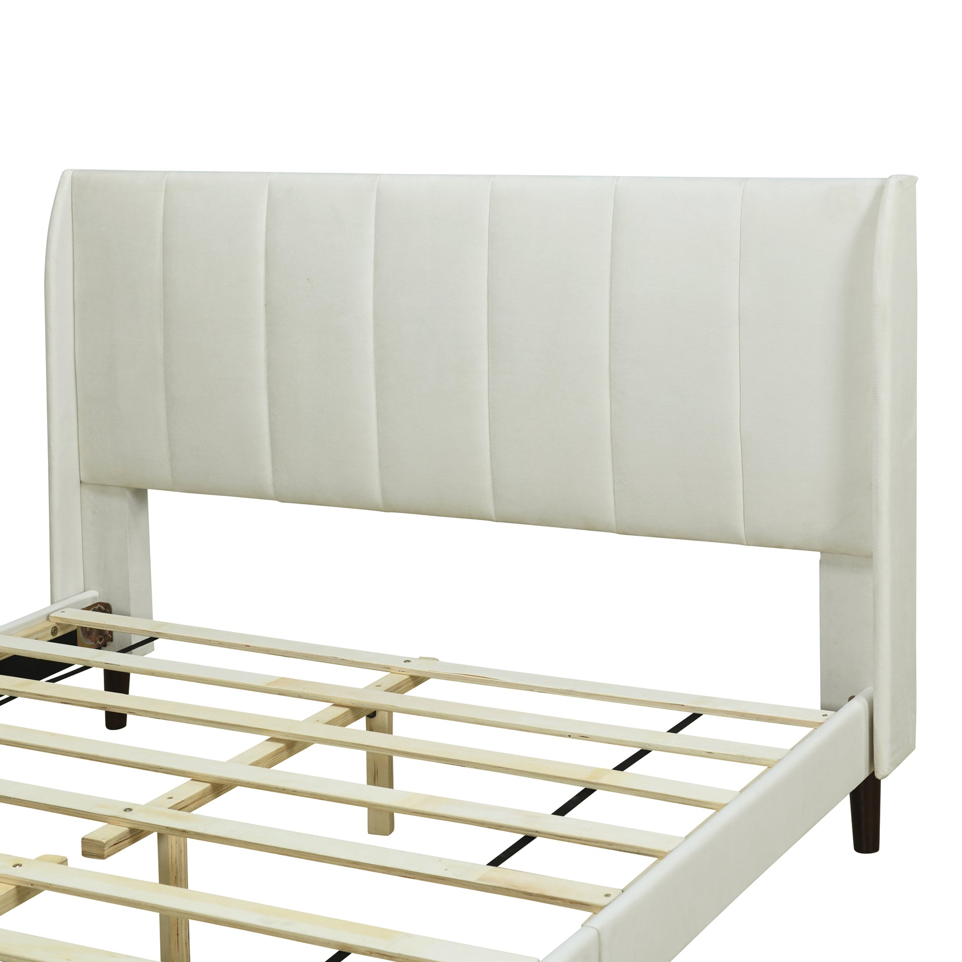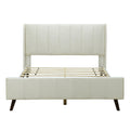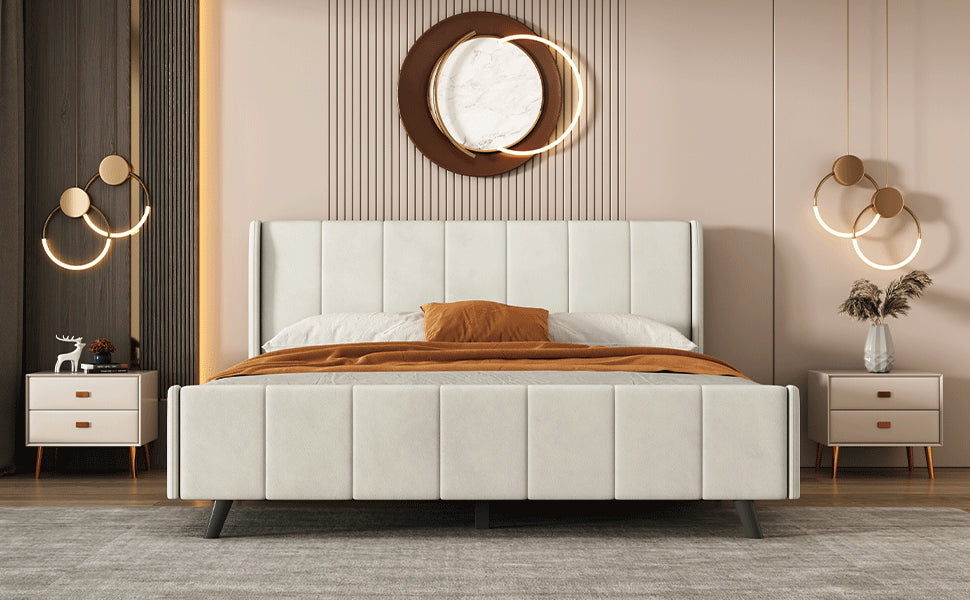 Queen Size Upholstered Platform Bed, Velvet, Beige Beige Upholstered
