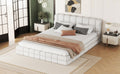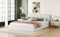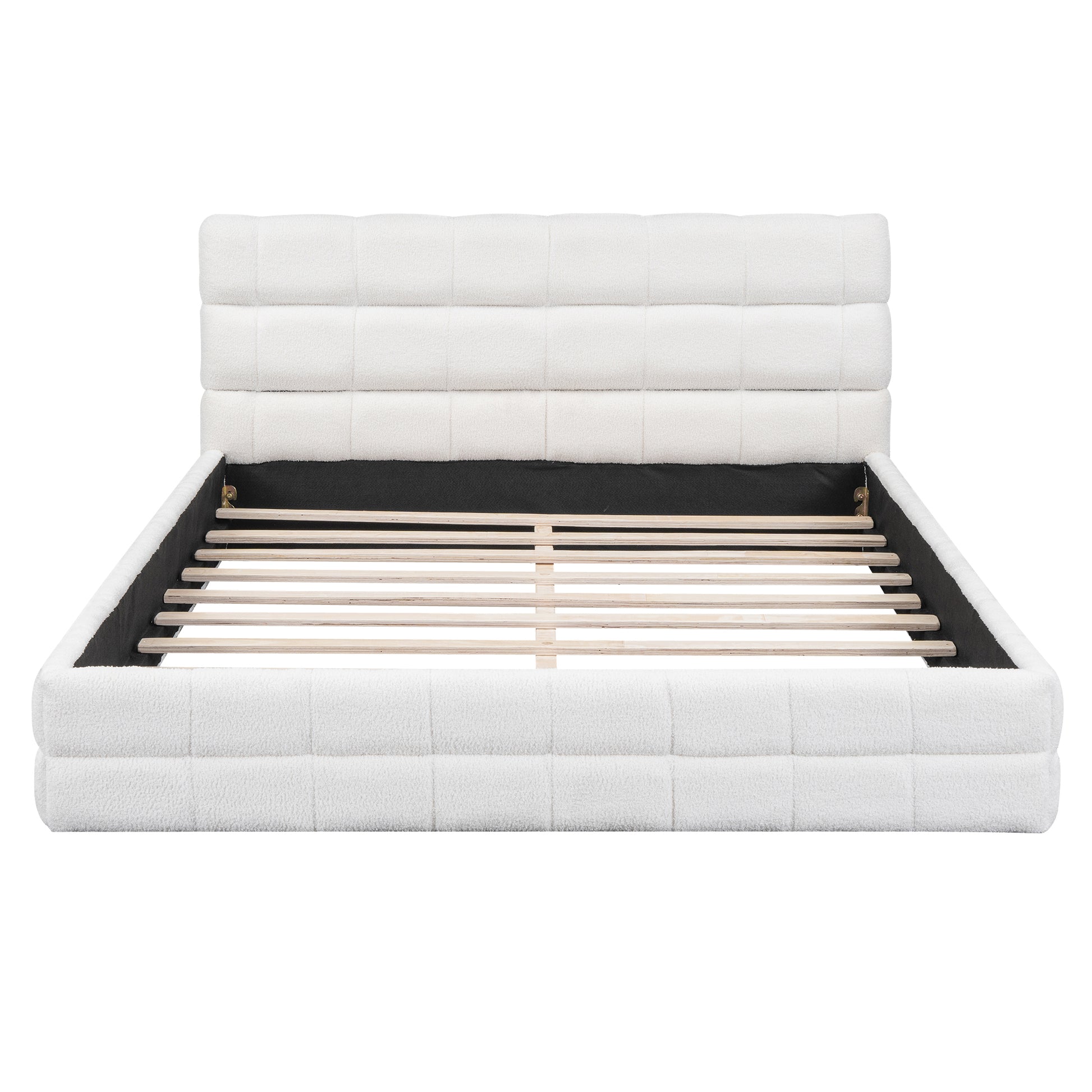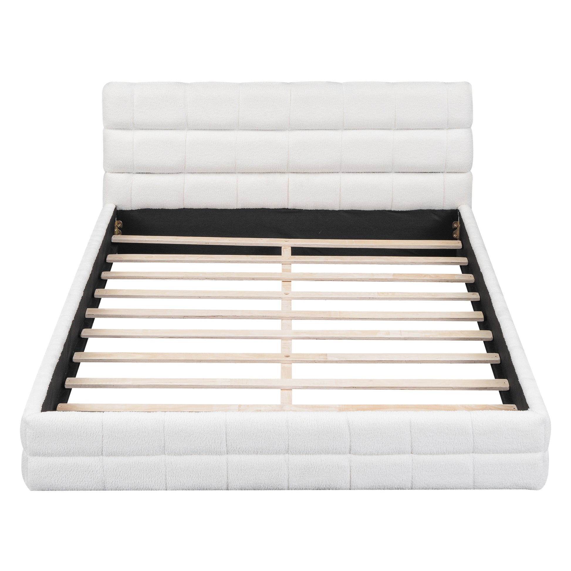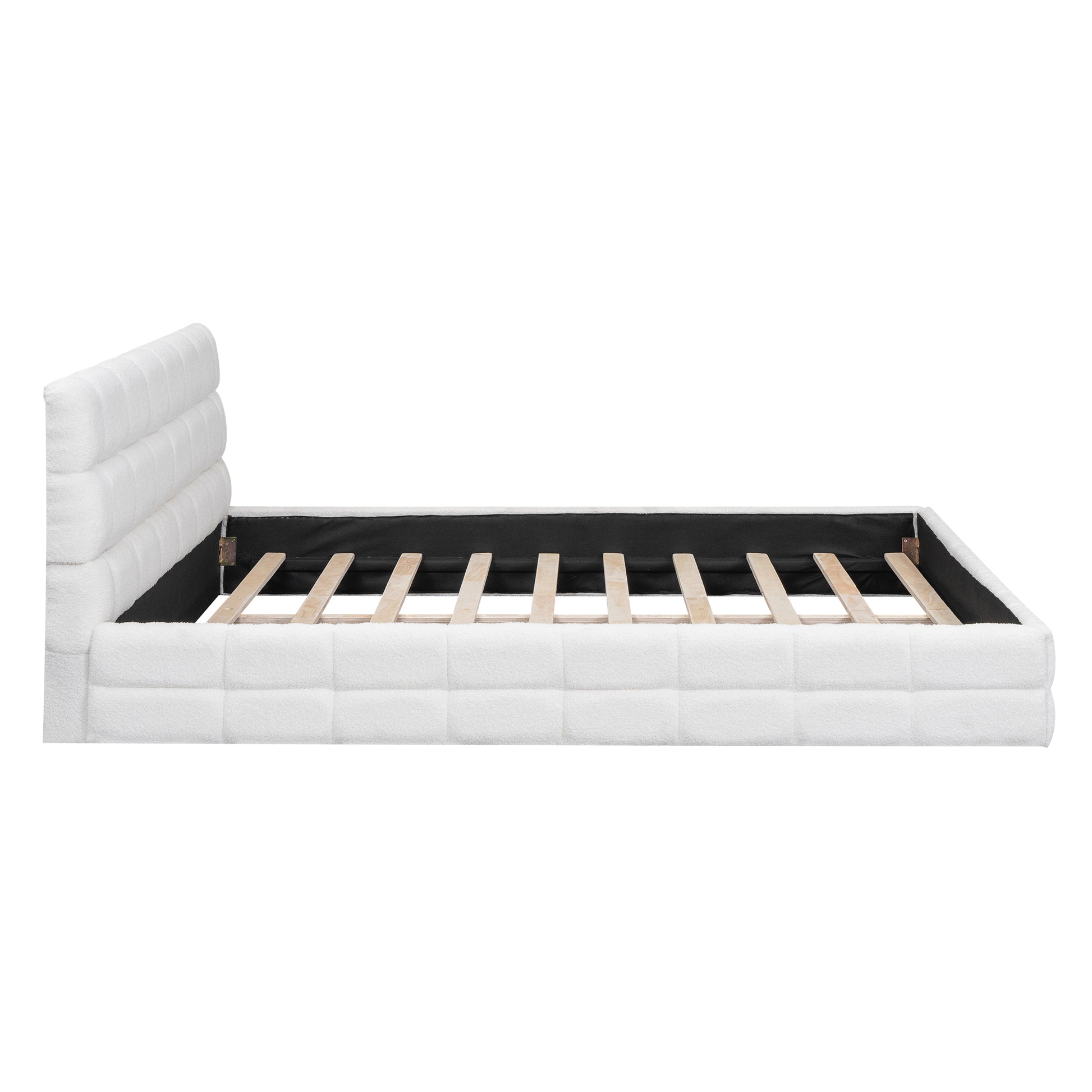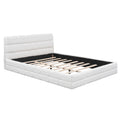 Queen Size Upholstered Platform Bed, White Box Spring Not Required Queen White Wood Bedroom Bed Frame Upholstered