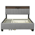 Queen Size Upholstered Platform Bed With Storage Headboard, Twin Xl Size Trundle & 2 Drawers And A Set Of Sockets & Usb Ports, Linen Fabric, Gray Gray Linen