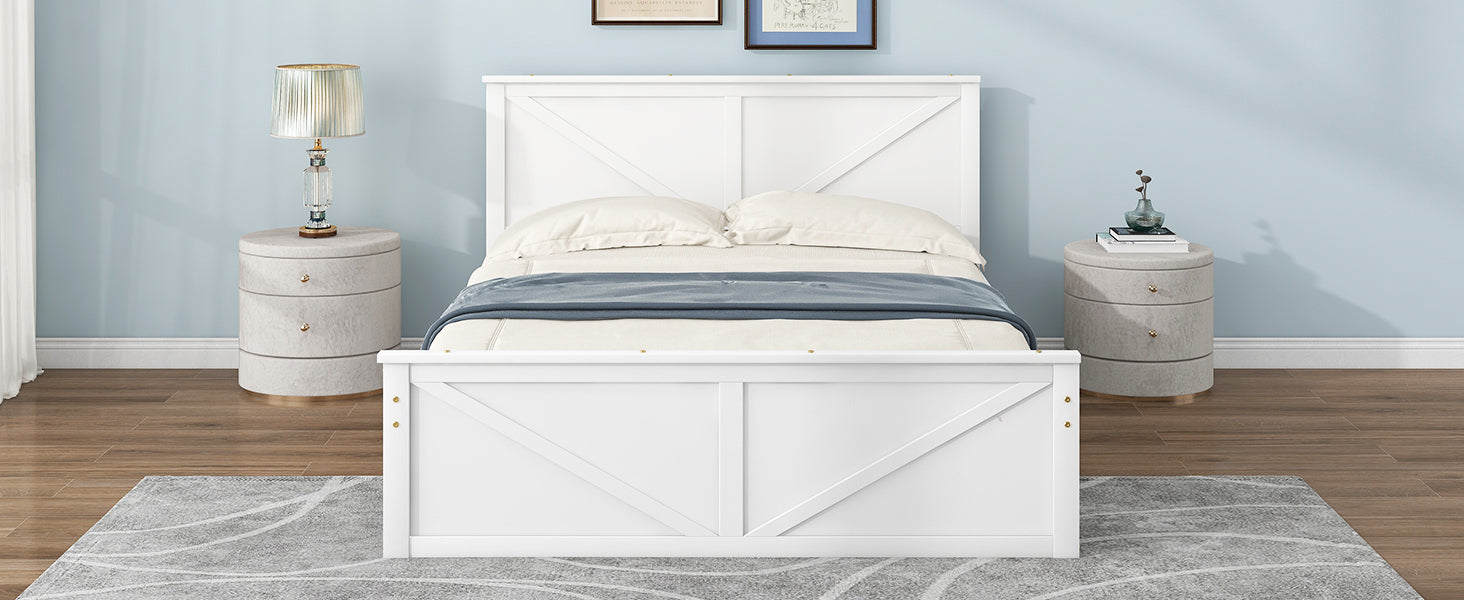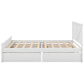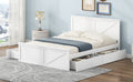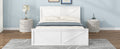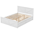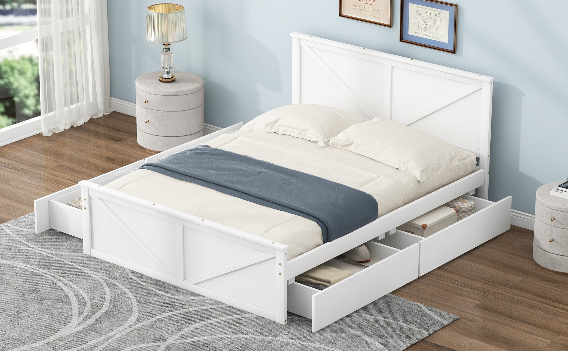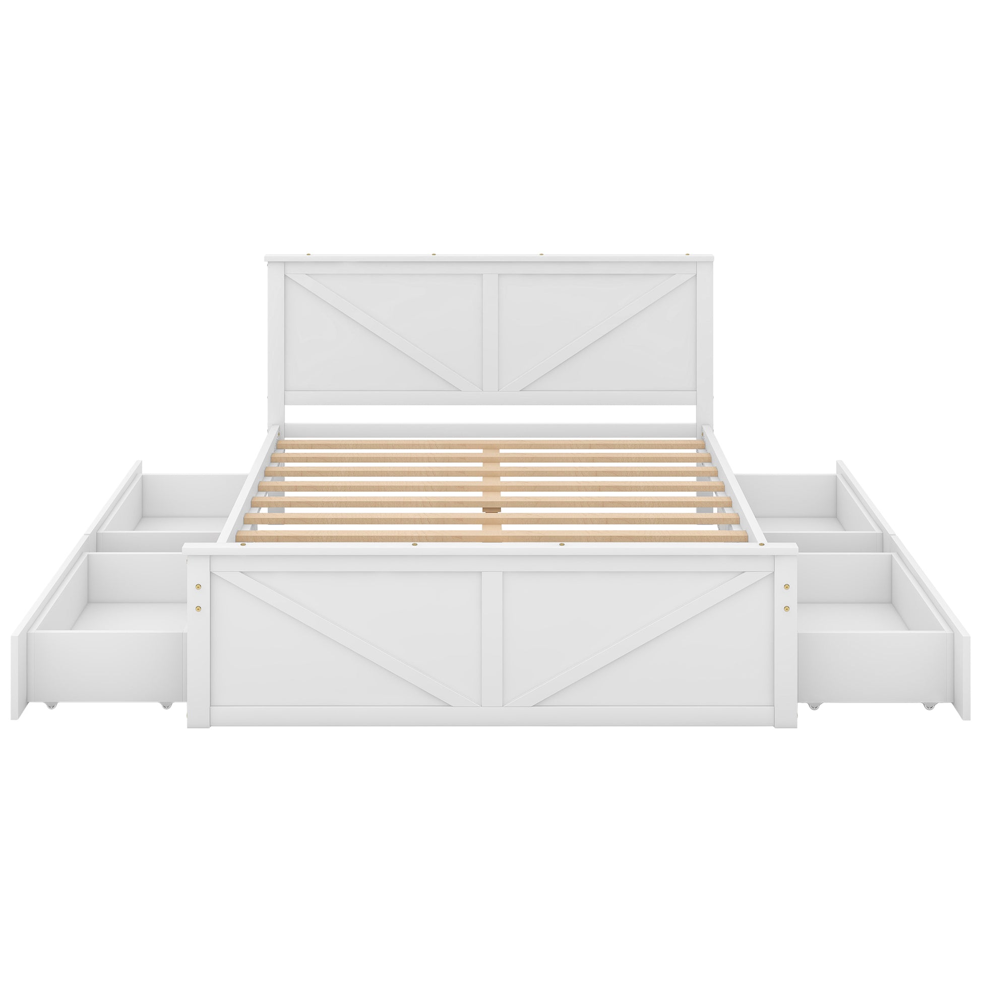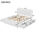 Queen Size Wooden Platform Bed With Four Storage Drawers And Support Legs, White Queen Antique White Pine