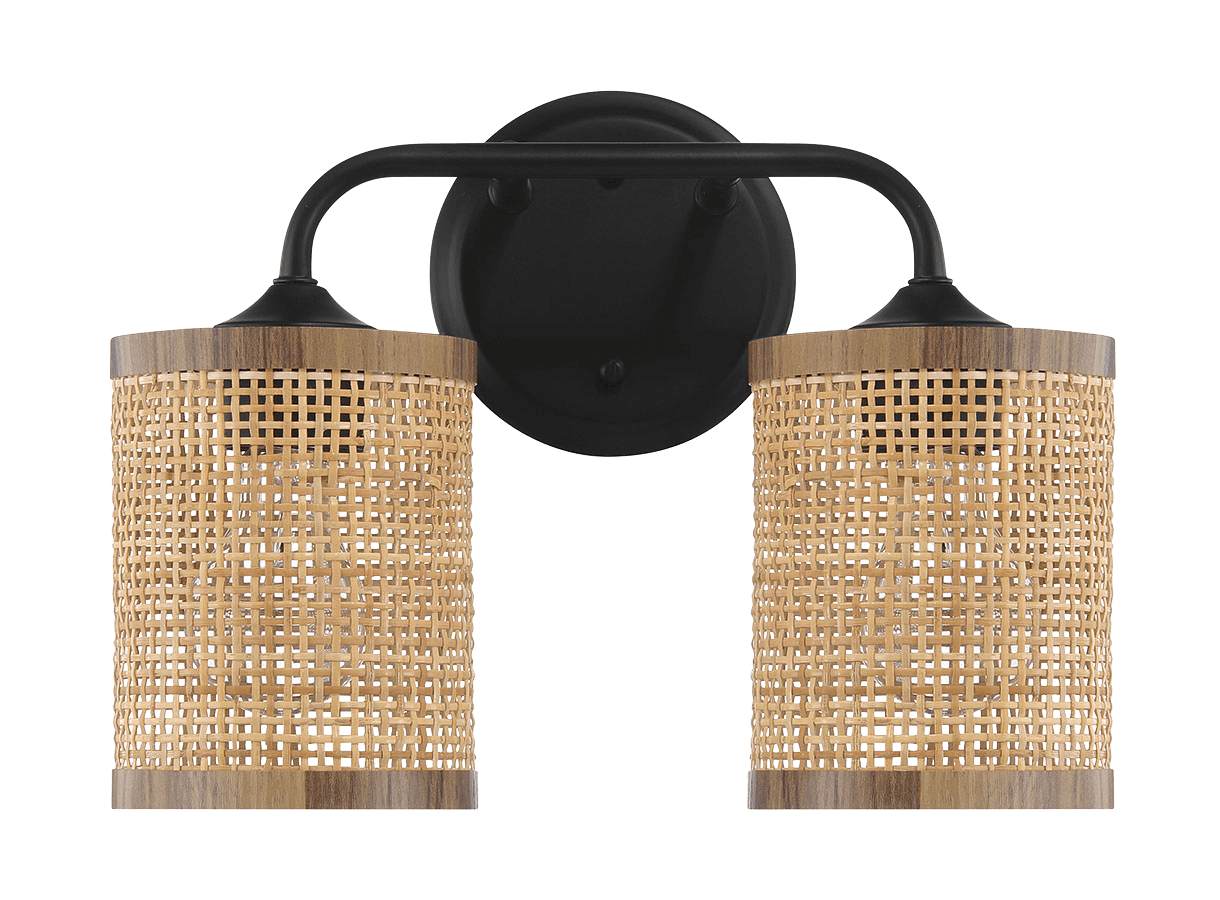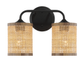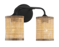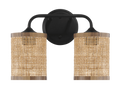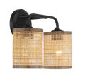 Quell Double Light Vanity With Natural Rattan Shade Wall Lamp Black,Rattan Metal,Rattan