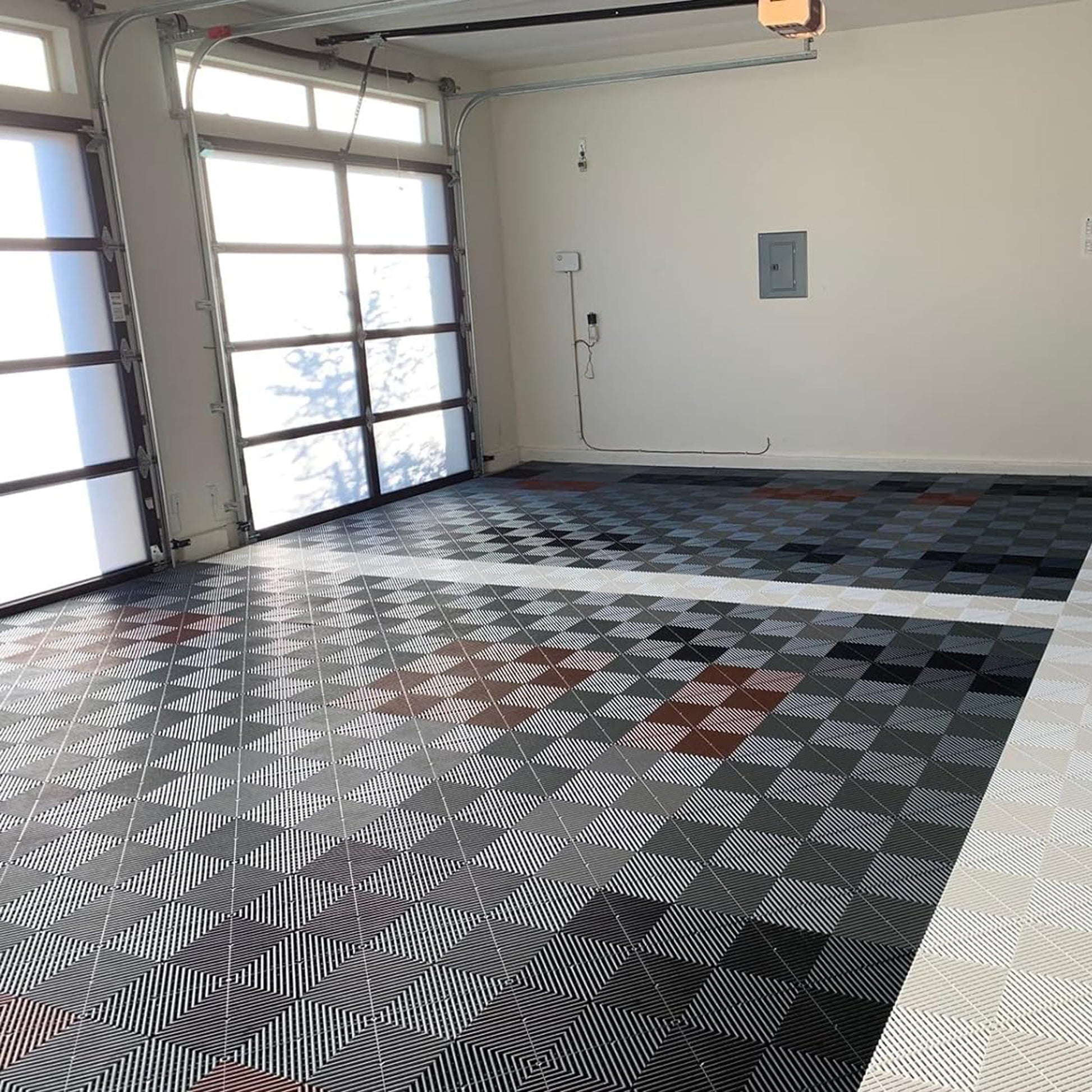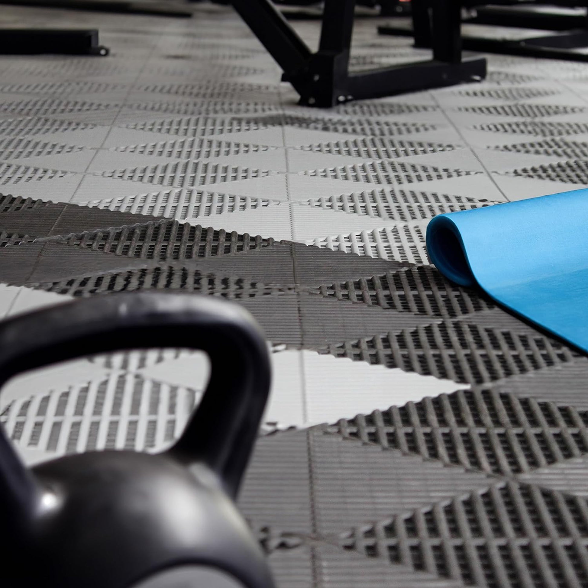Racedeck Free Flow Open Rib Self Draining Design, Durable Copolymer Plastic Interlocking Modular Garage Flooring Tile 40 Pack , Black Black Abs Pc