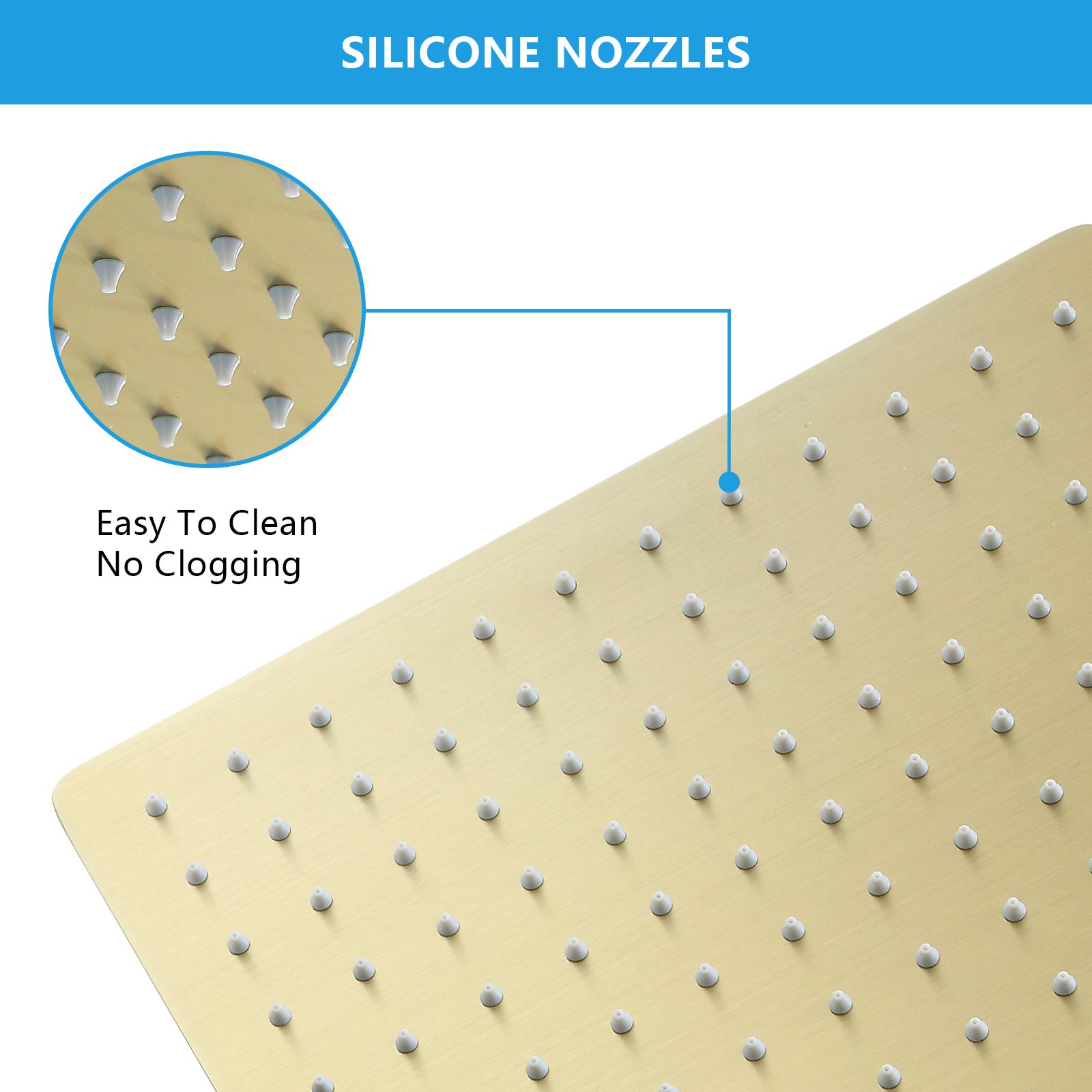 Rain Fixed Shower Head 12 Inch Square, Gold Gold Stainless Steel