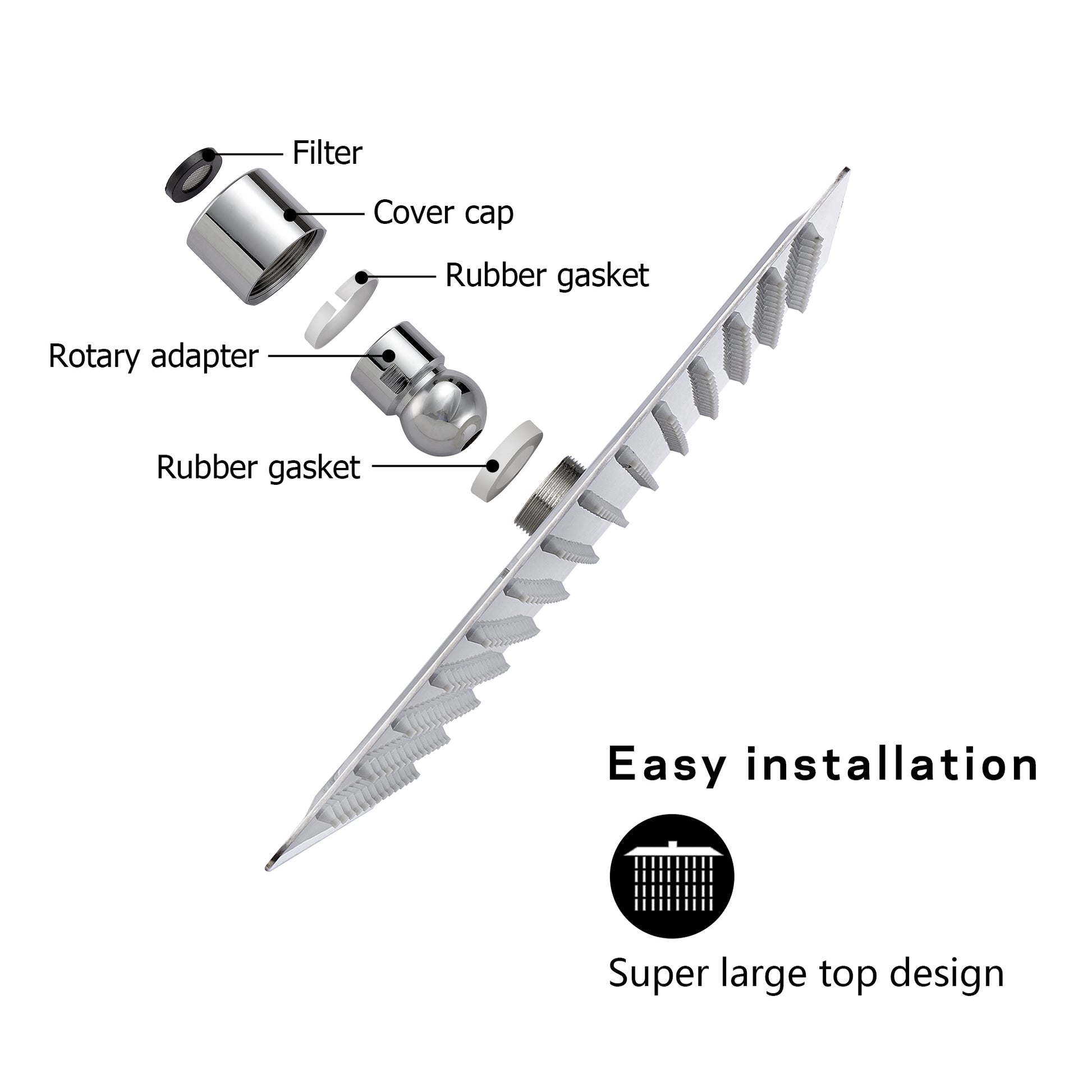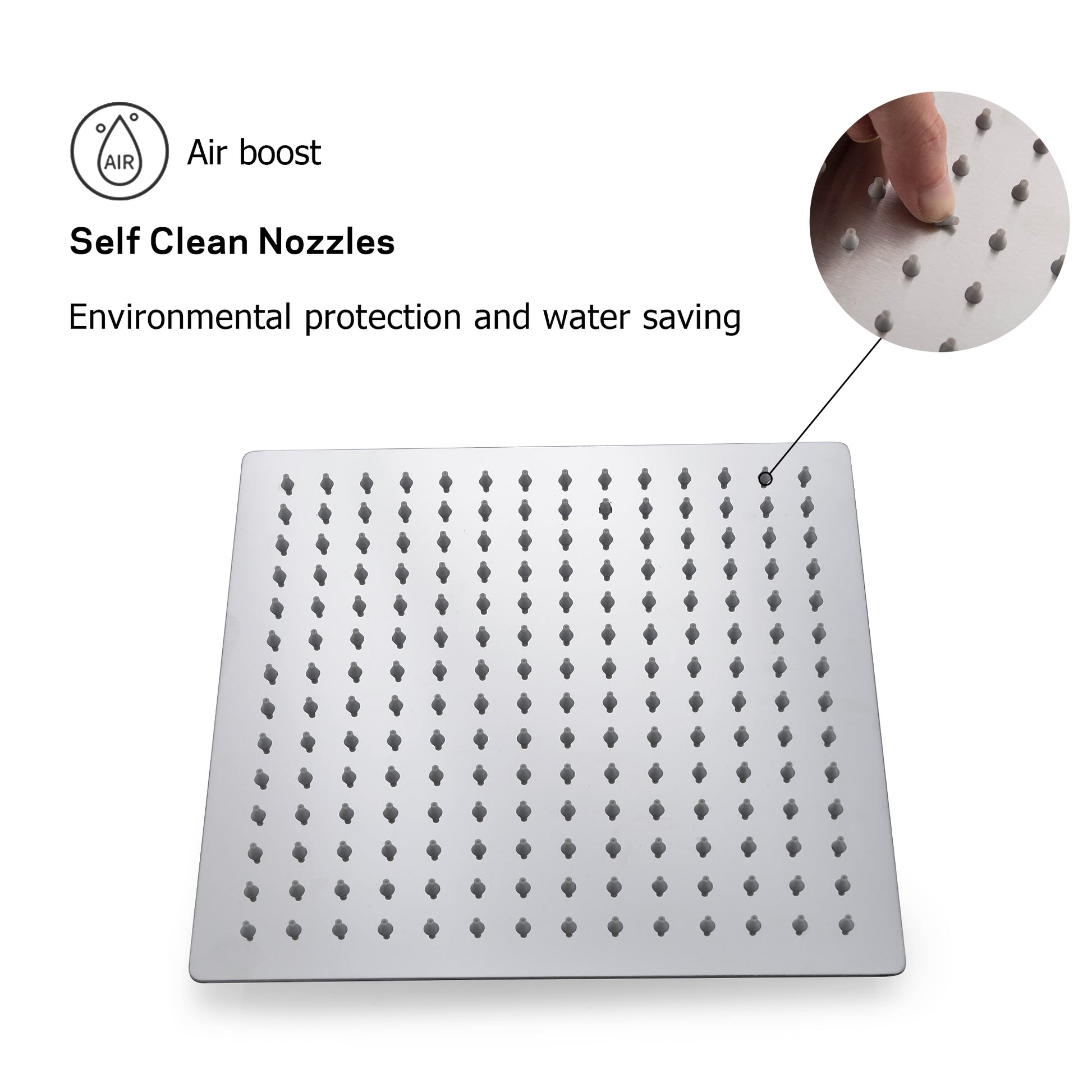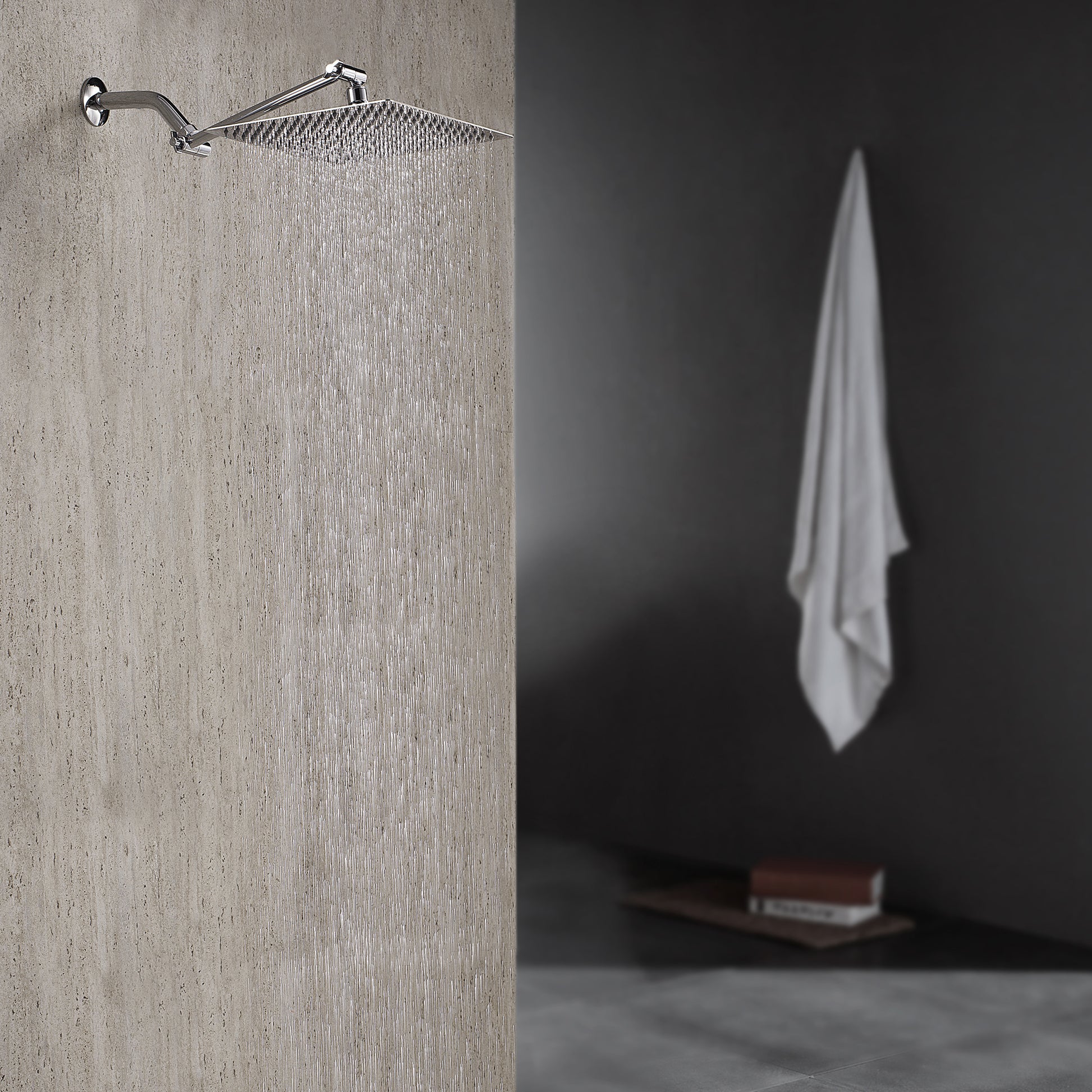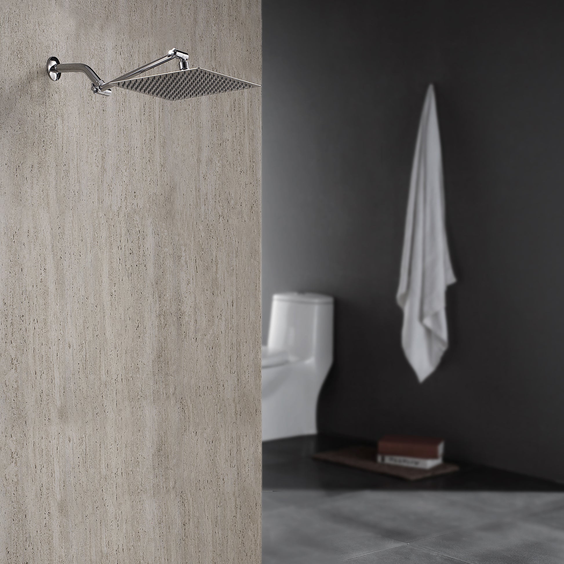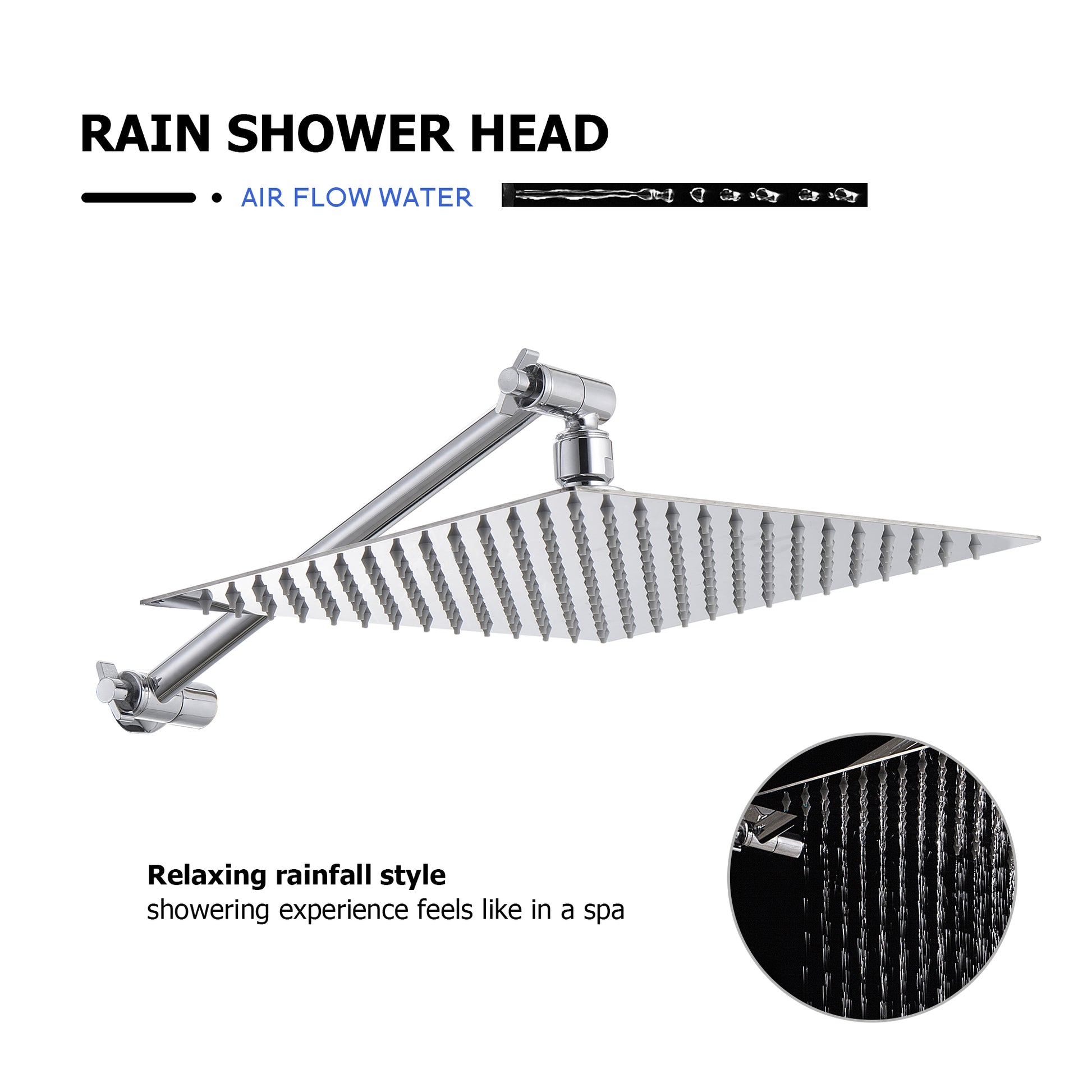 Rain Shower Head With Shower Arm 12 Inch Square, Chrome Chrome Stainless Steel