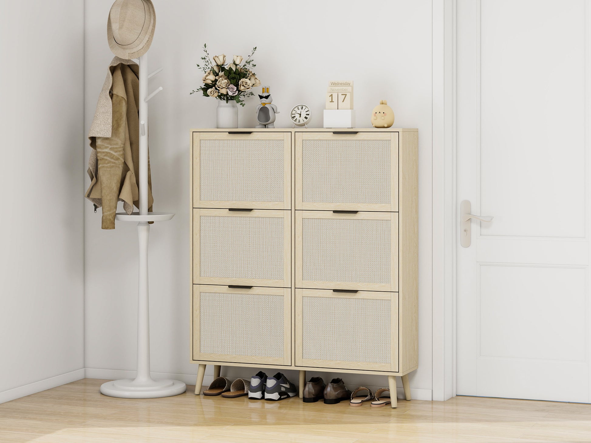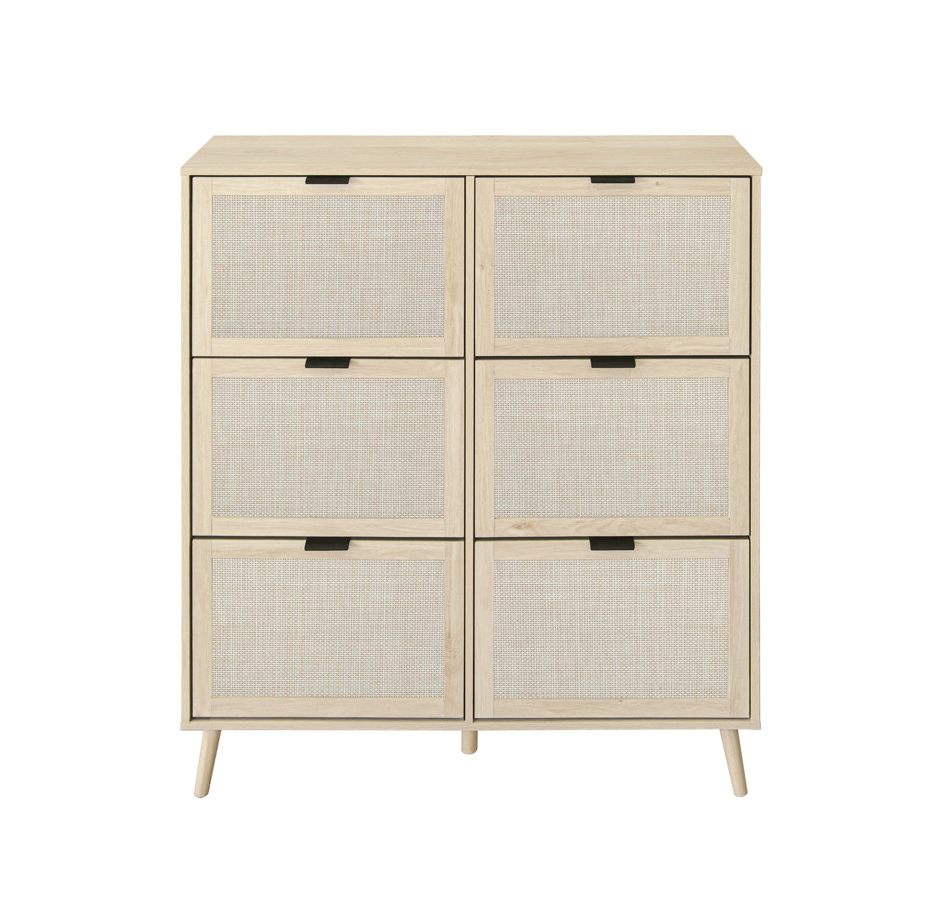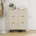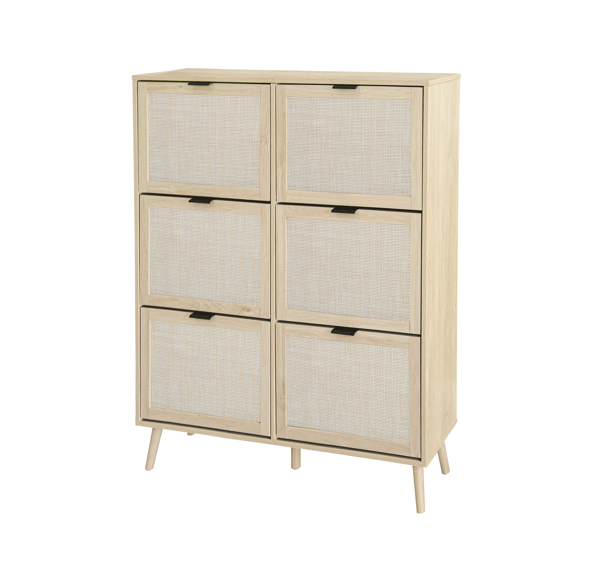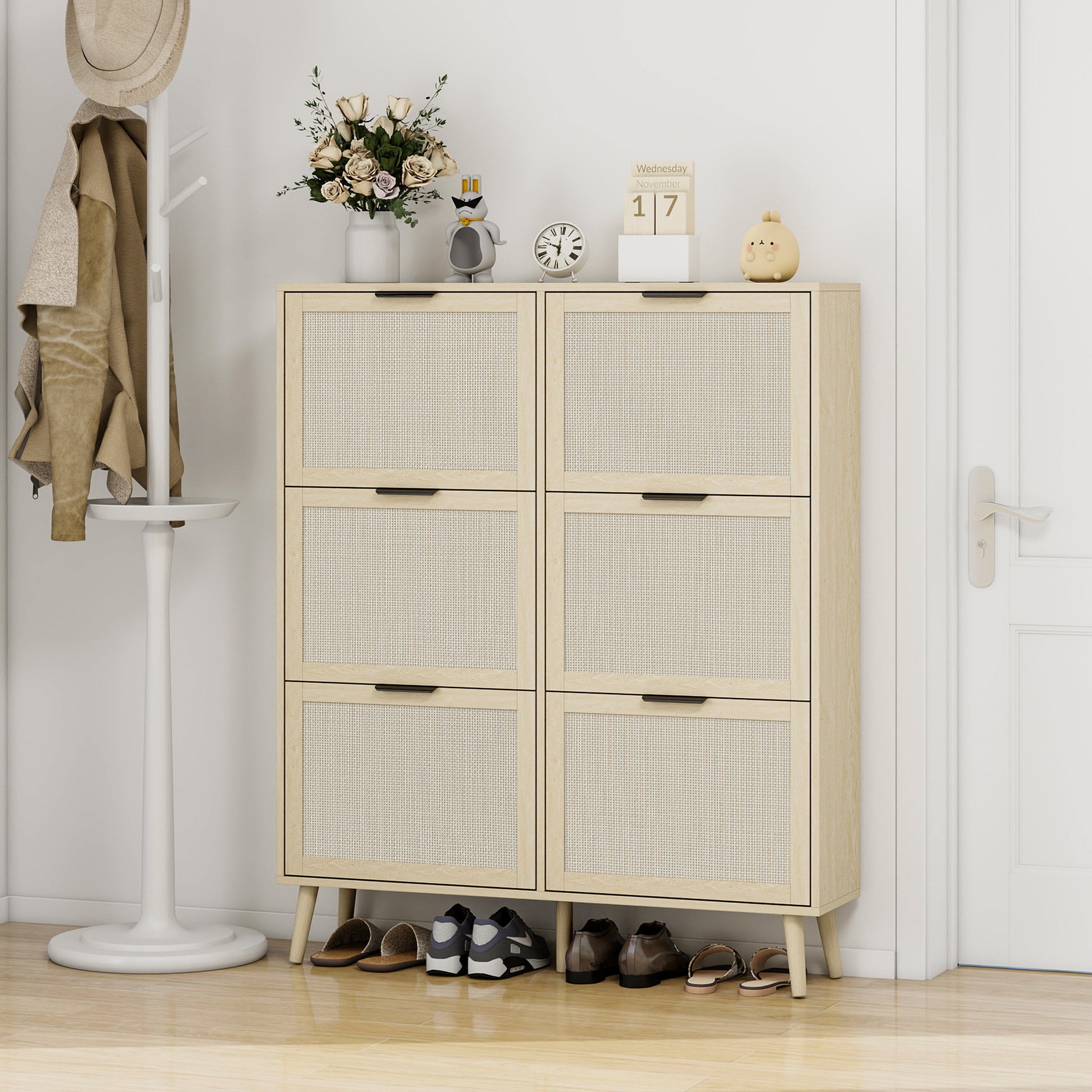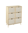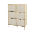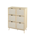 Rattan 6 Door Shoe Rack, Freestanding Modern Shoe Storage Cabinet, For Entryway Natural Particle Board