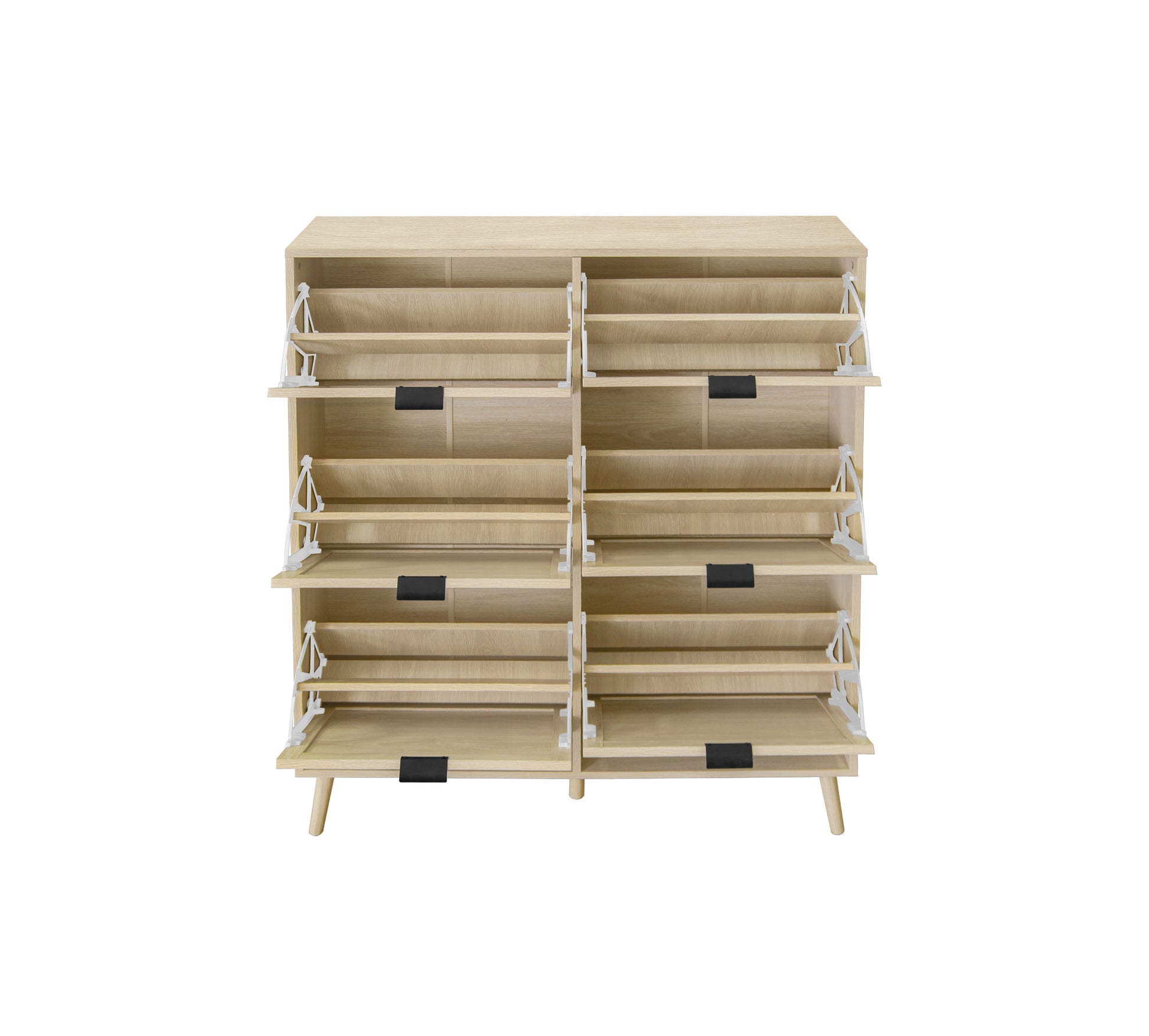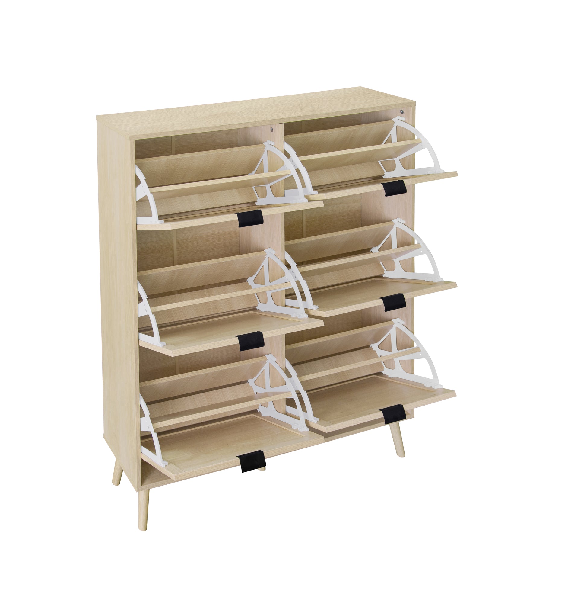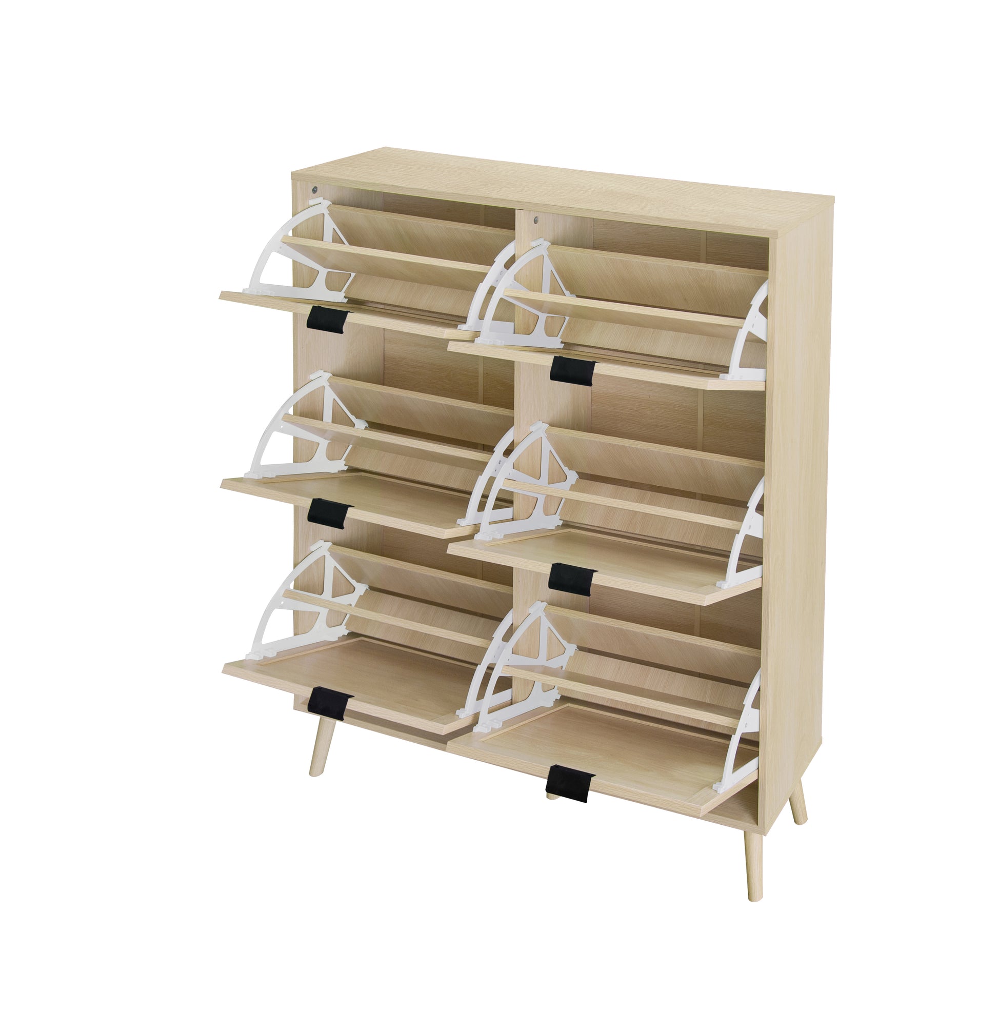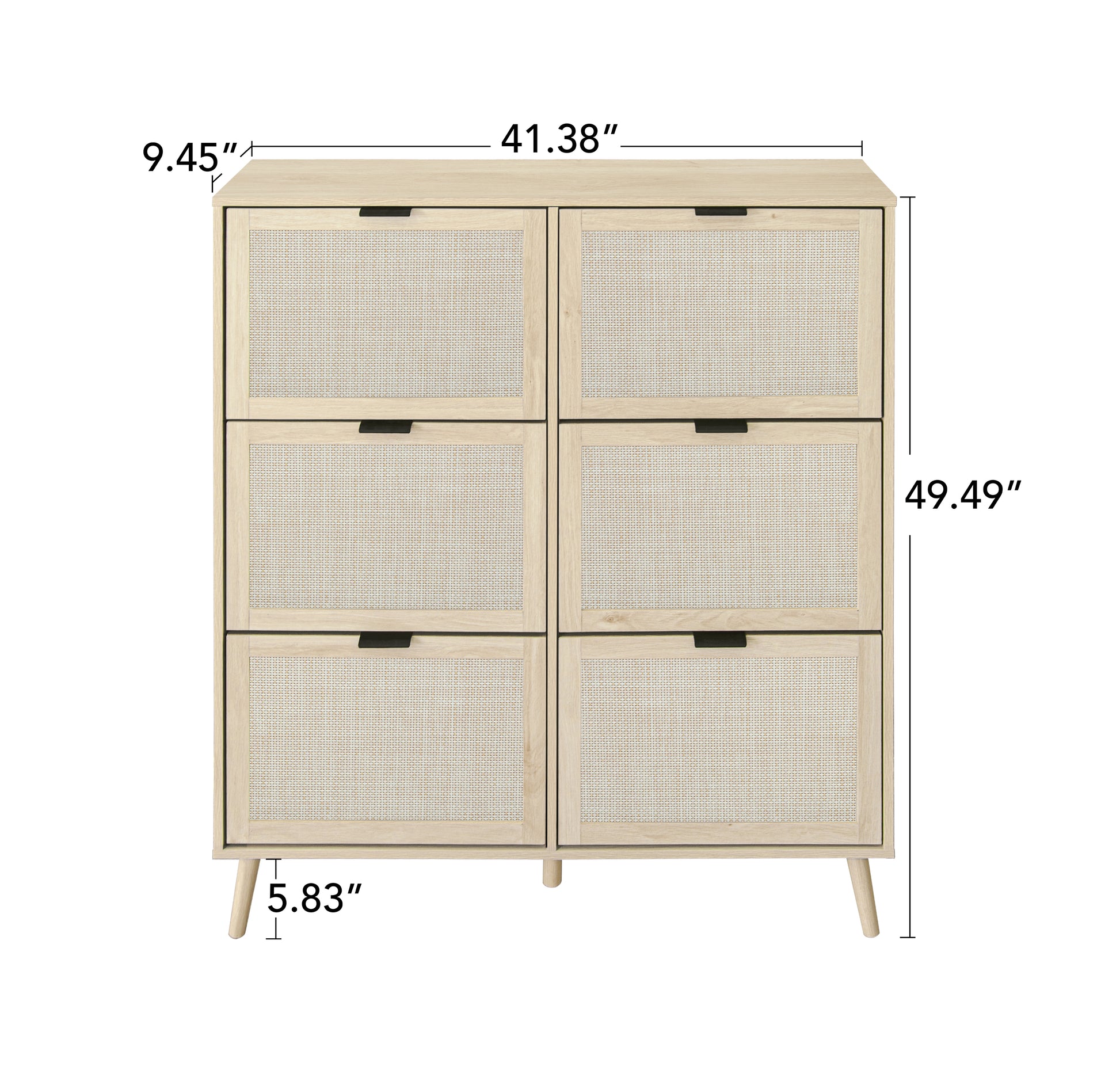 Rattan 6 Door Shoe Rack, Freestanding Modern Shoe Storage Cabinet, For Entryway Natural Particle Board