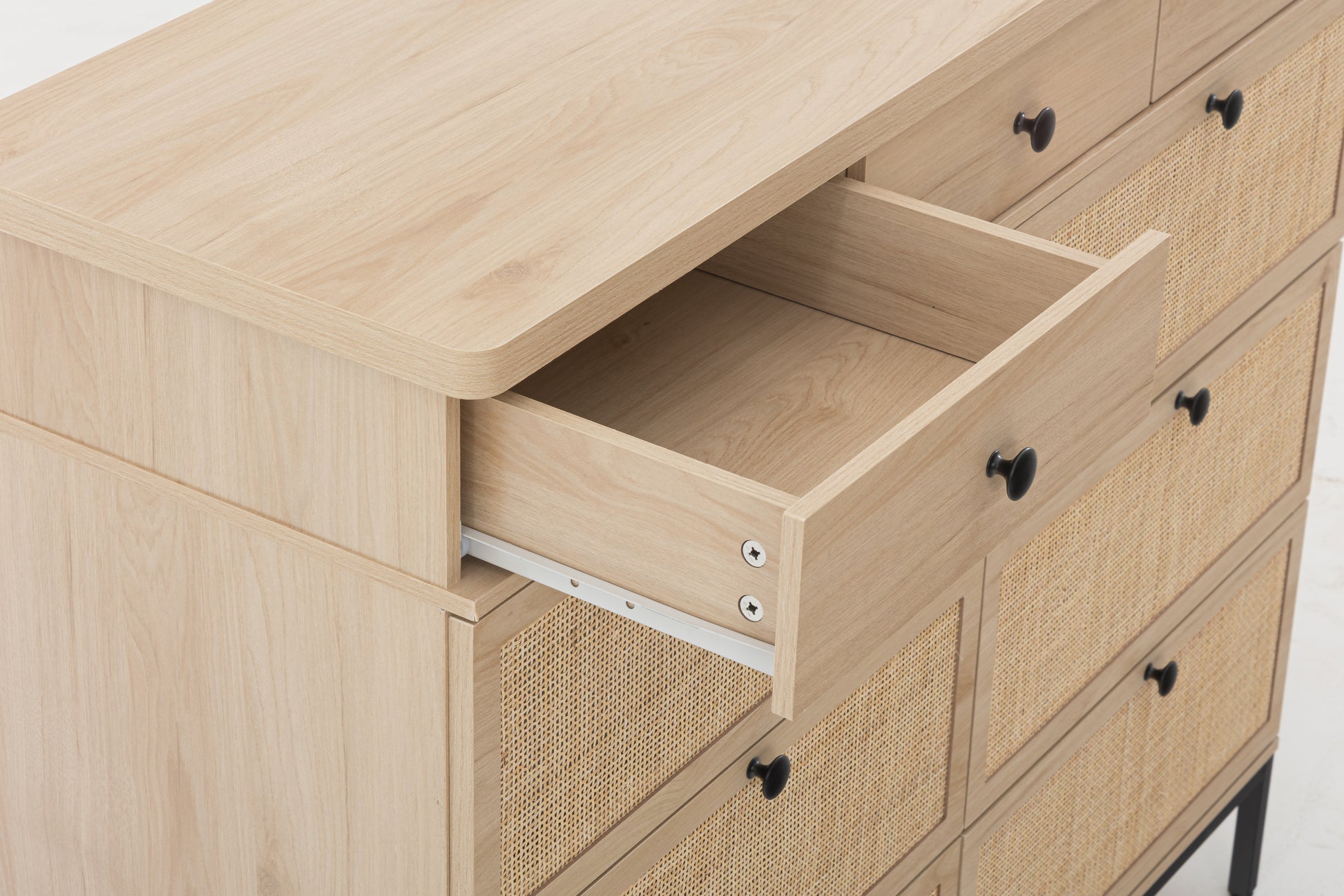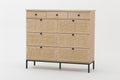 Rattan 9 Drawer Dresser For Bedroom, 60 Inch Wide Rustic Wood Dresser Tv Stand, Dresser Chest Of Drawers For Closet, Living Room, Hallway, Dark Rustic Oak Rattan Mdf Steel