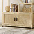 Rattan Bookshelf 7 Tiers Bookcases Storage Rack With Cabinet For Living Room Home Office, Natural, 39.4'' W X 13.8'' D X 75.6'' H. Natural Particle Board