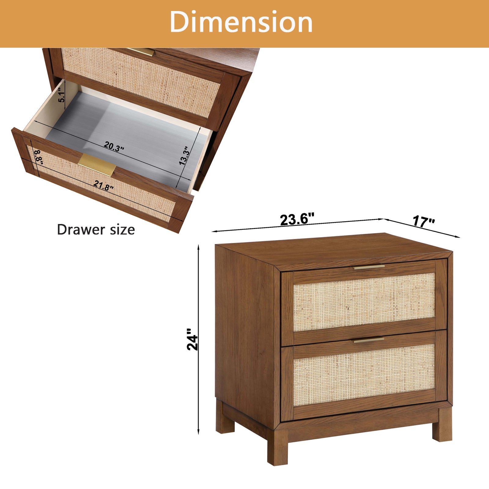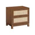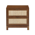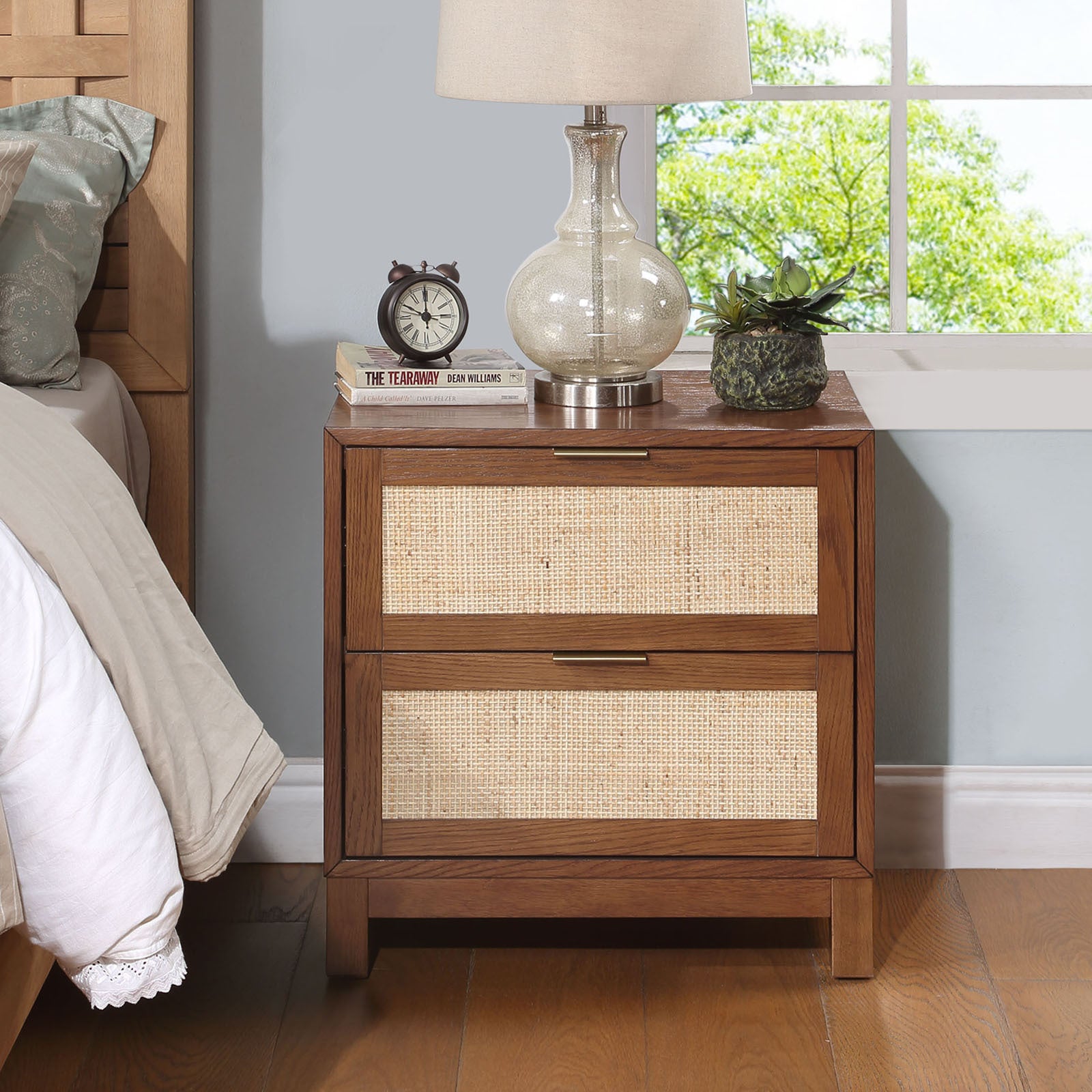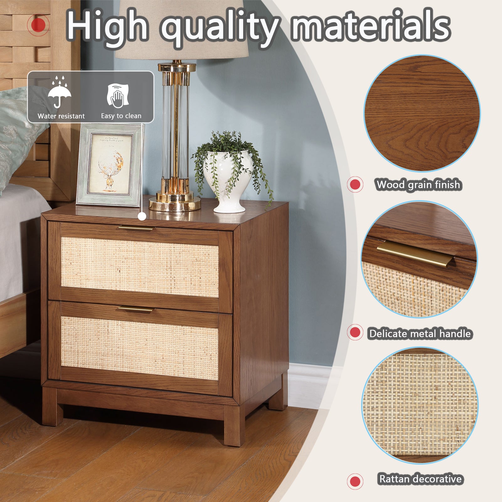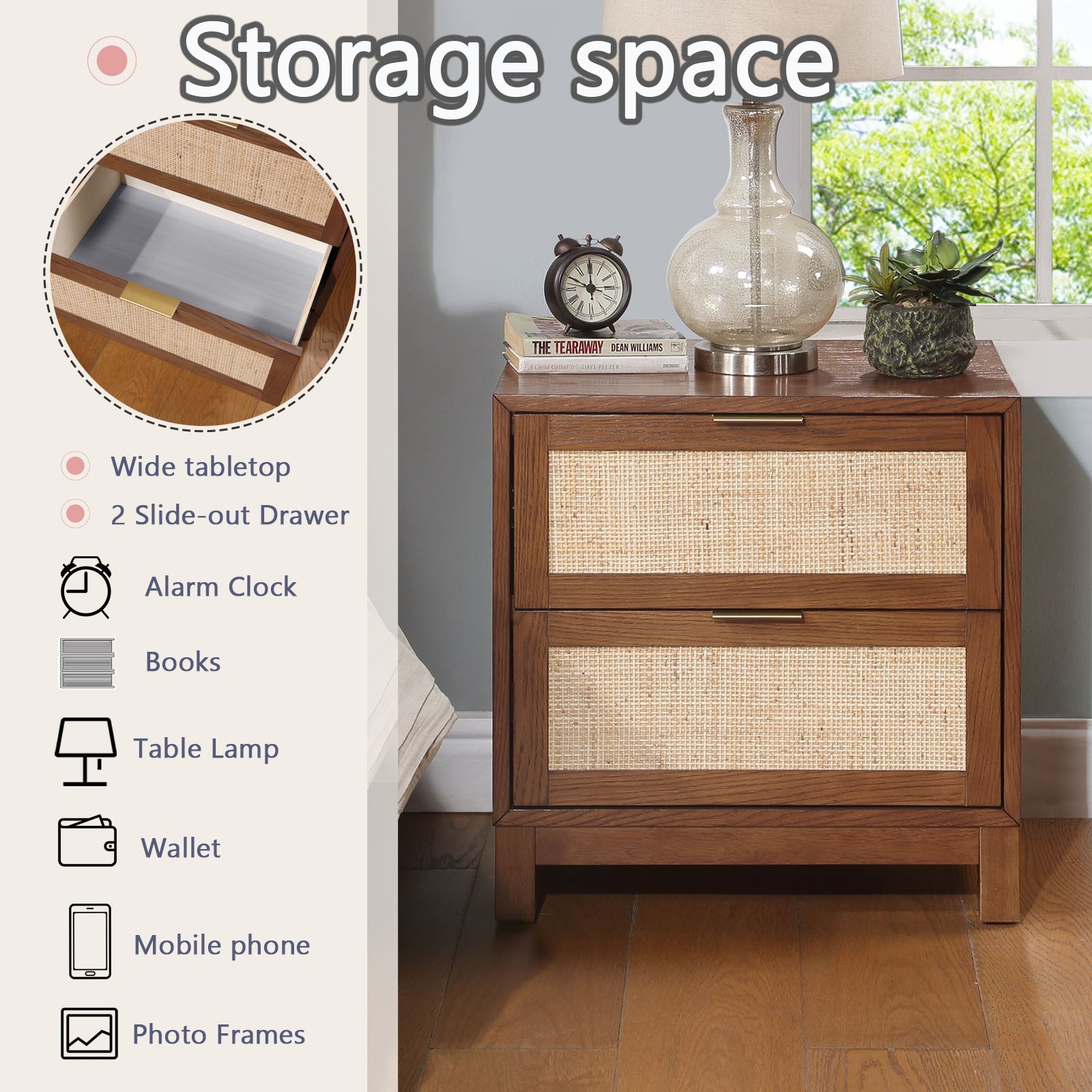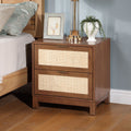 Rattan Nightstand, Wood End Table, Side Table With 2 Hand Made Rattan Decorated Drawers,Boho Bedside Table,Wood Accent Table With Storage For Livingroom, Bedroom,Dark Oak Dark Oak 2 Drawers Rubber Wood