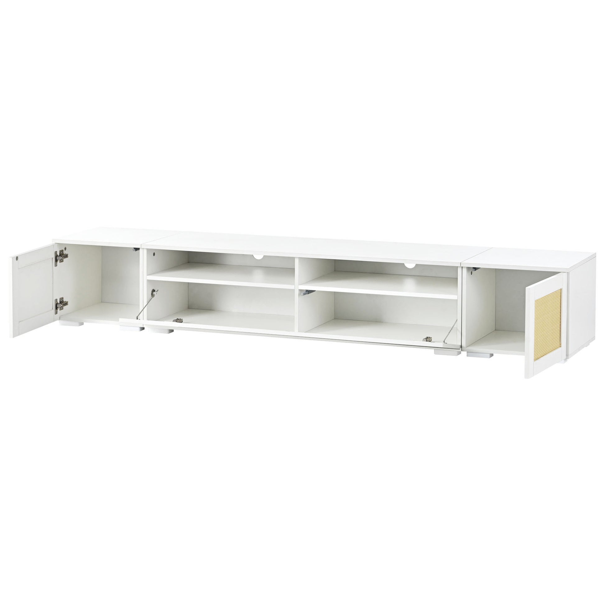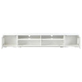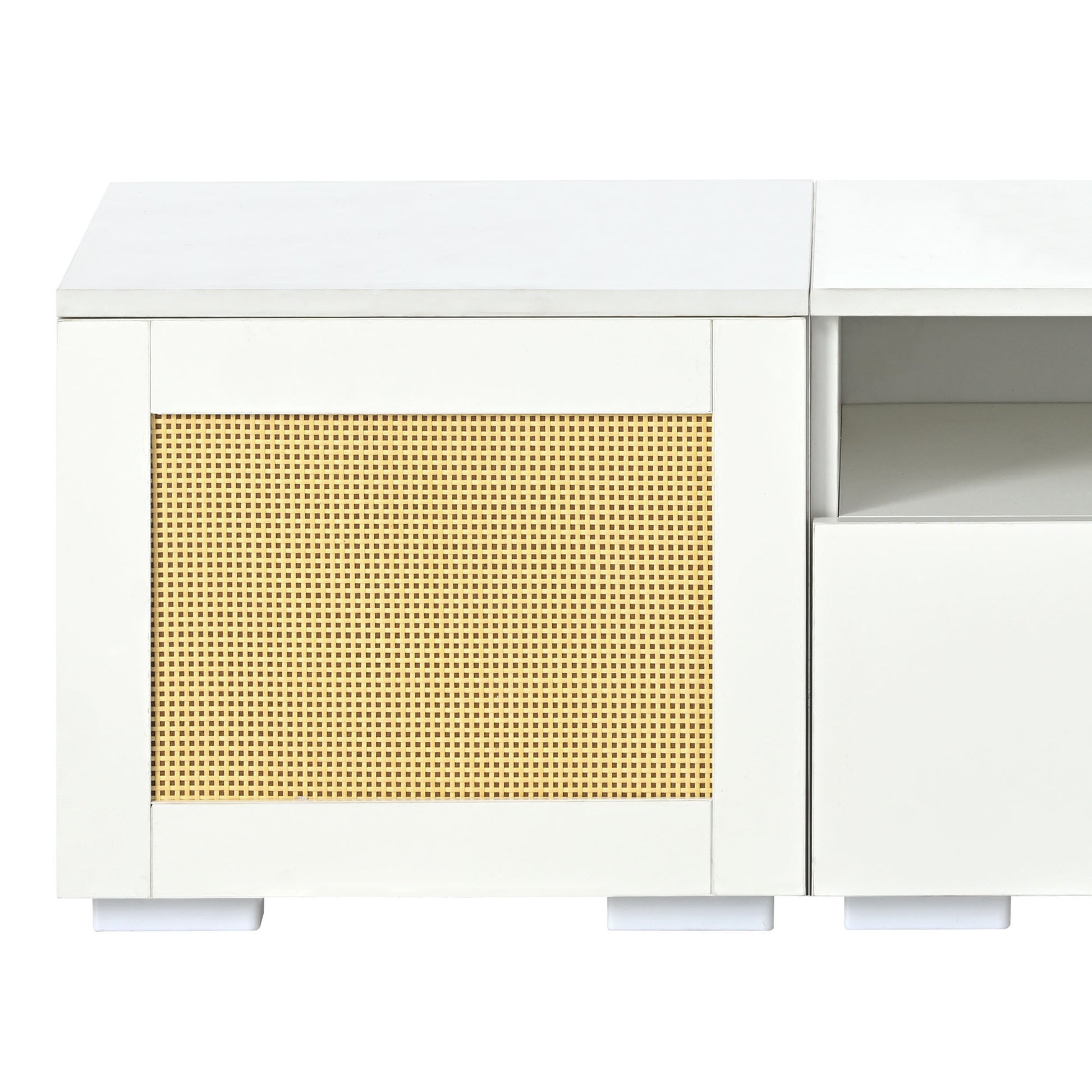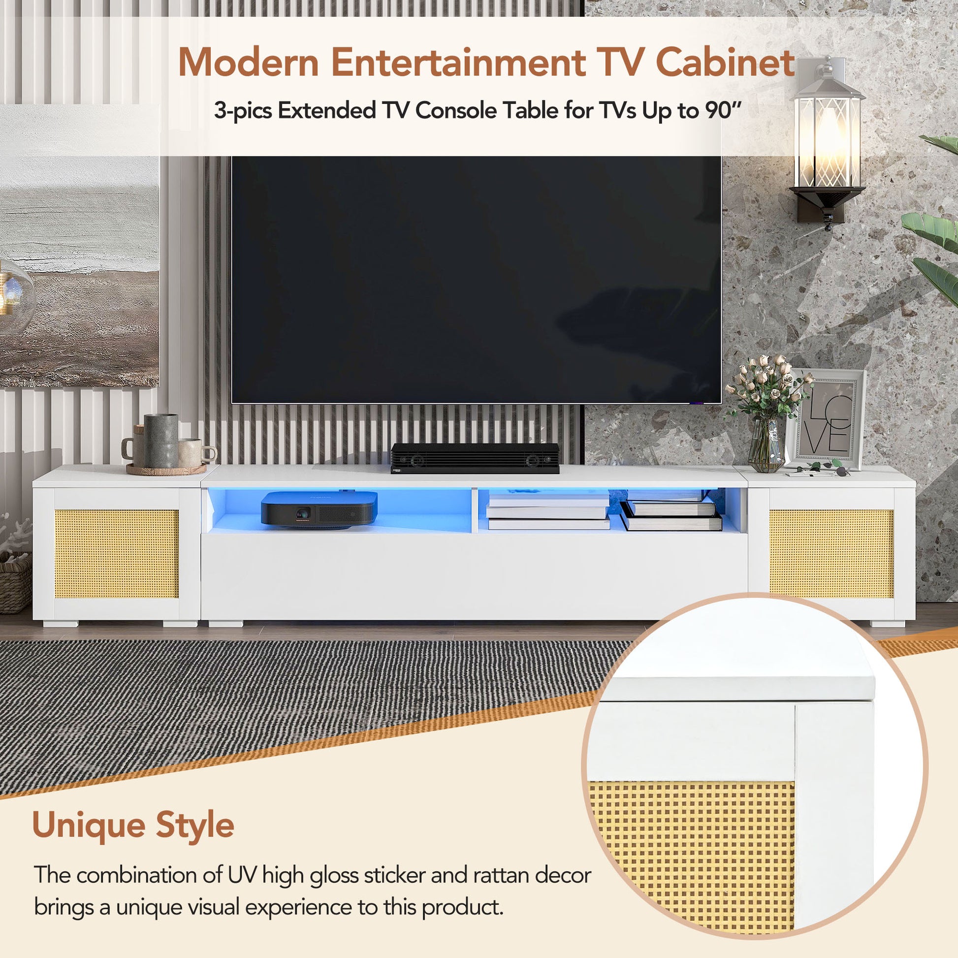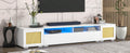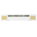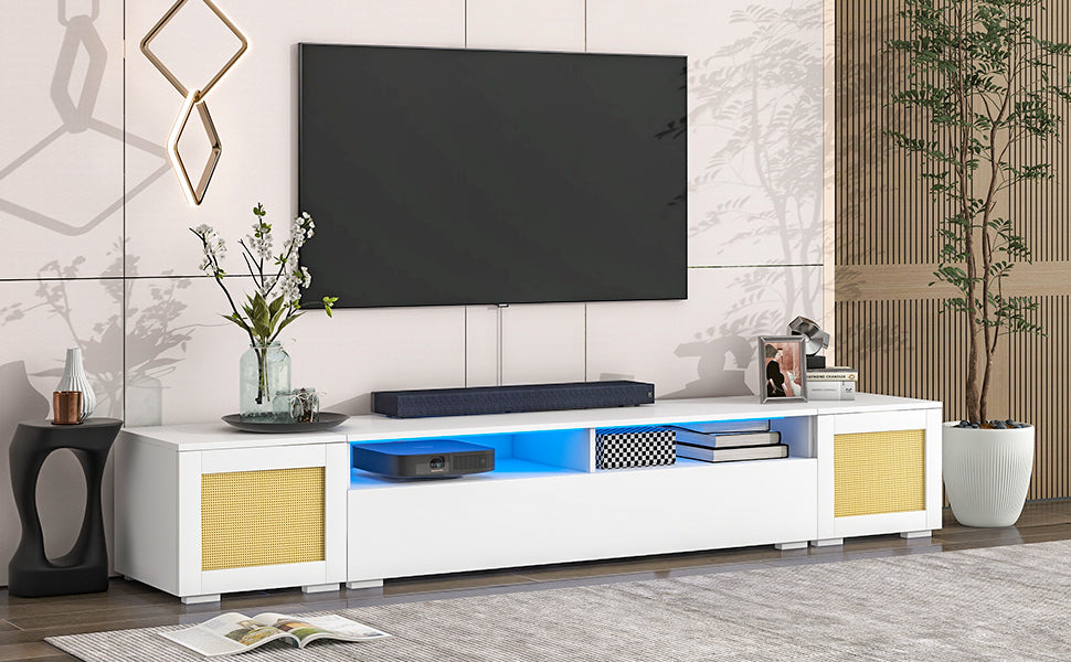 Rattan Style Entertainment Center With Push To Open Doors, 3 Pics Extended Tv Console Table For Tvs Up To 90'', Modern Tv Stand With Color Changing Led Lights For Home Theatre, White White Particle Board