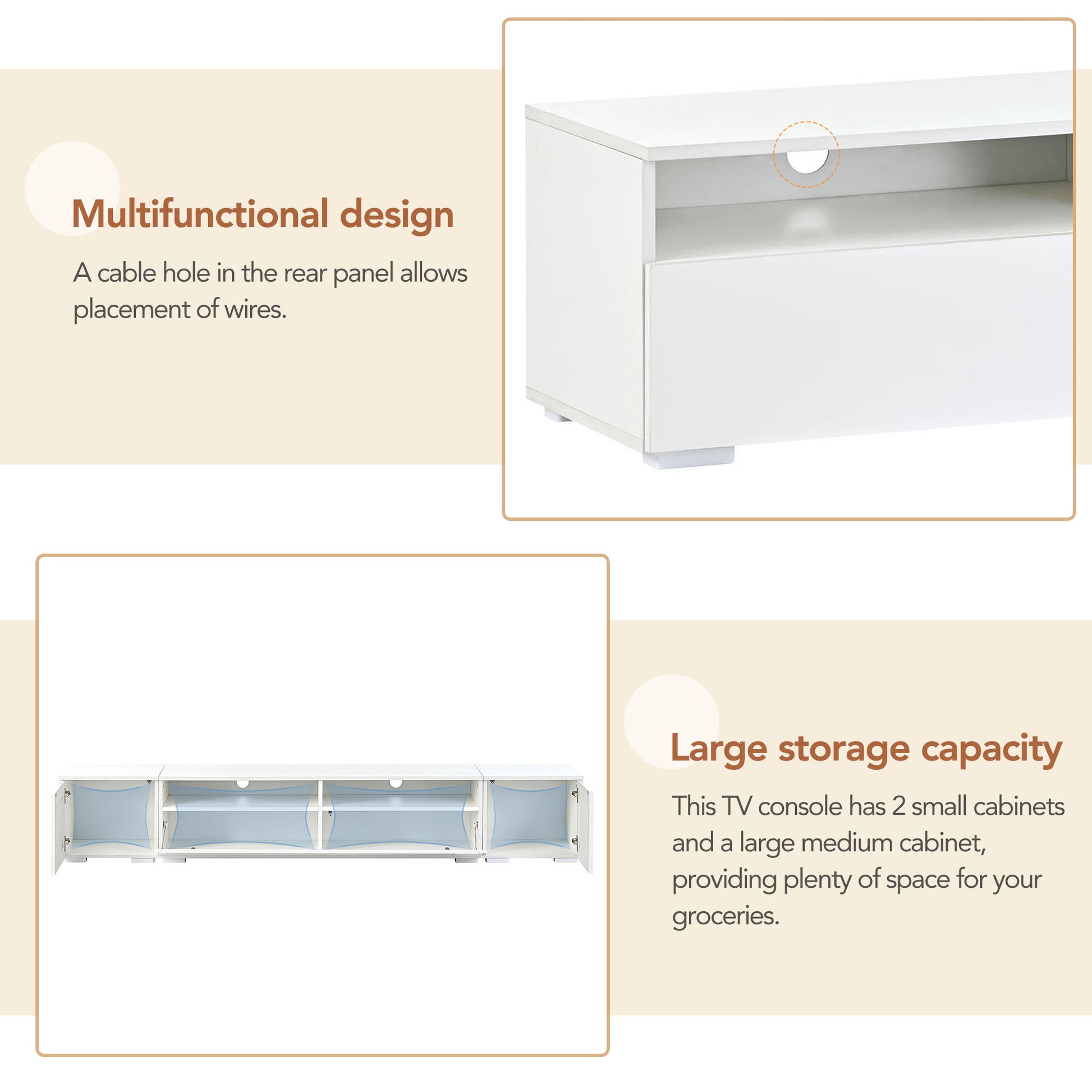 | Detailed Measurement | Overall: 82.6''w x 15.6''d x 13.8''h / Side Cabinet: 14.6''w x 14.2''d x 11.8''h / Middle Cabinet: 24.7''w x 14.2''d x 6.7/4.3''H |