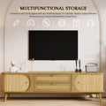 Rattan Tv Stand For Tvs Up To 75'', Modern Farmhouse Media Console, Entertainment Center With Solid Wood Legs, Tv Cabinet For Living Room,Home Theatre Natural Wood Primary Living Space 60 69 Inches