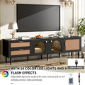 Rattan Tv Stand With 3 Cabinets & 2 Drawers, Rattan Inspired Media Console Table For Tvs Up To 80'', Led Light Entertainment Center, Tv Cabinet For Living Room, Bedroom, Home Theatre Black Primary
