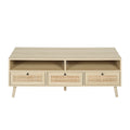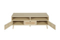 Rattan Tv Stand With Solid Wood Feet, Tv Console Table For Living Room, Natural Oak Particle Board