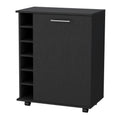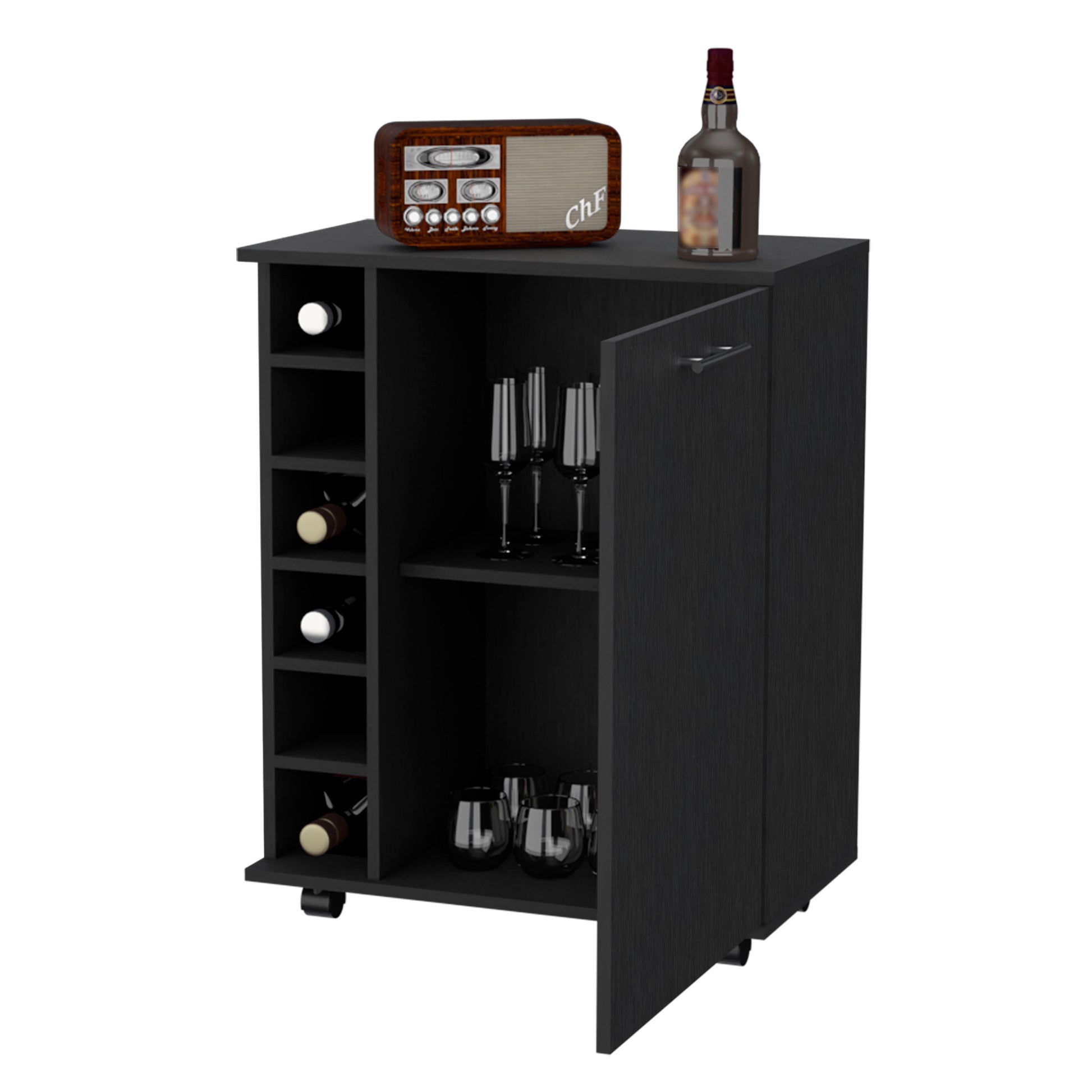 Rawlins Bar Cart With 6 Bottle Rack, Storage Cabine And Mobile Caster Wheels Black Particle Board Engineered Wood