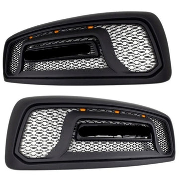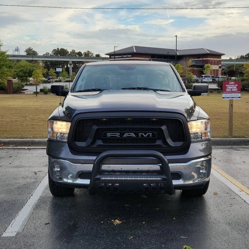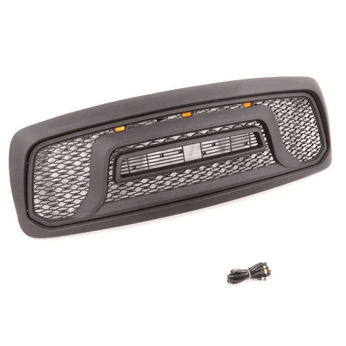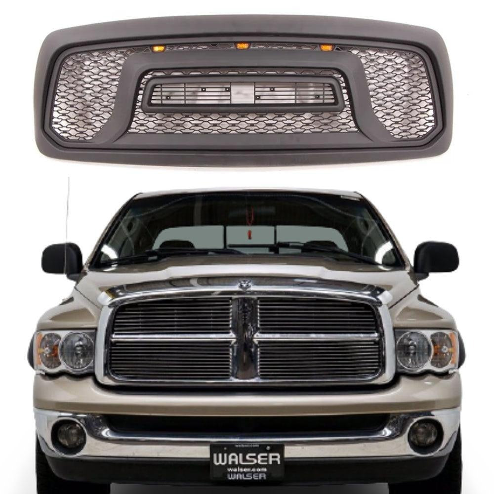 Rebel Style Front Grille For 2002 2003 2004 2005 Dodge Ram 1500 Power Wagon Grill Replacement With Letters And Amber Led Lights Black Matt Black Abs Abs