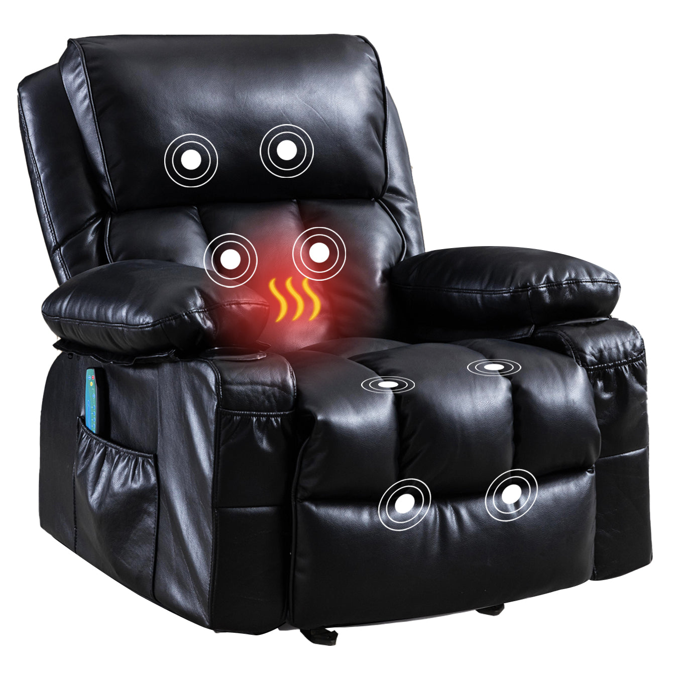 Recliner Chair For Living Room With Rocking Function And Side Pocket Black Soft Foam Polyester