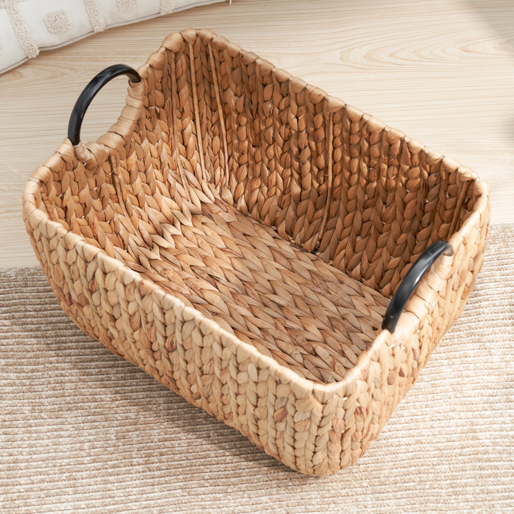 Rectangular Multi Purpose Water Hyacinth Woven Wicker Baskets With Handles 16" X 12" X 13" Natural Brown For Towel, Toys, Magazine And Kitchen Storage Brown Black Wicker Water Hyacinth