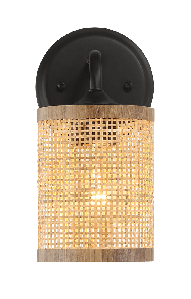 Reef Single Lights Wall Sconce With Natural Rattan Shade Rustic Wicker Wall Light Black,Rattan Metal,Rattan