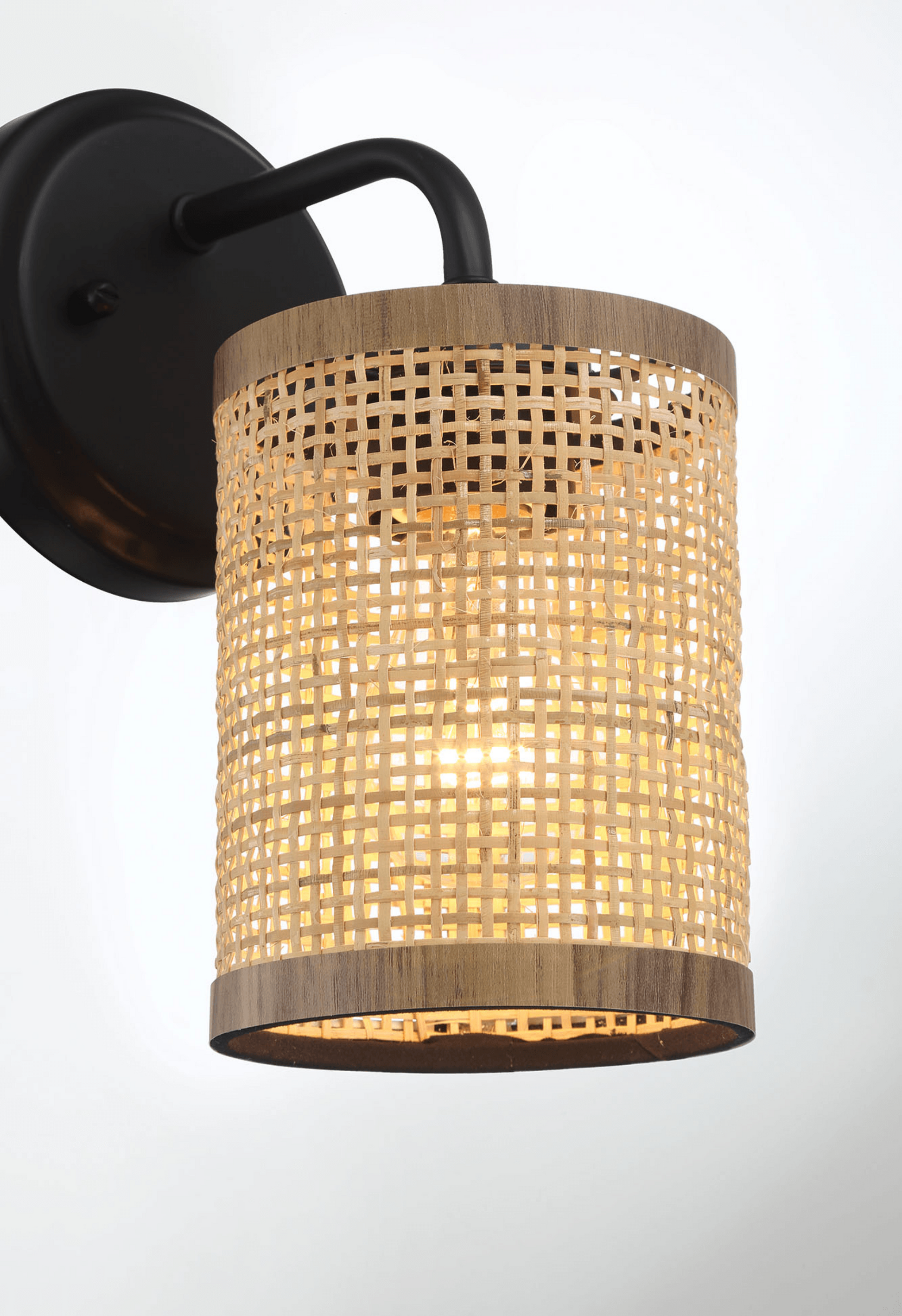 Reef Single Lights Wall Sconce With Natural Rattan Shade Rustic Wicker Wall Light Black,Rattan Metal,Rattan