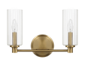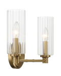 Regal Double Light Vanity With Clear Ribbed Glass Satin Brass Antique Brass,Clear Brass,Glass