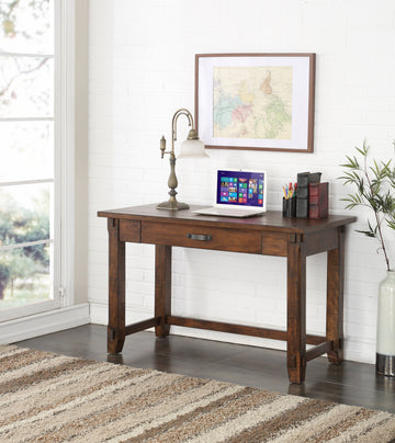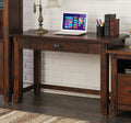 Restoration 48 Inch Writing Desk, No Assembly Required, Rustic Walnut Finish Brown Brown Keyboard Tray Writting Desk Office Lodge,Mission,Rustic Freestanding Rectangular Drawers Desk Rectangular Wood Trestle