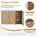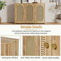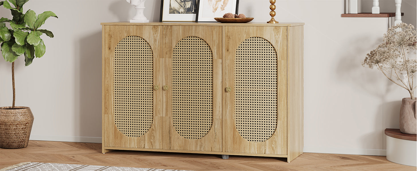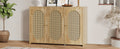 Retro 3 Door Sideboard With Large Storage Space Artificial Rattan Doors And Metal Handles, Accent Cabinet For Living Room And Hallway Natural Wood Natural Wood Particle Board Mdf