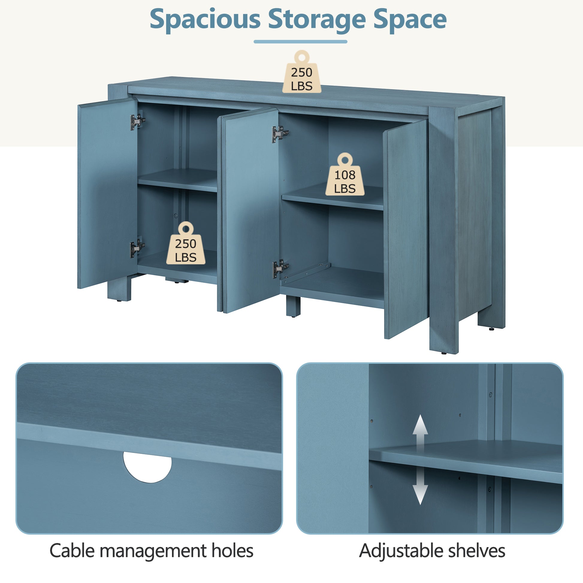 Retro 4 Door Sideboard With Distressed Finish And Adjustable Shelves For Dining Room, Kitchen, And Living Room Navy Navy Mdf,Rubber Wood