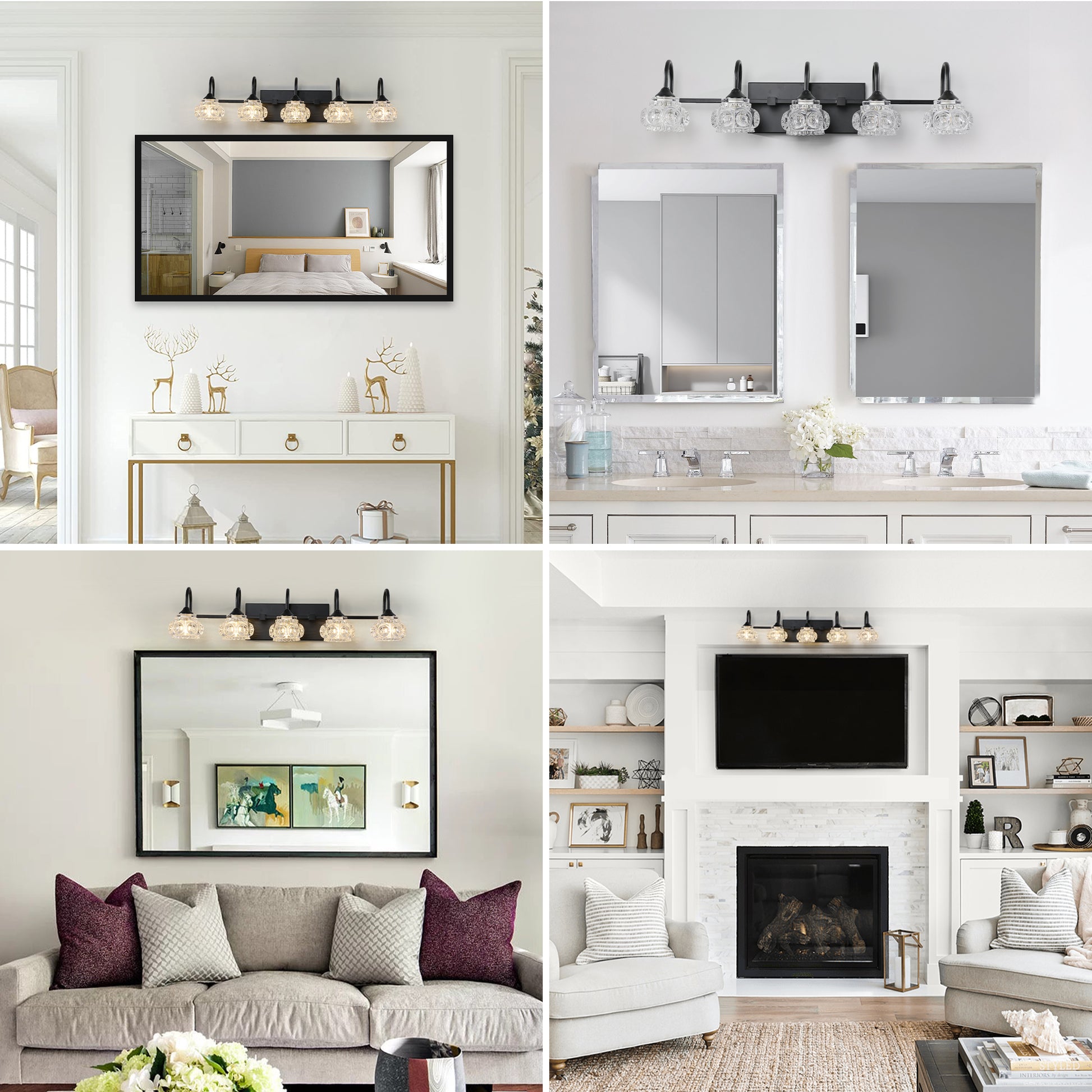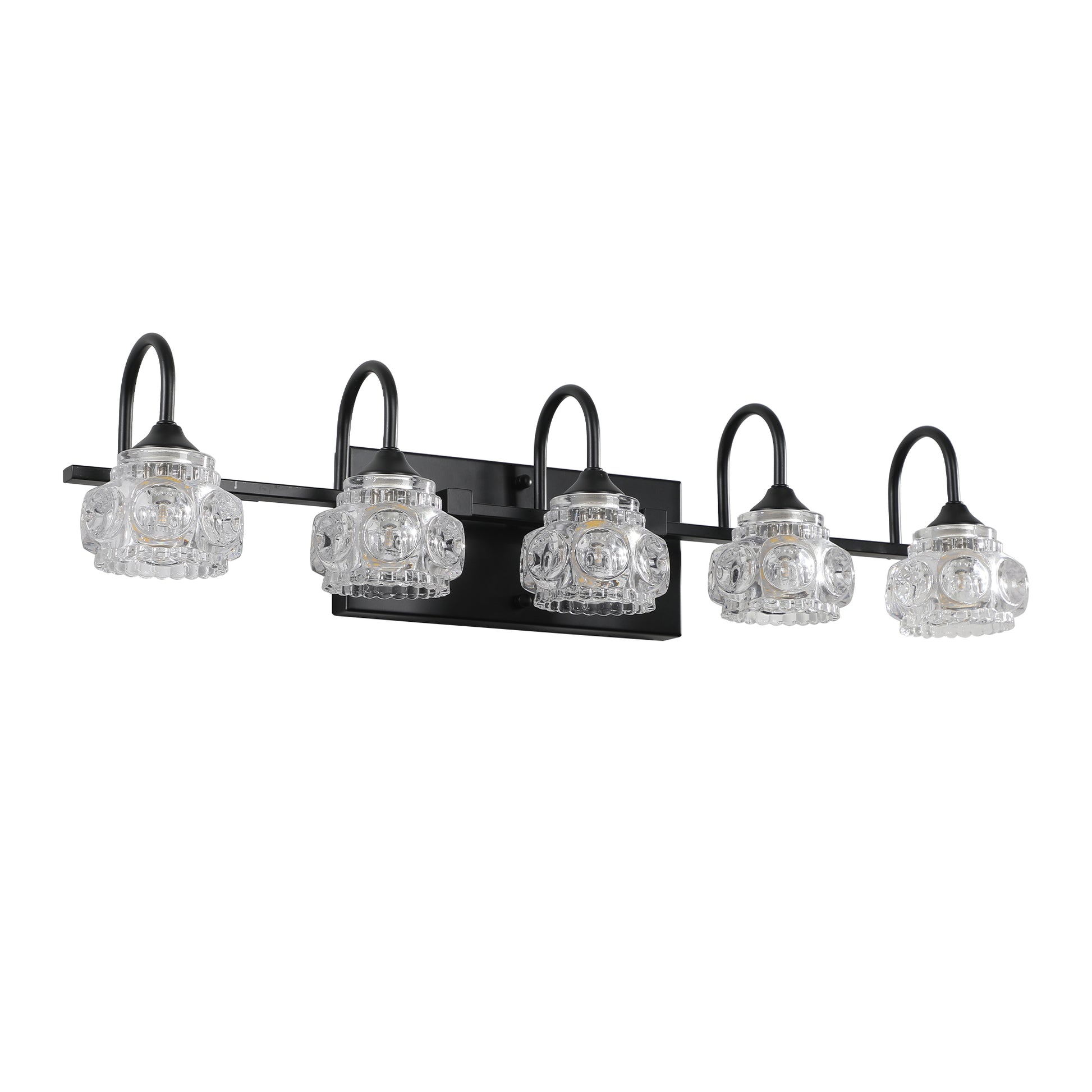 Retro 5 Light Bathroom Vanity Light Fixture Black Finish With Crystal Glass Shades, Wall Mounted Lighting For Bathroom, Powder Room, And Vanity Mirror No Bulbs Black Crystal Iron