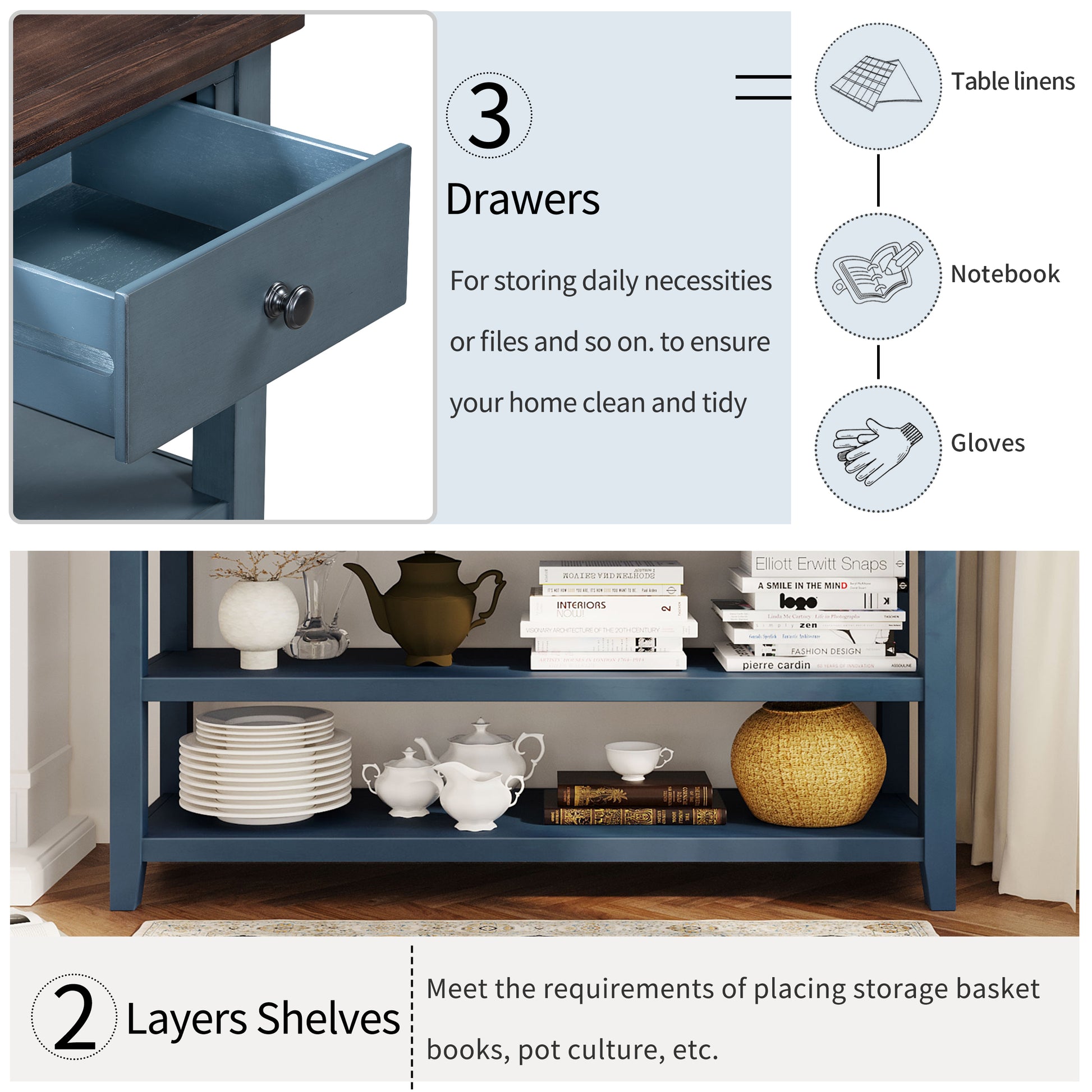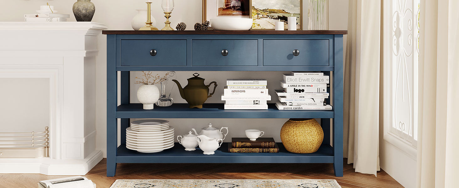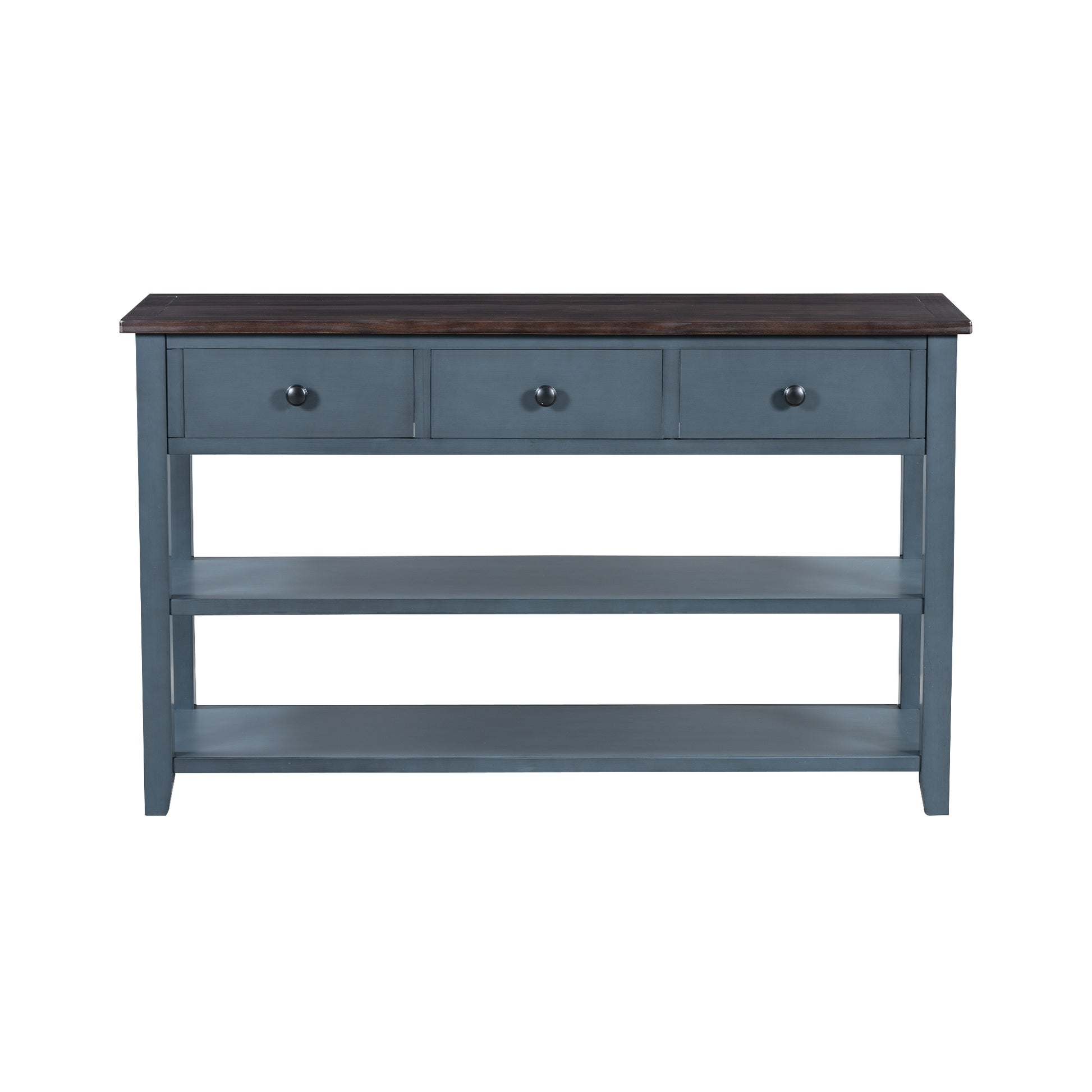 Retro Design Console Table With Two Open Shelves, Pine Solid Wood Frame And Legs For Living Room Antique Navy Espresso Antique Navy Espresso Solid Wood Mdf
