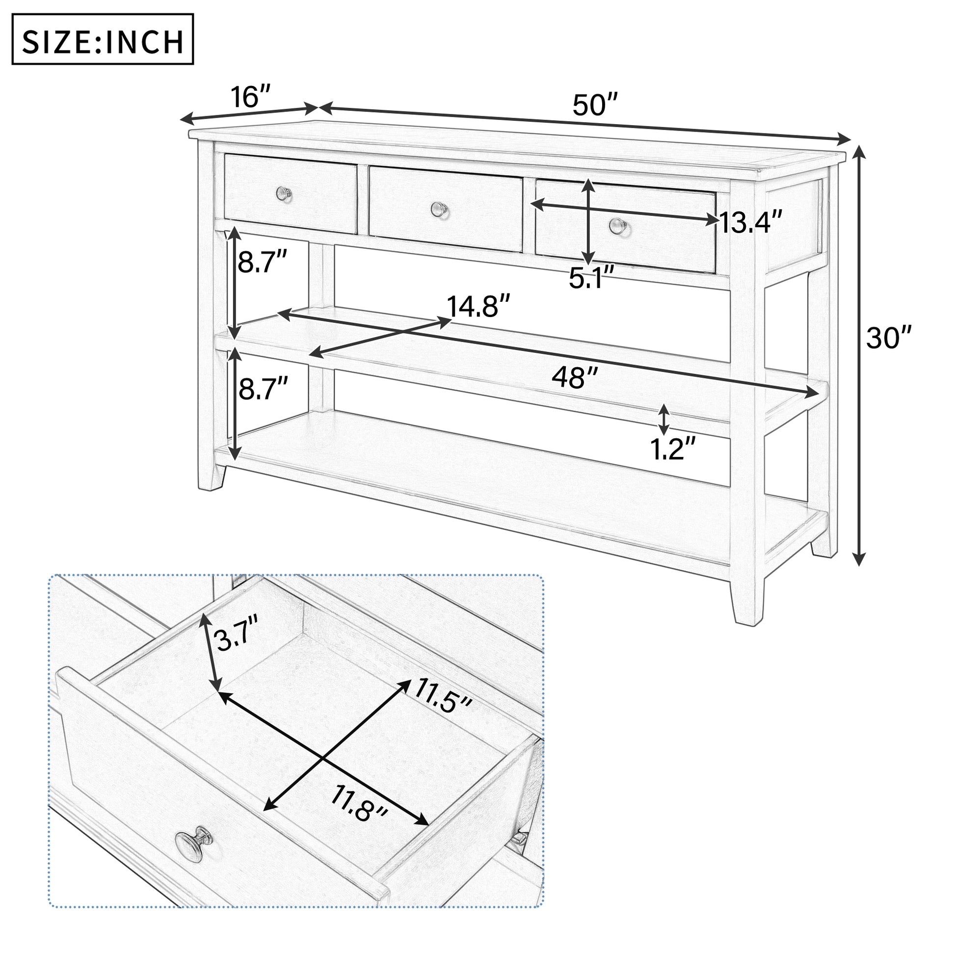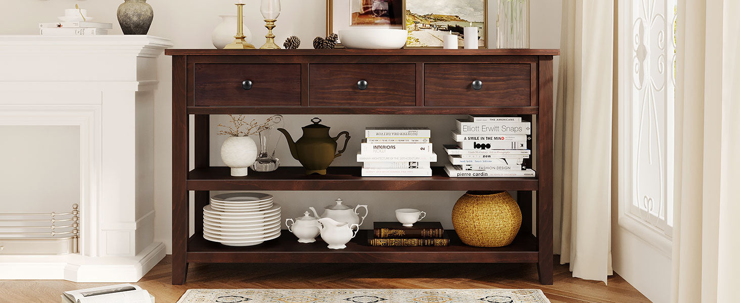 Retro Design Console Table With Two Open Shelves, Pine Solid Wood Frame And Legs For Living Room Espresso Espresso Solid Wood Mdf