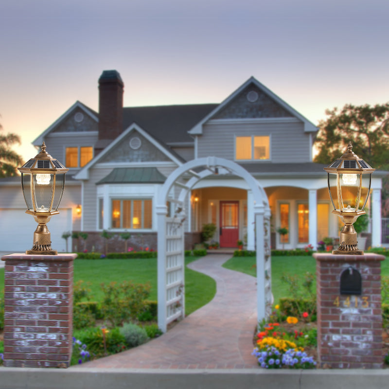 Retro Gold Solar Column Headlights With Dimmable Led 2 Pack Bronze Glass Aluminum