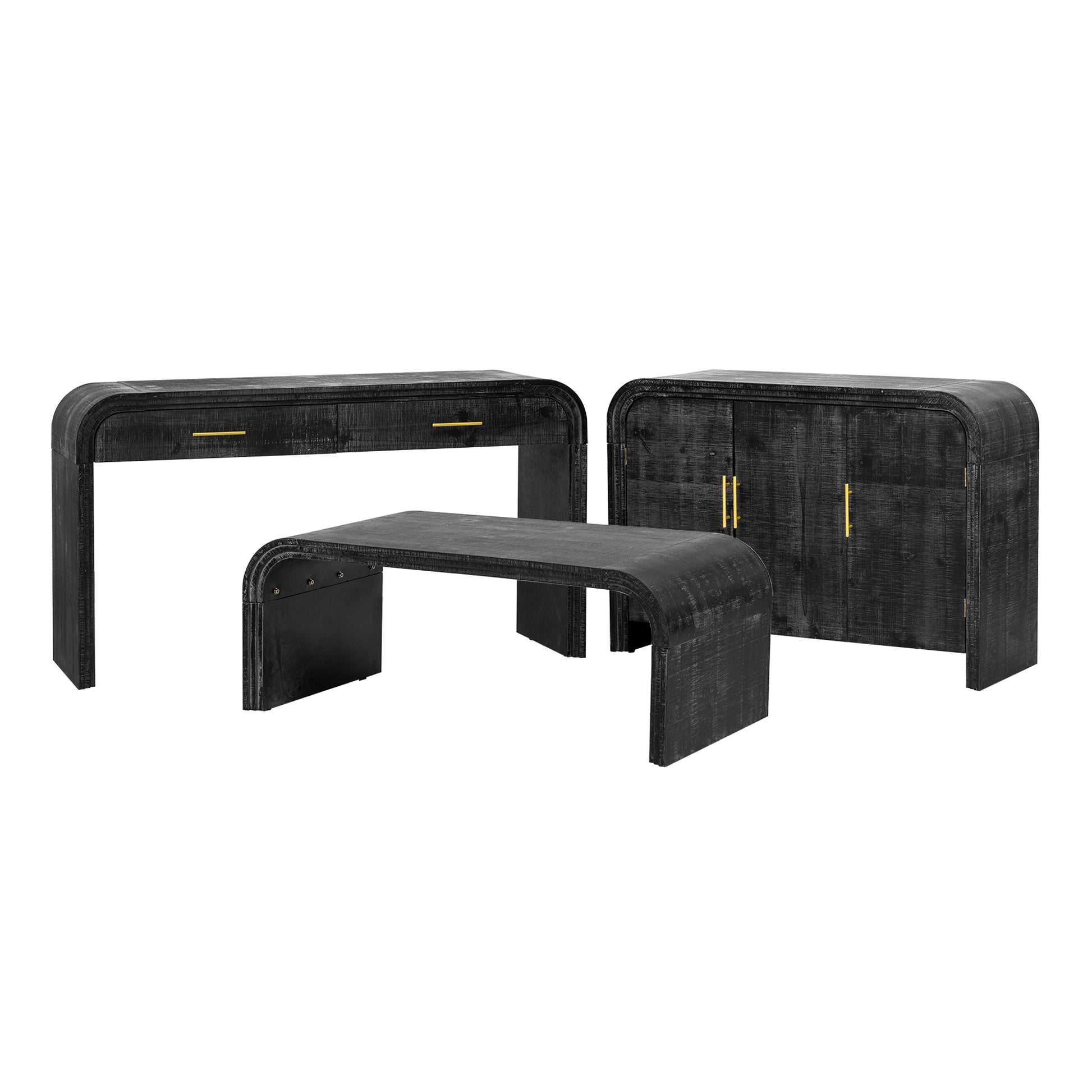 Retro Minimalist Curved Sideboard With Gold Handles And Adjustable Dividers For Living Room Or Dining Room Antique Black Antique Black Mdf