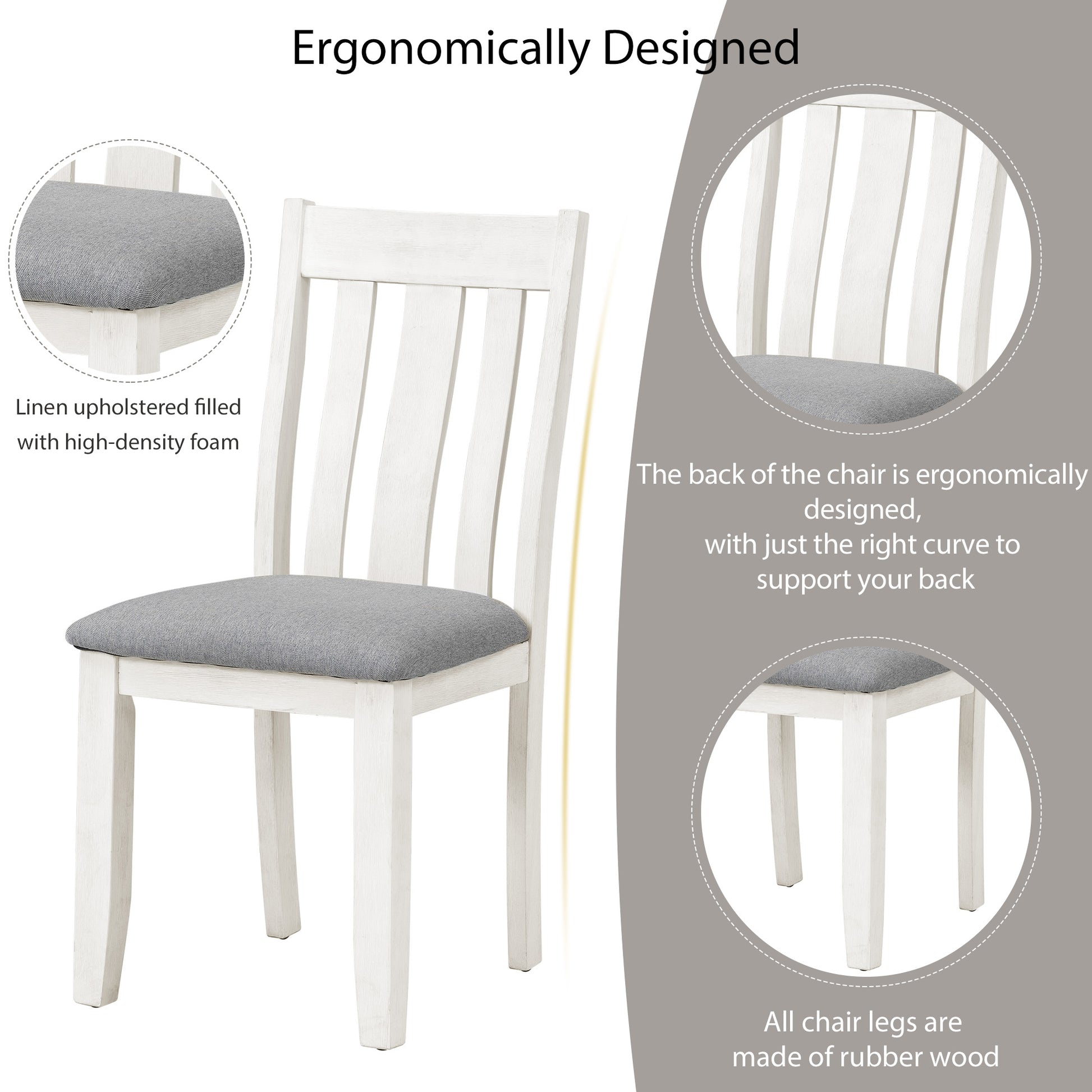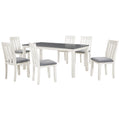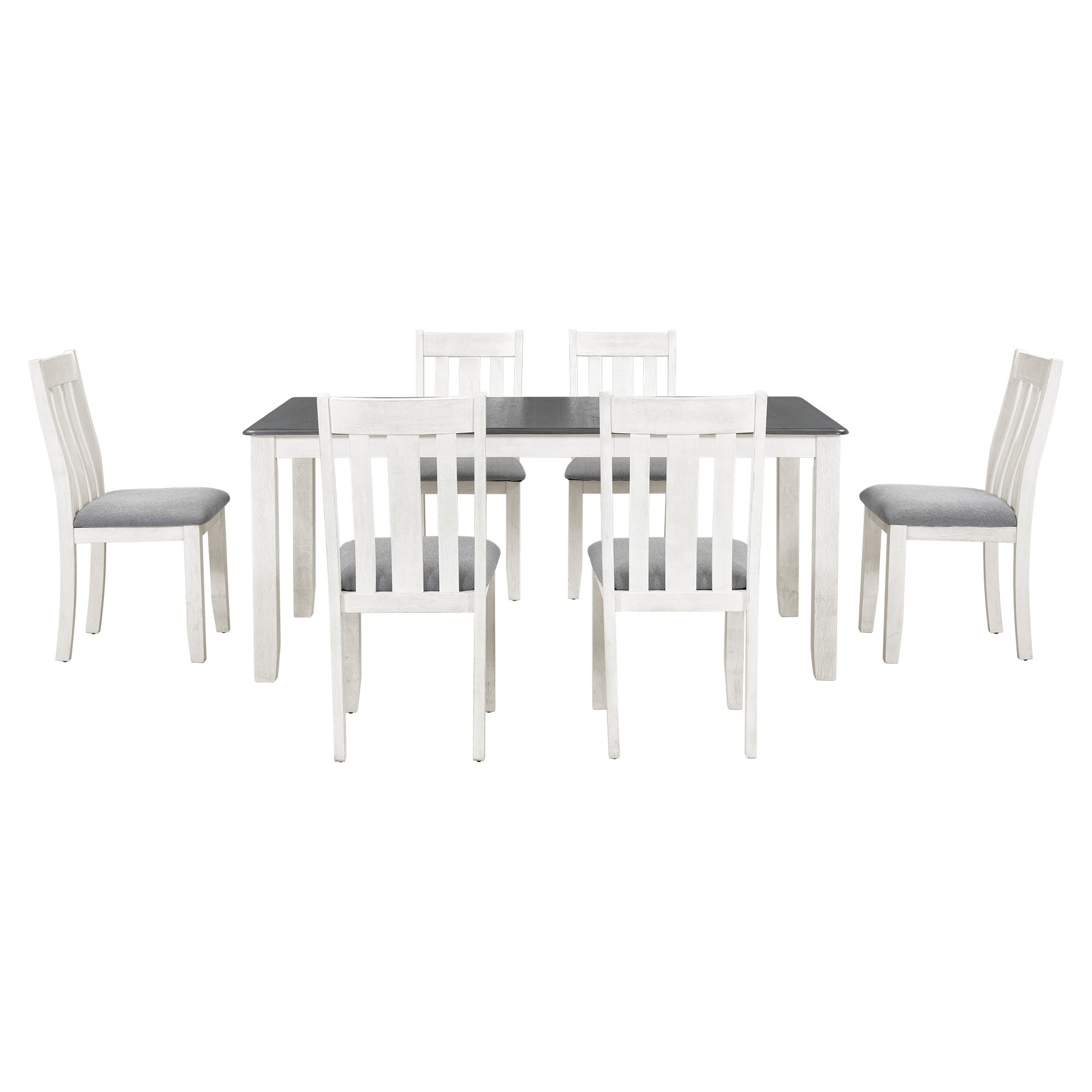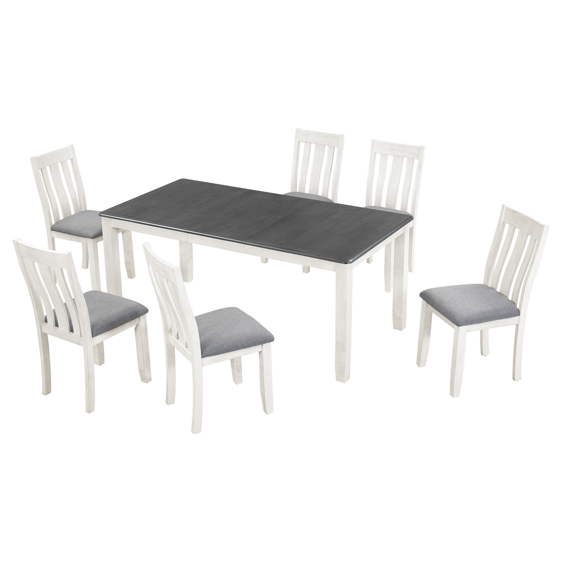 Retro Style 7 Piece Dining Table Set With Extendable Table And 6 Upholstered Chairs Gray White White Gray Solid Wood