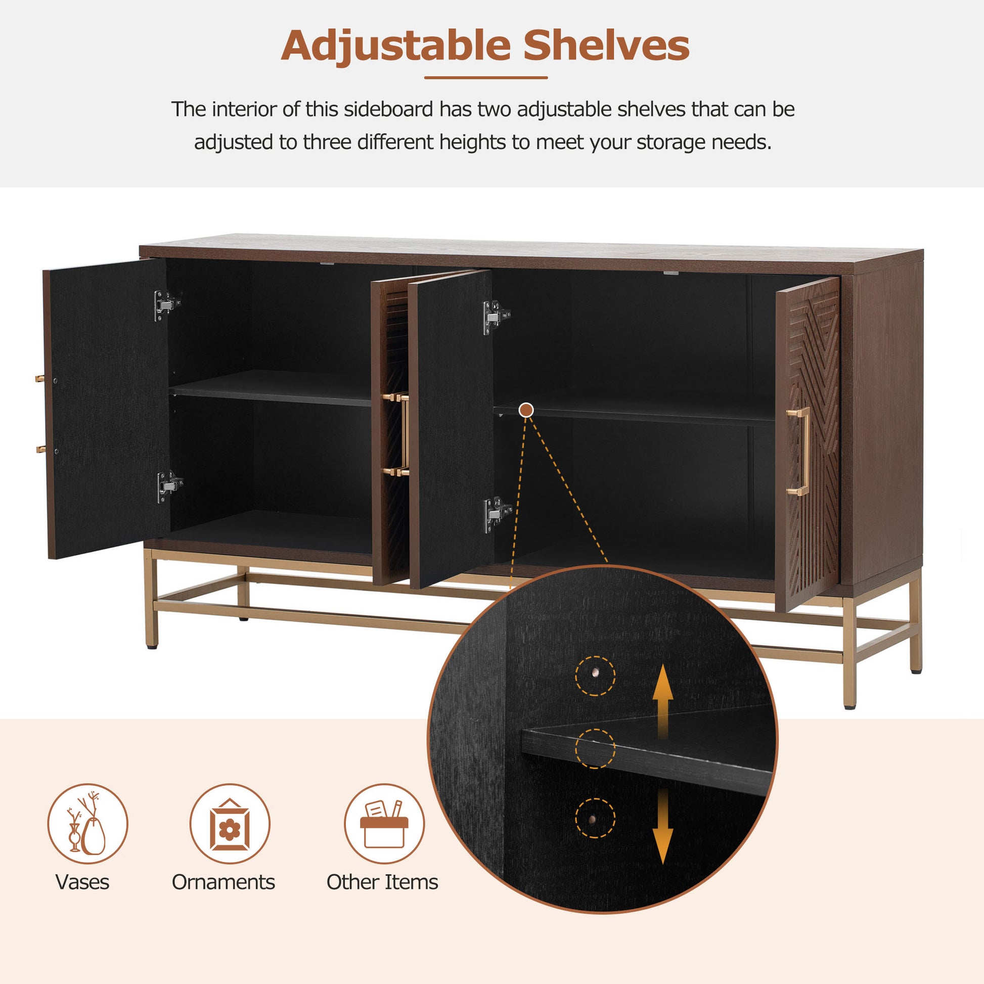 Retro Style Sideboard With Adjustable Shelves, Rectangular Metal Handles And Legs For Kitchen, Living Room, And Dining Room Espresso Espresso Mdf